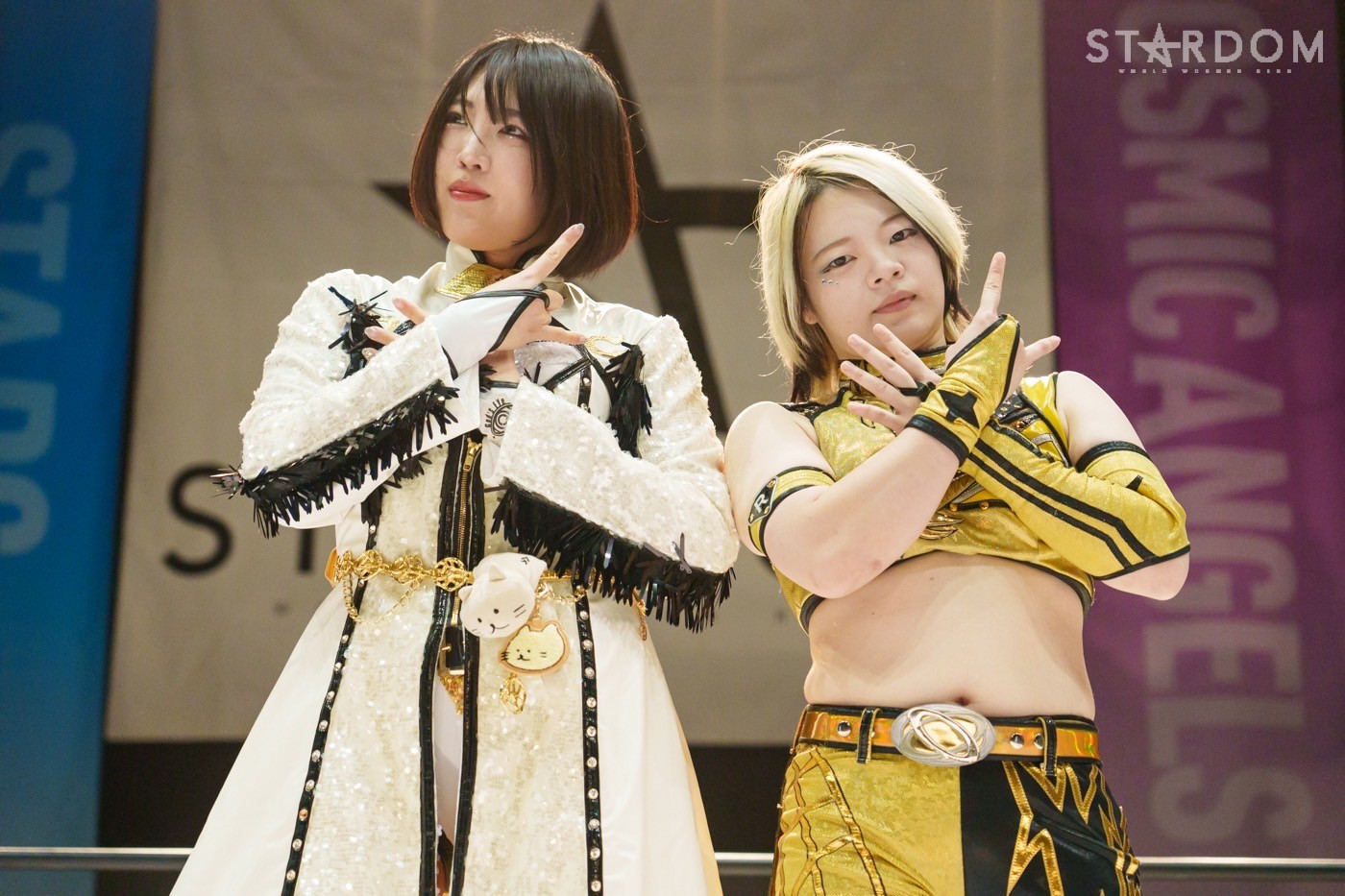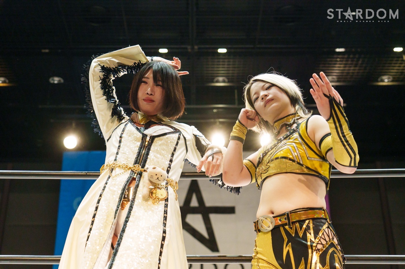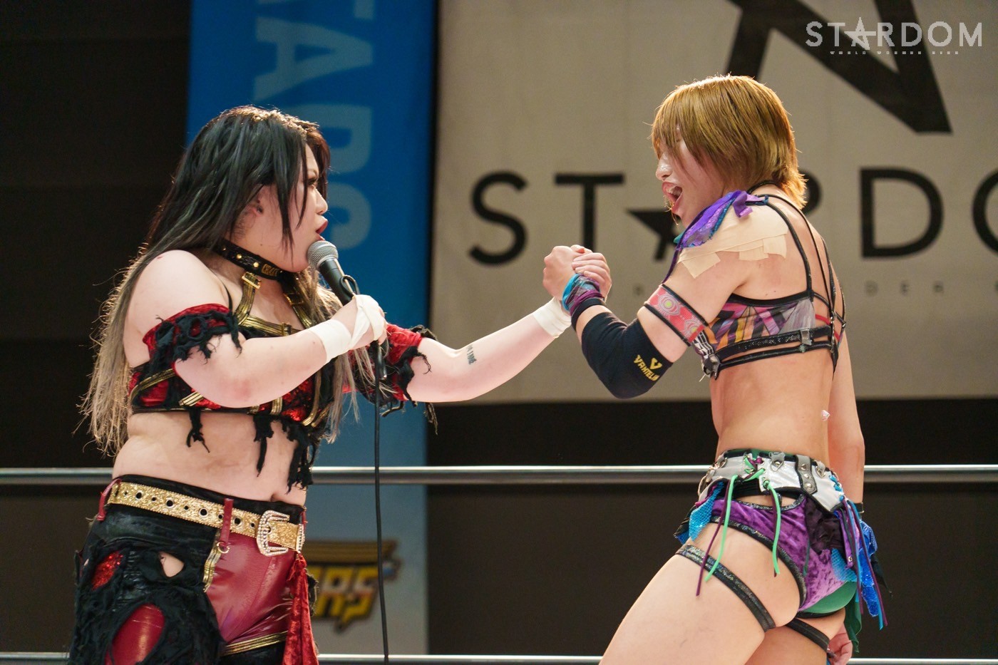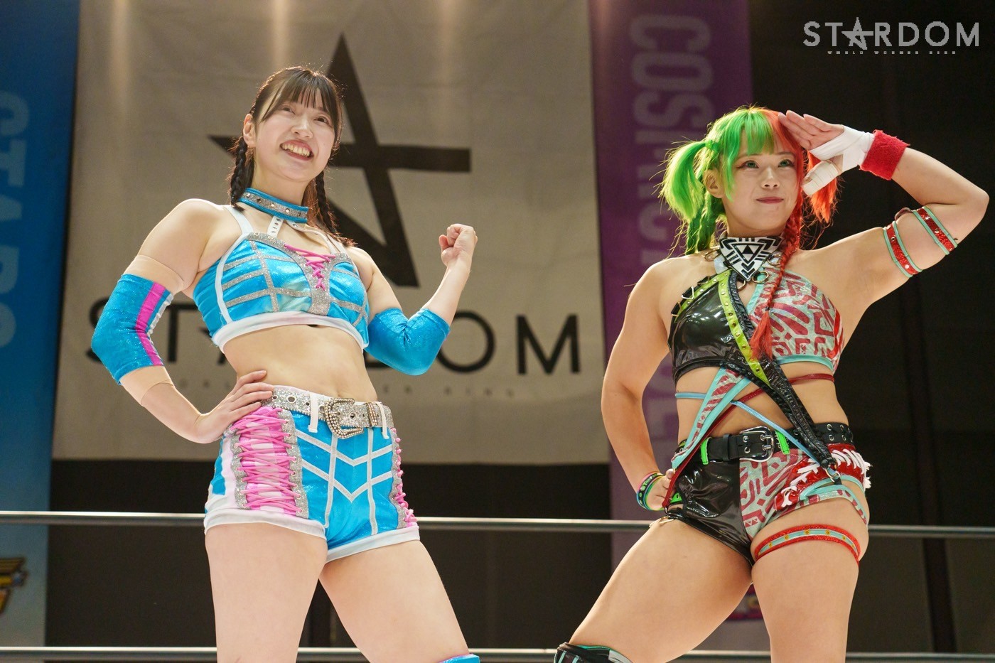 朱里「待って待って。(白川に)マジで誰ですか? みなさんこんにちは! そして、ハロウィーンの日にスターダムを選んでくれてありがとうございます。なかなかすずと組むことがないんだけど、ちょっと私的には楽しかった。(鈴季に)聞かせて。聞きたい」