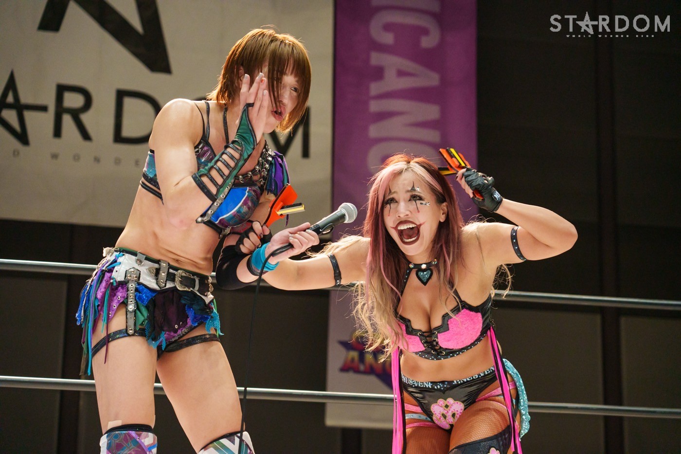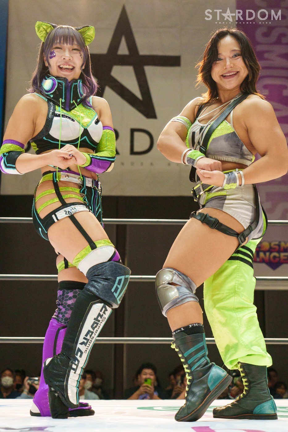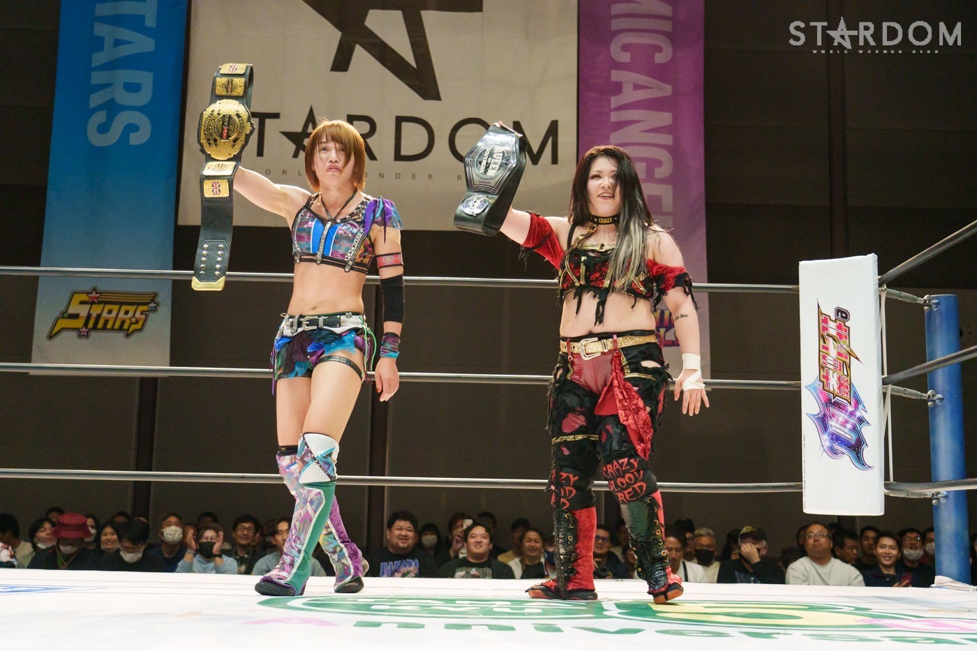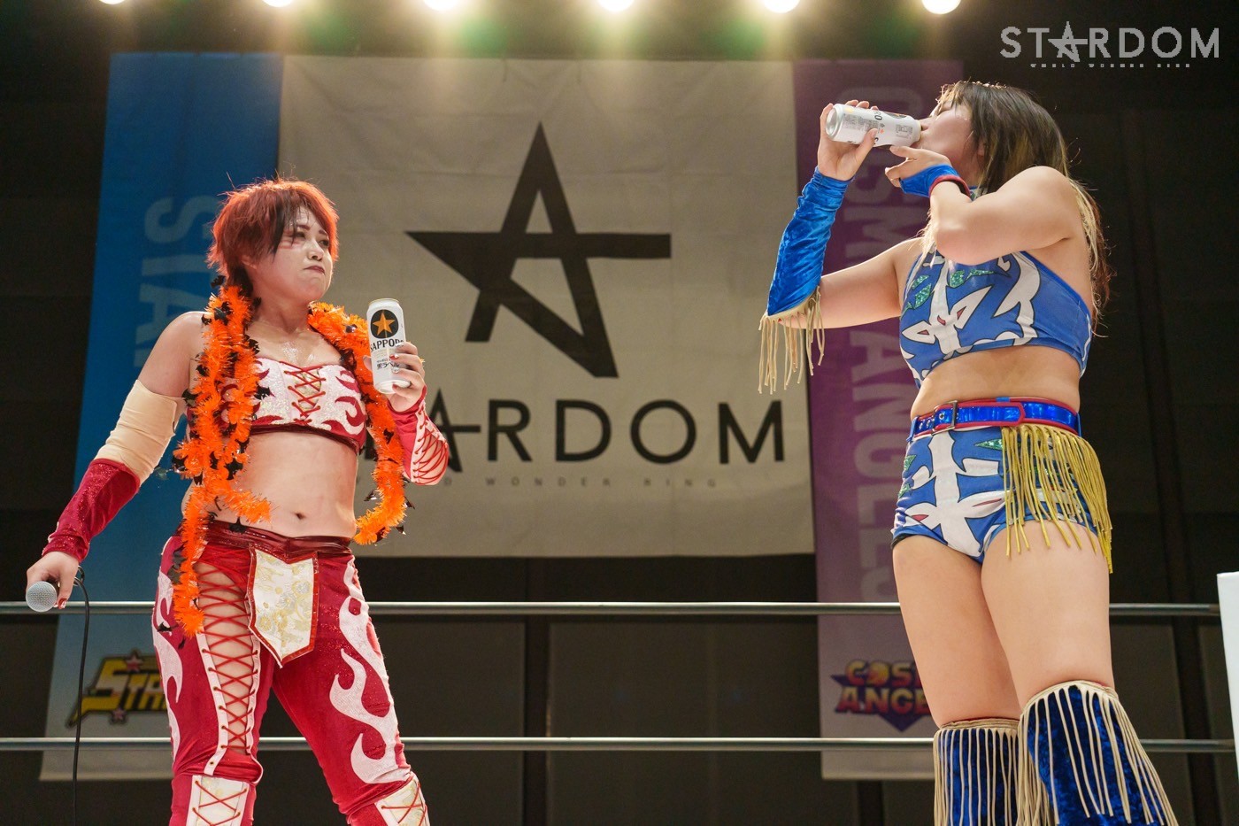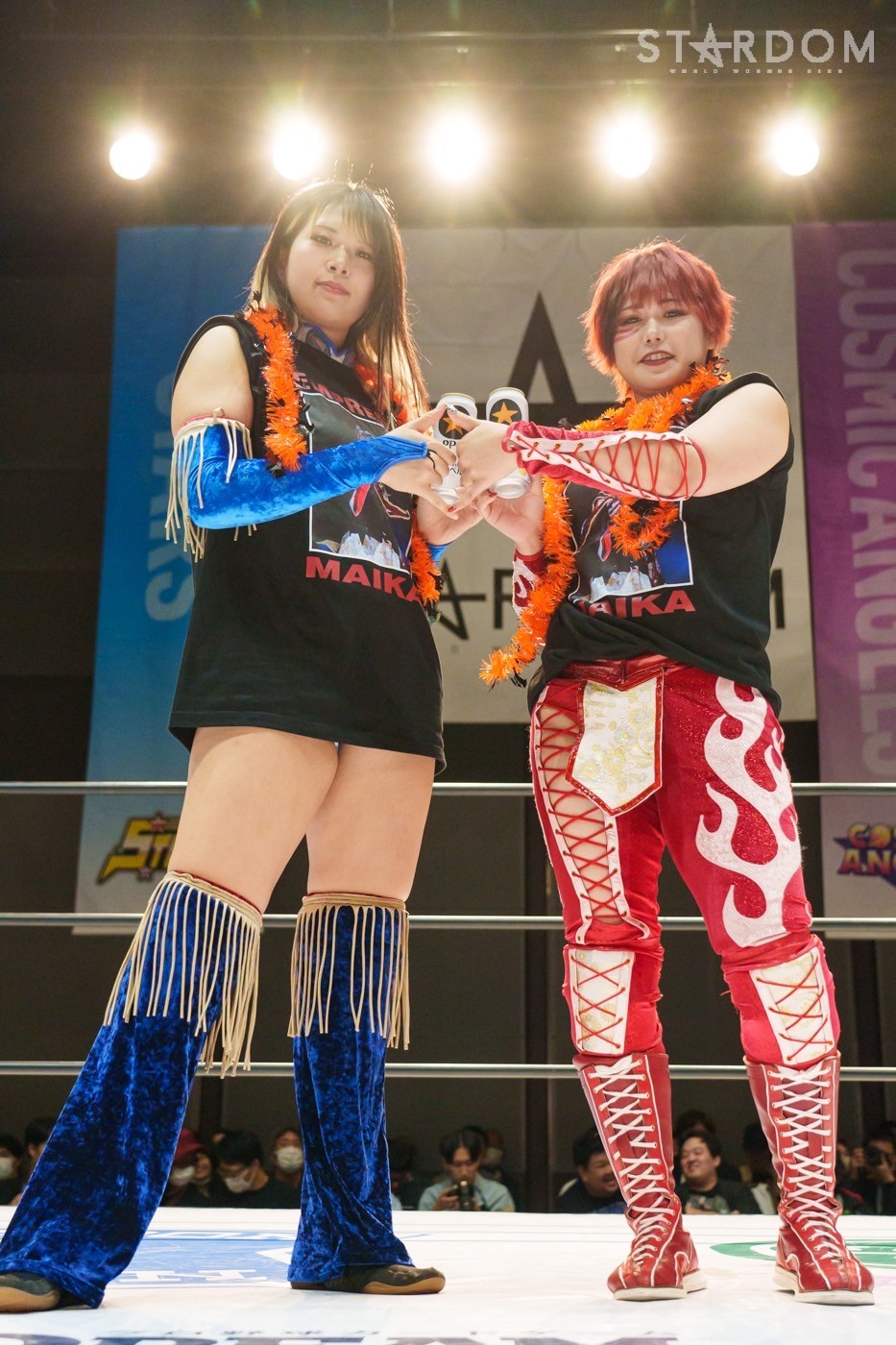 朱里「待って待って。(白川に)マジで誰ですか? みなさんこんにちは! そして、ハロウィーンの日にスターダムを選んでくれてありがとうございます。なかなかすずと組むことがないんだけど、ちょっと私的には楽しかった。(鈴季に)聞かせて。聞きたい」