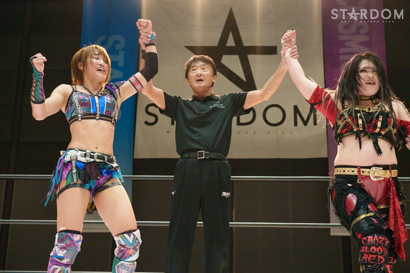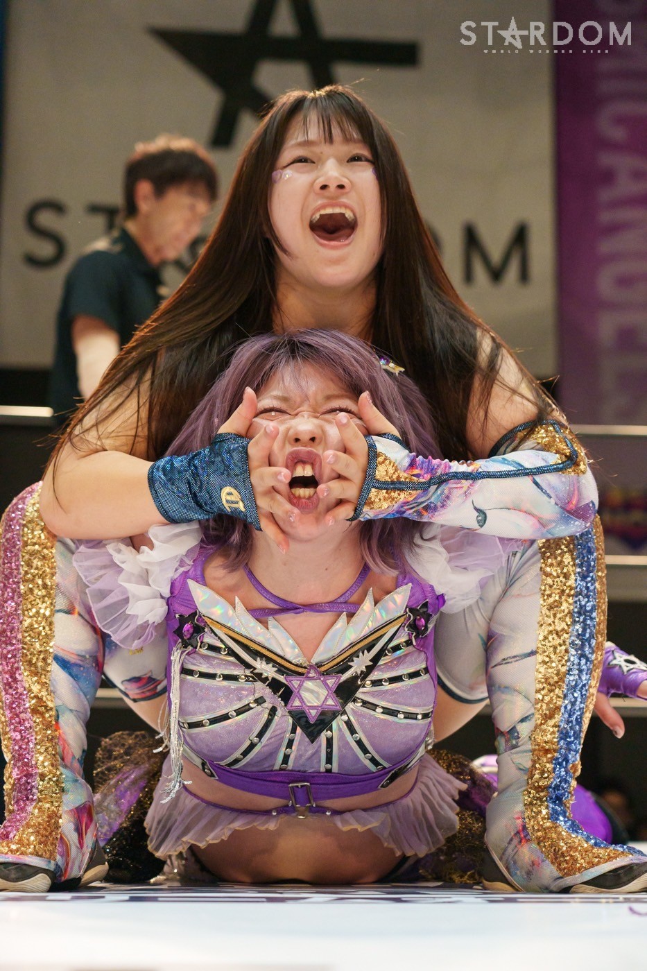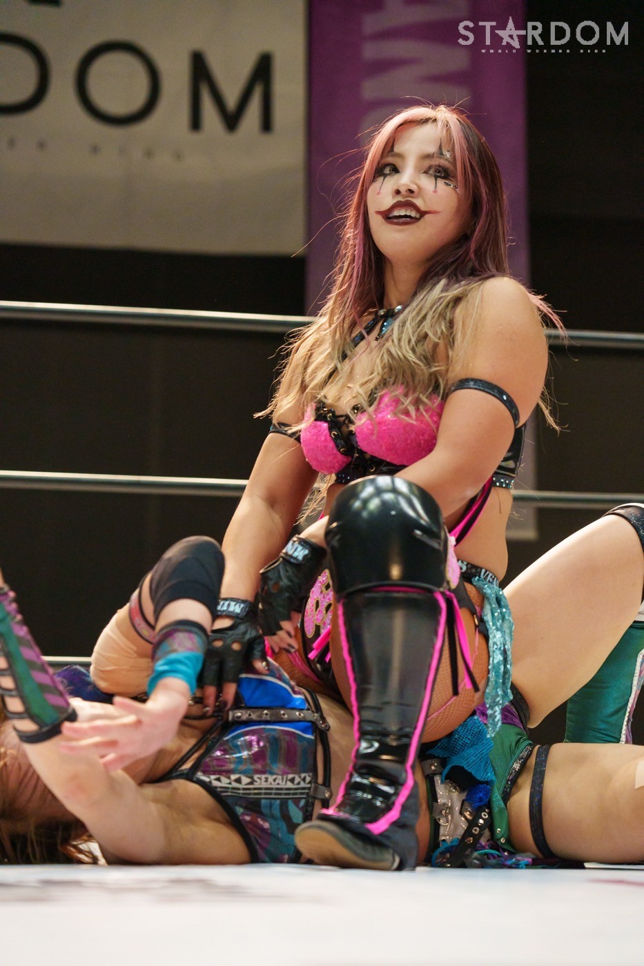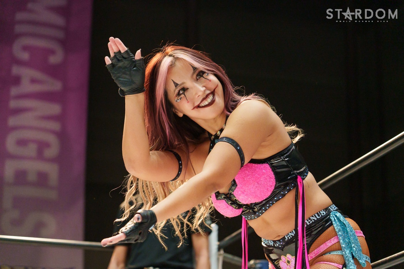 朱里「待って待って。(白川に)マジで誰ですか? みなさんこんにちは! そして、ハロウィーンの日にスターダムを選んでくれてありがとうございます。なかなかすずと組むことがないんだけど、ちょっと私的には楽しかった。(鈴季に)聞かせて。聞きたい」