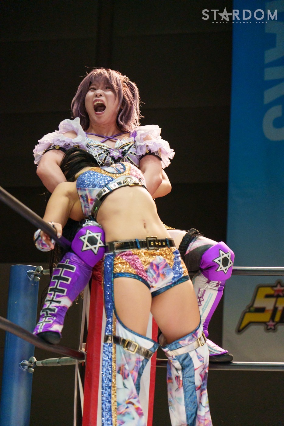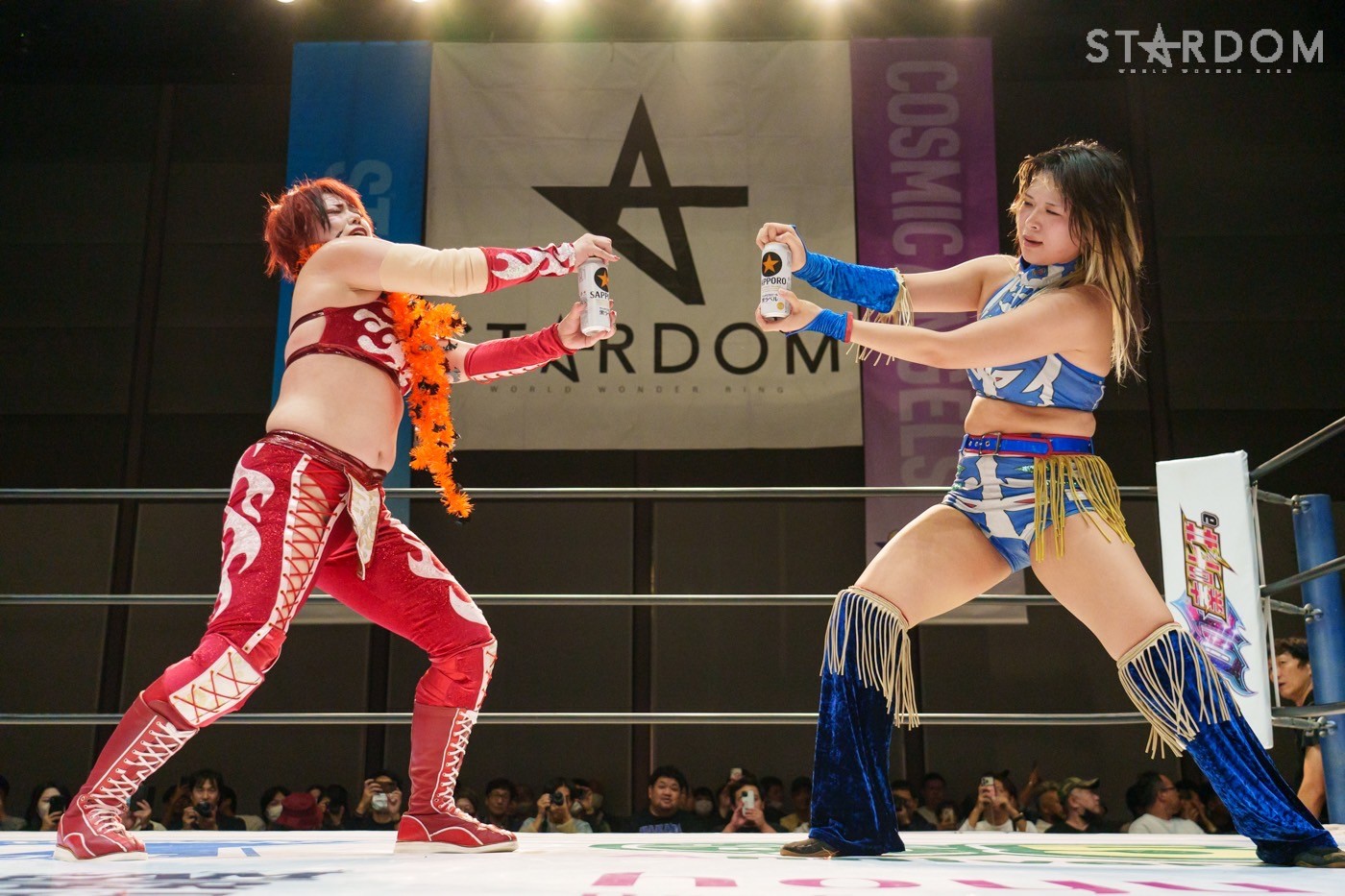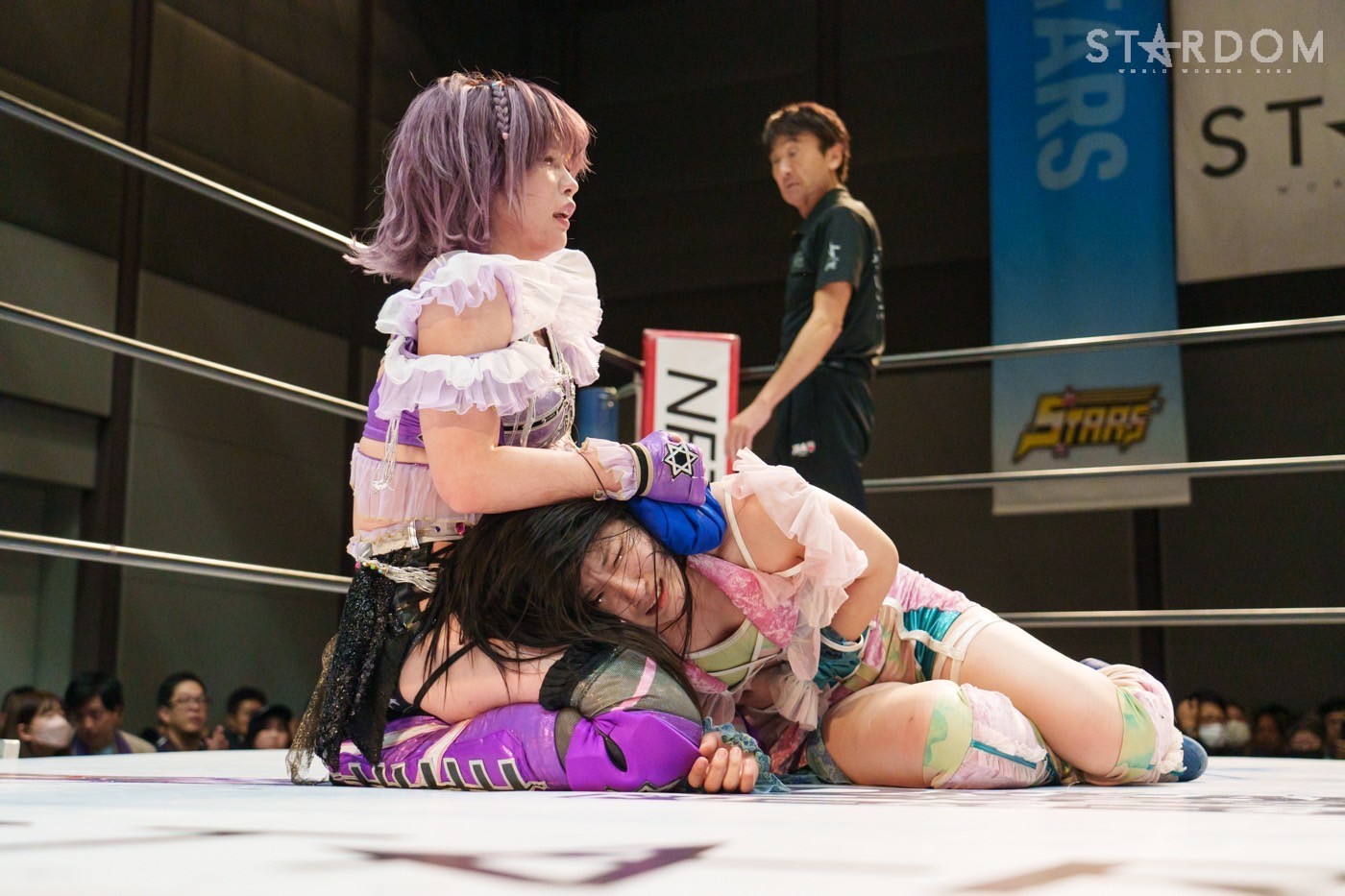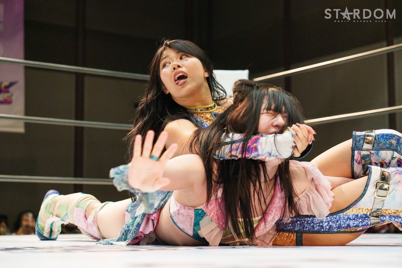朱里「待って待って。(白川に)マジで誰ですか? みなさんこんにちは! そして、ハロウィーンの日にスターダムを選んでくれてありがとうございます。なかなかすずと組むことがないんだけど、ちょっと私的には楽しかった。(鈴季に)聞かせて。聞きたい」