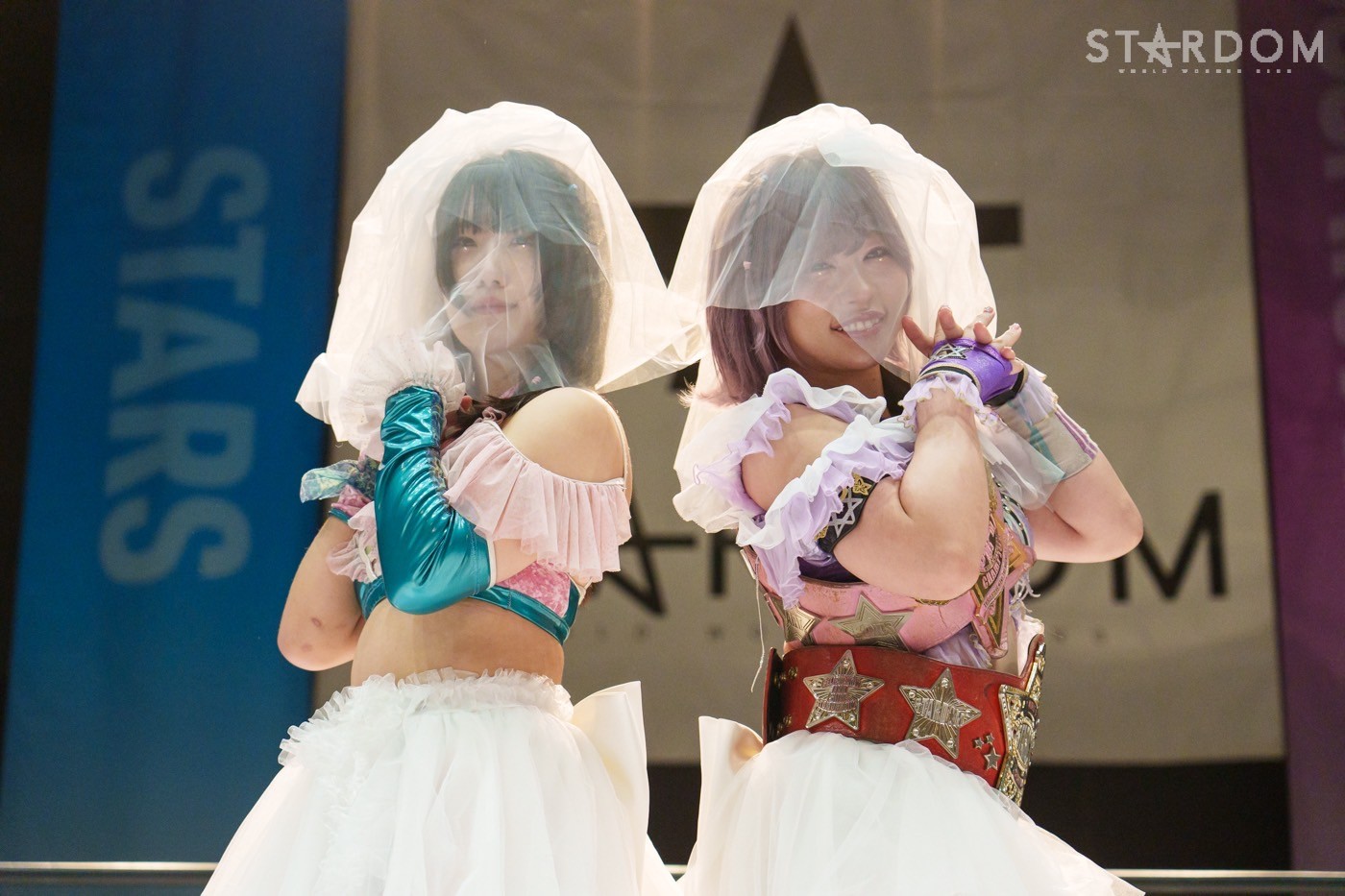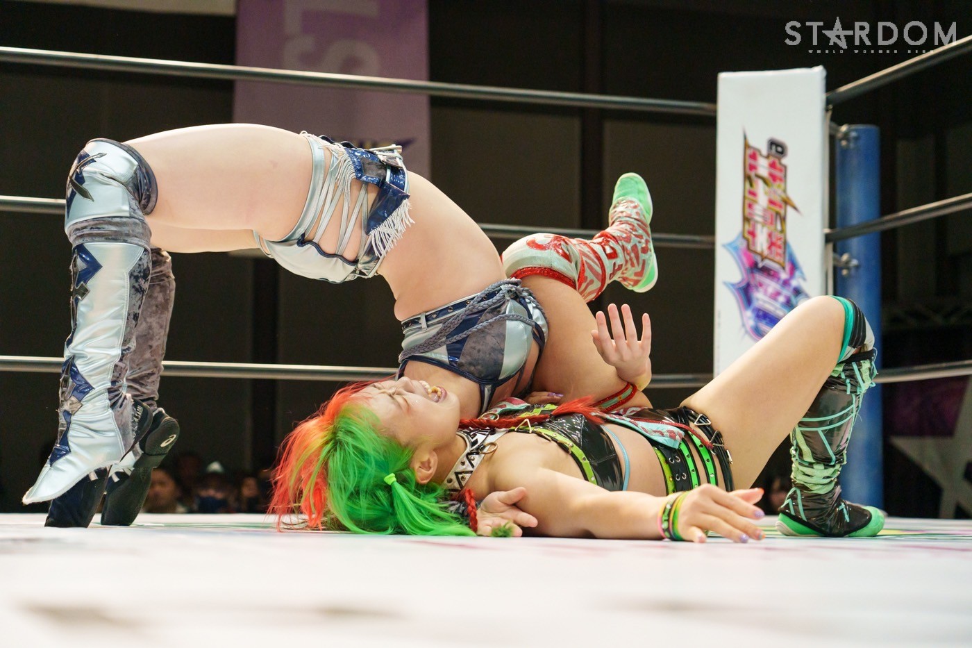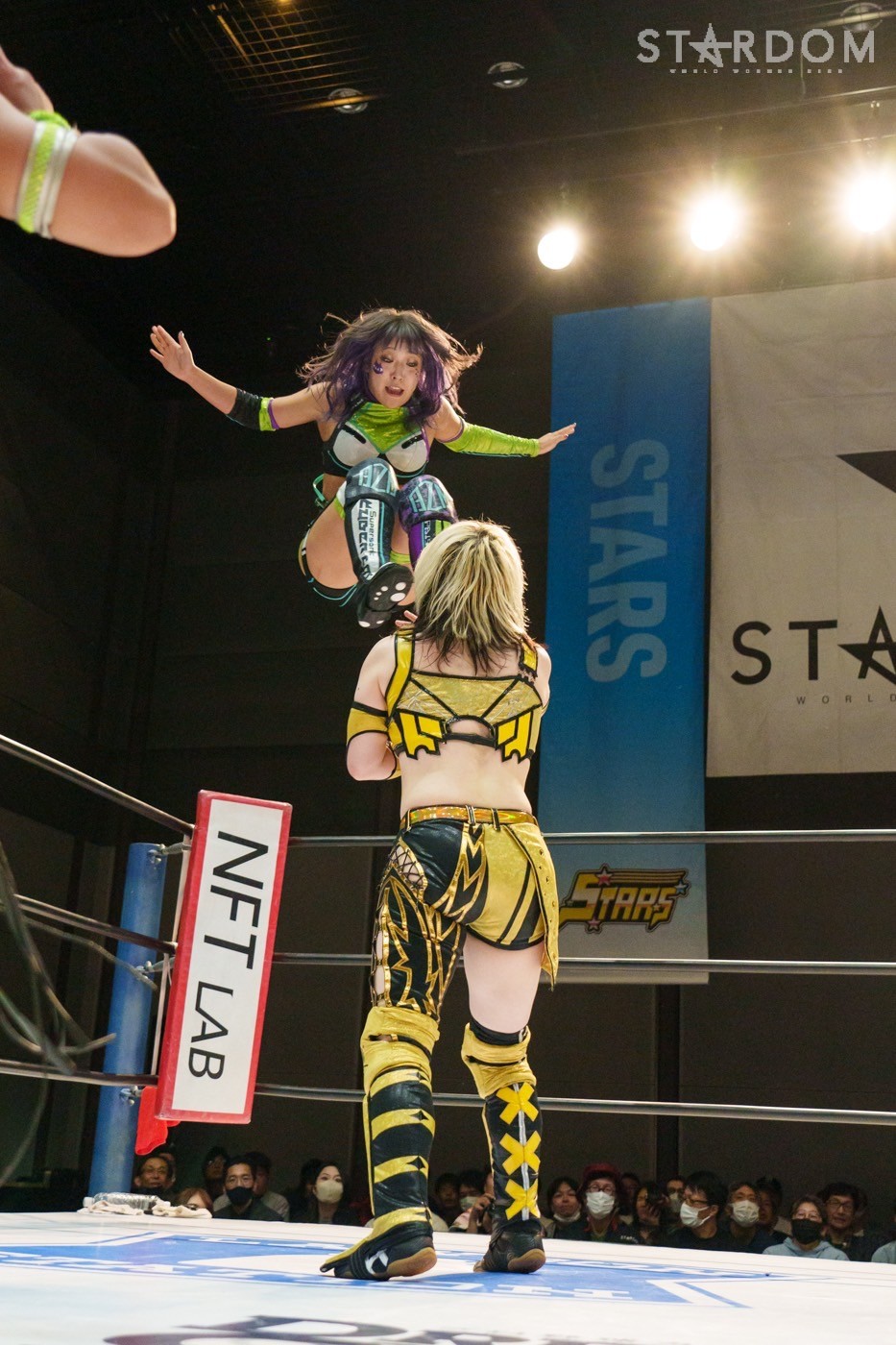 STARSの岩谷麻優&向後桃組とE neXus Vの舞華&HANAKO組によるタッグリーグ公式戦。岩谷&向後は開幕戦白星も2戦目で星を落とし1勝1敗。ここで勝って白星を重ねていきたいところだろう。対する舞華&HANAKO組は白星スタートでこれが2戦目。舞華は5★STAR GPに引き続き全勝での優勝を宣言しているが…。
