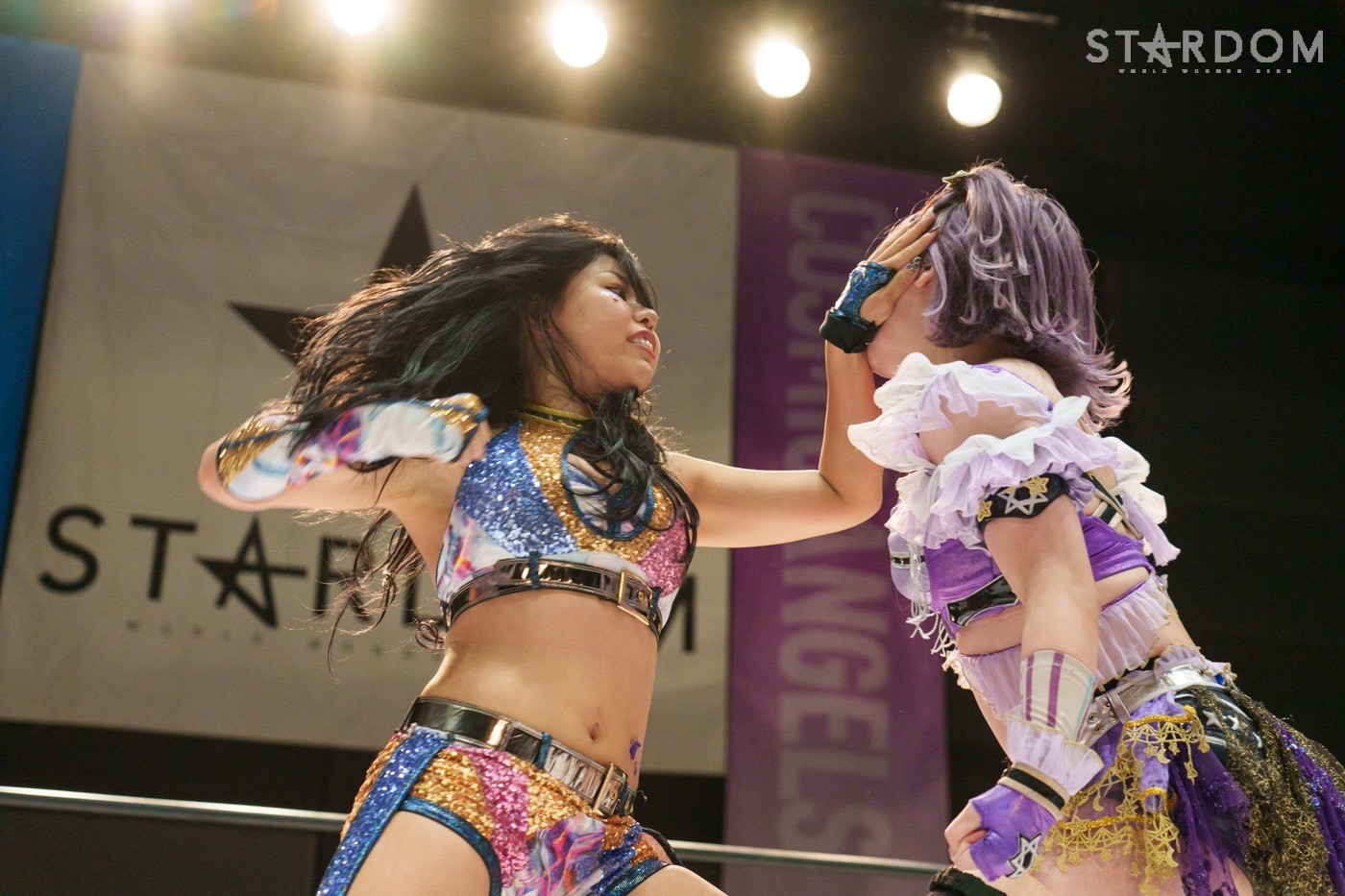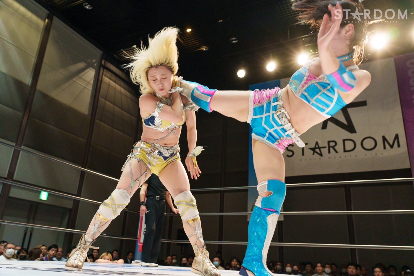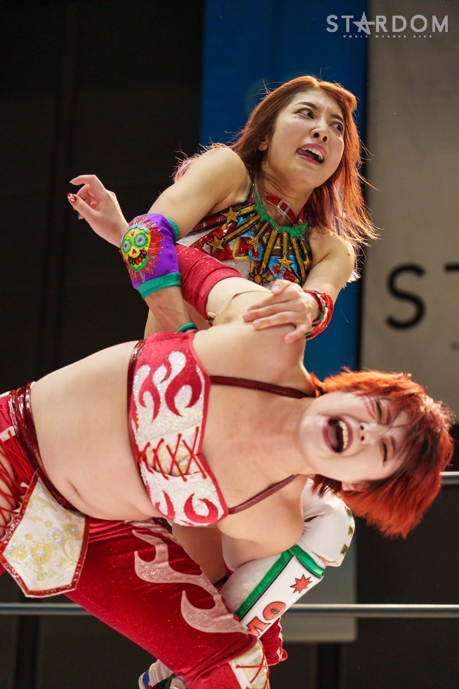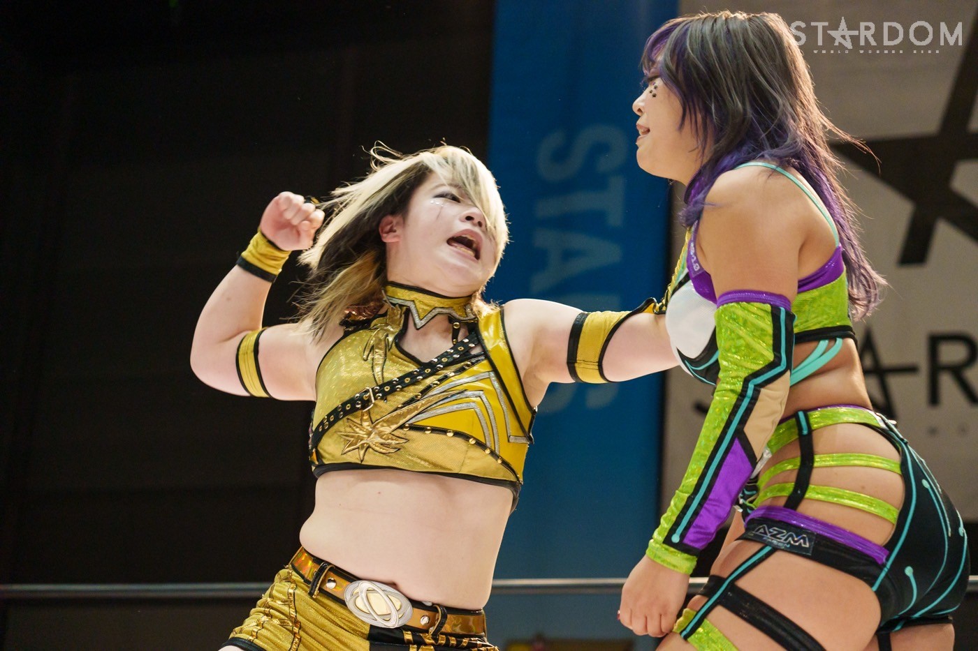 STARSの岩谷麻優&向後桃組とE neXus Vの舞華&HANAKO組によるタッグリーグ公式戦。岩谷&向後は開幕戦白星も2戦目で星を落とし1勝1敗。ここで勝って白星を重ねていきたいところだろう。対する舞華&HANAKO組は白星スタートでこれが2戦目。舞華は5★STAR GPに引き続き全勝での優勝を宣言しているが…。