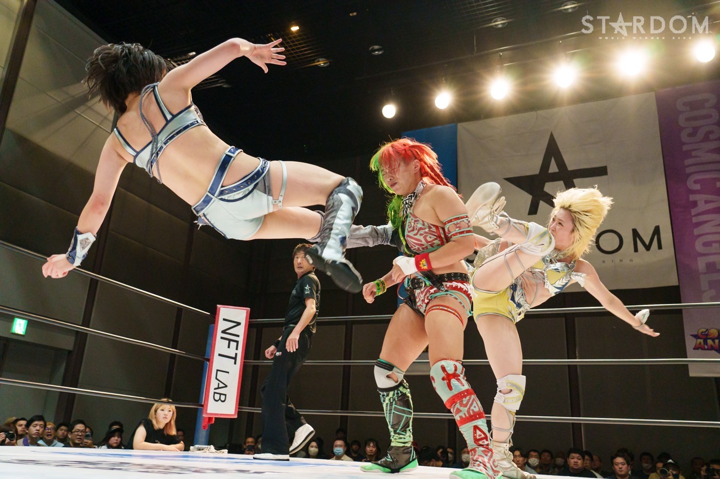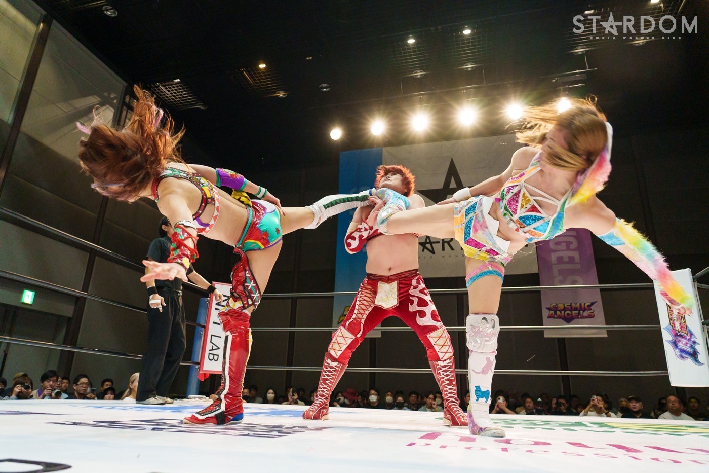 HANAKOのビッグブーツを向後がかわす。HANAKOがショルダータックル。向後が腕を引くが、反対にコーナーに振られる。向後が飛びつくとHANAKOがキャッチ、向後が離れてドロップキックを見舞う。向後の突進をHANAKOが回転してキャッチしボディースラム。舞華が向後の背中にショルダーをぶつけていくと、ボディースラム、逆エビ固め。HANAKOが岩谷にカットさせず。しかし、岩谷がかいくぐりカットする。舞華はもう一度向後にボディースラム。HANAKOもボディースラムでつづく。舞華の一本背負いからHANAKOとダブルで蹴り飛ばす。HANAKOは「こいよ!」と仁王立ち。向後がエルボー連打で向かっていく。向後がコルバタからドロップキックを決めて、岩谷にタッチ。岩谷はHANAKOを投げようとするが、こらえられる。HANAKOの突進に岩谷がバックキック、ドロップキック。舞華とHANAKOが合体を試みると、岩谷がまとめてアームホイップ。岩谷と向後がダブルのドロップキック。HANAKOが返すと、岩谷の突進を止めてバックフリップで叩きつける。舞華が岩谷へ串刺しラリアット、ショルダータックル。ブレーンバスターを切り返して岩谷がスリングブレイド。向後が舞華へドロップキック、変型コブラツイスト、619をヒットさせる。HANAKOが乱入するが、岩谷がカット。しかし、HANAKOと舞華が次々と串刺し攻撃。向後が突進すると舞華がパワースラム、スライディングラリアット。舞華はフィニッシュを予告して山茶華で叩きつける。向後が返すと、舞華が岩谷を振る。岩谷はそのまま場外のHANAKOへトペ。向後がトラースキック、岩谷と向後が合体。岩谷のトラースキックから向後がダイビングボディーアタック、岩谷と向後がダブルのトラースキック、向後がスイングDDT。しかし、HANAKOが持ち上げてカット。HANAKOは岩谷にビッグブーツ。10分経過。舞華が向後にラリアット、向後がトラースキック、こらえて舞華がラリアット。向後が返すと、舞華は炎華落としの構え。向後が切り返すが、ラリアットを食らう。返した向後に舞華は炎華落とし。3カウントが入り、舞華が向後を破ってみせた。
