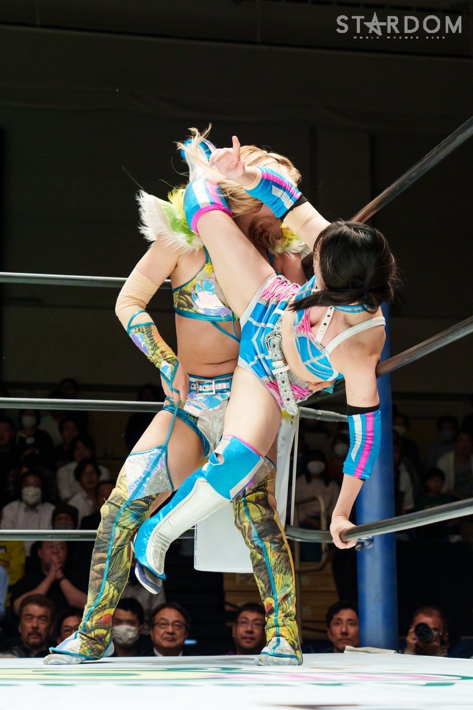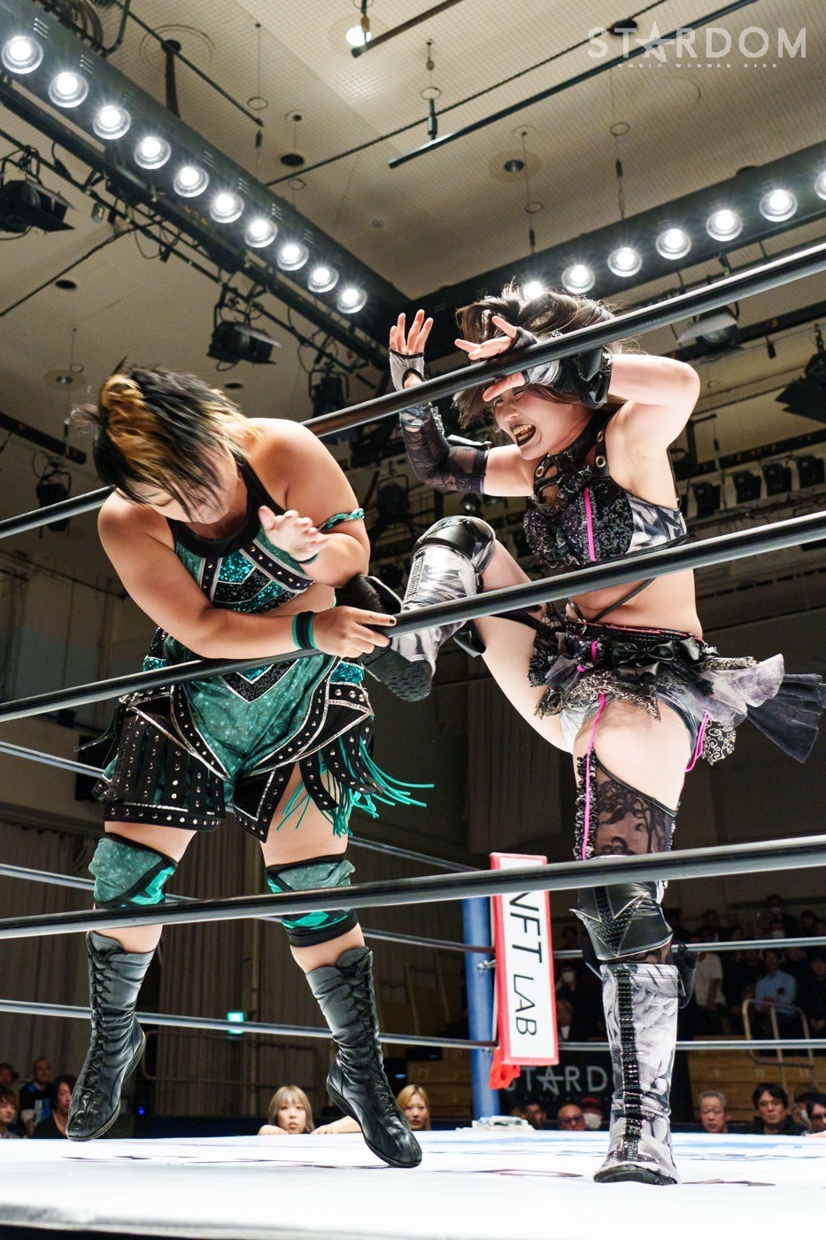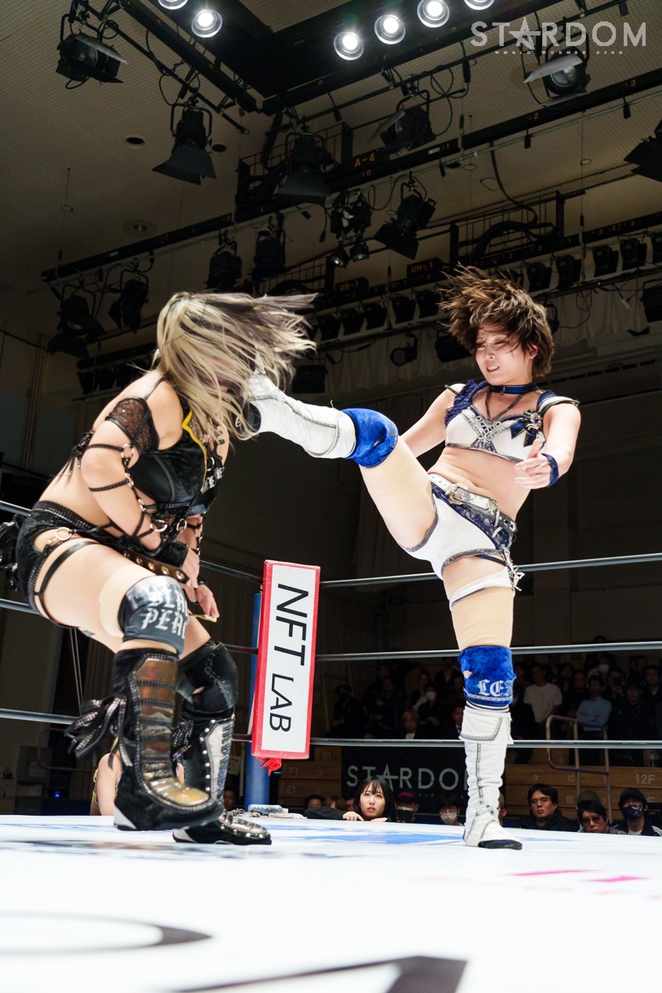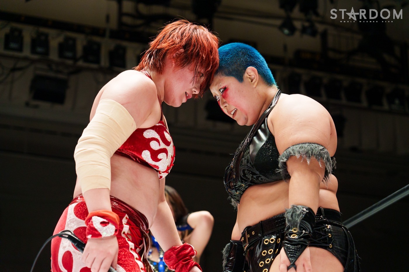 4勝1引き分けでブルーゴッデスのトップを走る、なつぽい&安納サオリ組と2連勝中の渡辺桃&テクラ組によるタッグリー グ公式戦。なつぽい&安納は元ゴッデス・オブ・スターダム王者で桃&テクラ組は現王者。タッグのベルトを意識しての闘いになることは必至。安納にはセンダイガールズで里村明衣子と対戦してのスターダム凱旋でもある。リーグ戦では上位3チームが決勝トーナメントに進出できるが、1位通過を意識しての対戦にもなりそうだ。