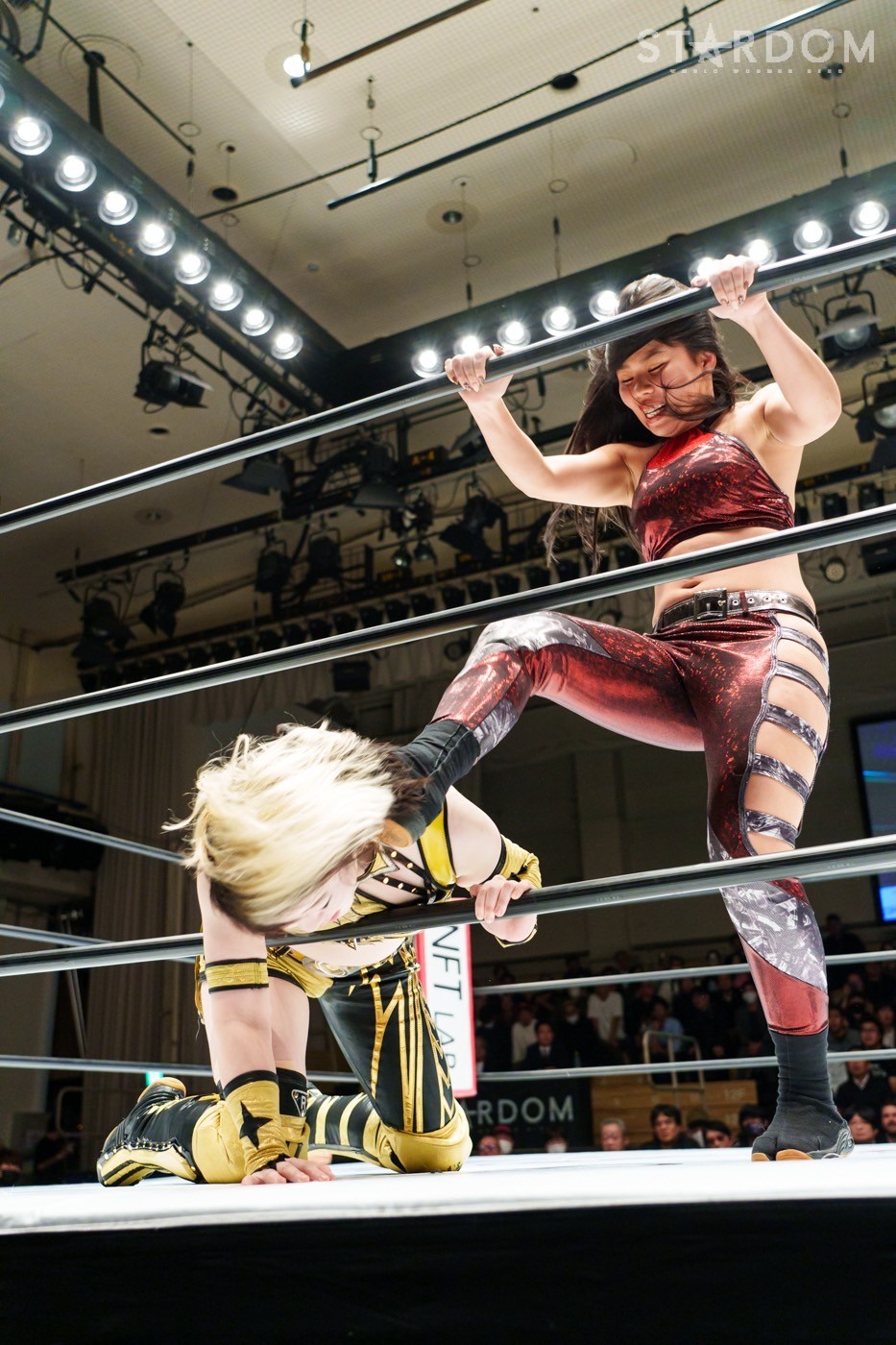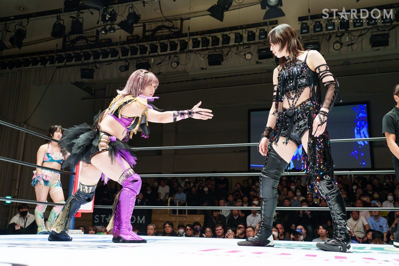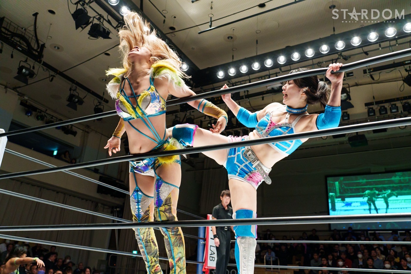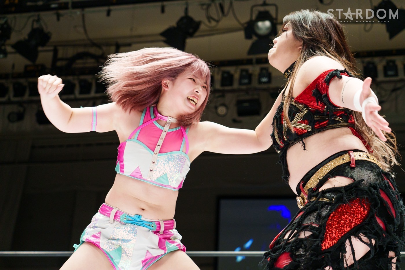 4勝1引き分けでブルーゴッデスのトップを走る、なつぽい&安納サオリ組と2連勝中の渡辺桃&テクラ組によるタッグリー グ公式戦。なつぽい&安納は元ゴッデス・オブ・スターダム王者で桃&テクラ組は現王者。タッグのベルトを意識しての闘いになることは必至。安納にはセンダイガールズで里村明衣子と対戦してのスターダム凱旋でもある。リーグ戦では上位3チームが決勝トーナメントに進出できるが、1位通過を意識しての対戦にもなりそうだ。