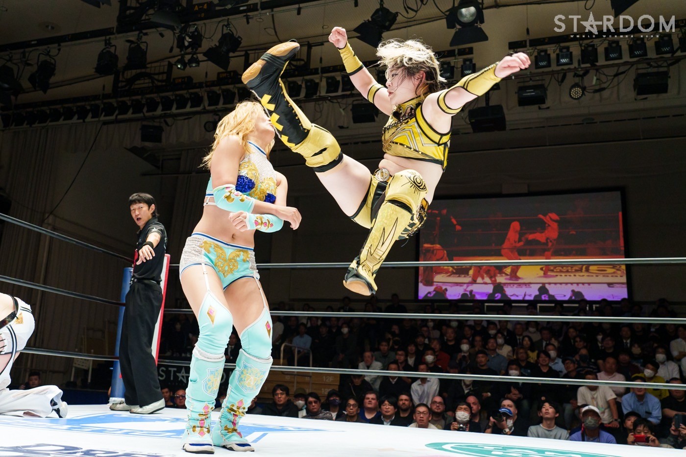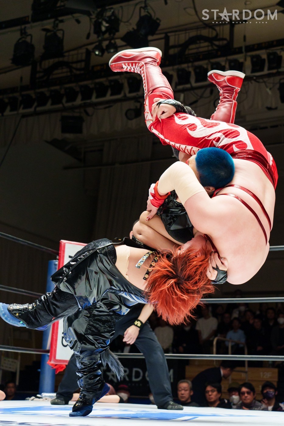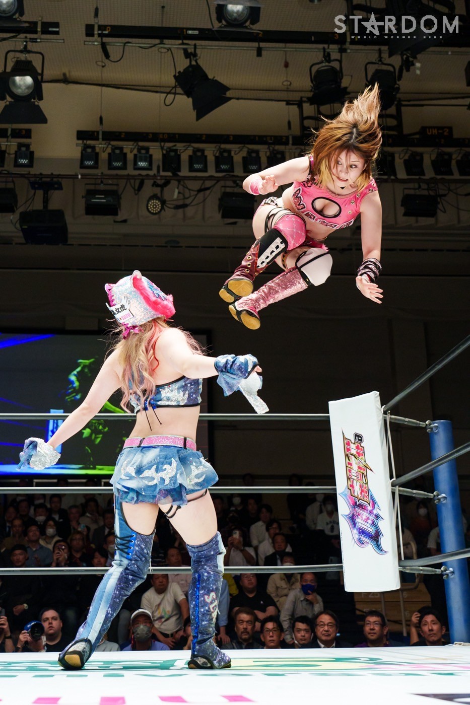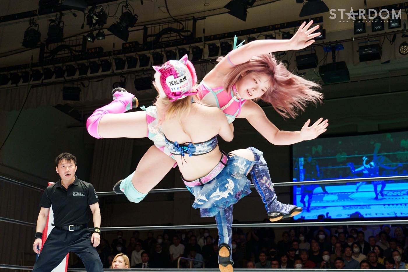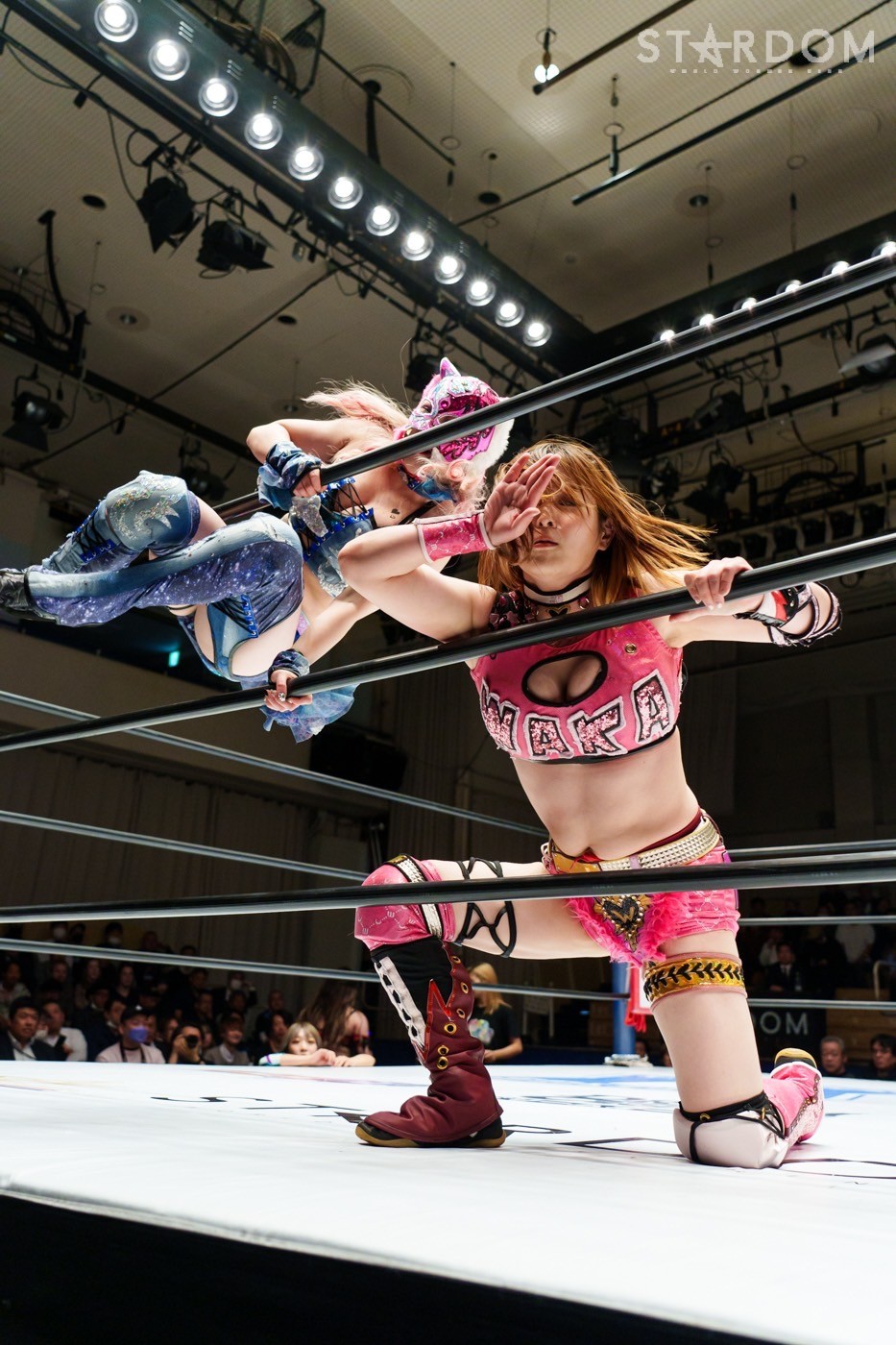 4勝1引き分けでブルーゴッデスのトップを走る、なつぽい&安納サオリ組と2連勝中の渡辺桃&テクラ組によるタッグリー グ公式戦。なつぽい&安納は元ゴッデス・オブ・スターダム王者で桃&テクラ組は現王者。タッグのベルトを意識しての闘いになることは必至。安納にはセンダイガールズで里村明衣子と対戦してのスターダム凱旋でもある。リーグ戦では上位3チームが決勝トーナメントに進出できるが、1位通過を意識しての対戦にもなりそうだ。