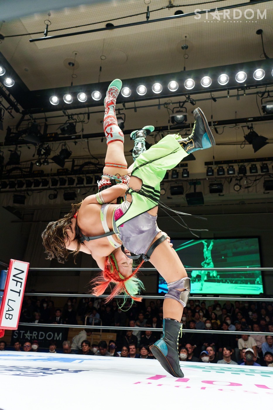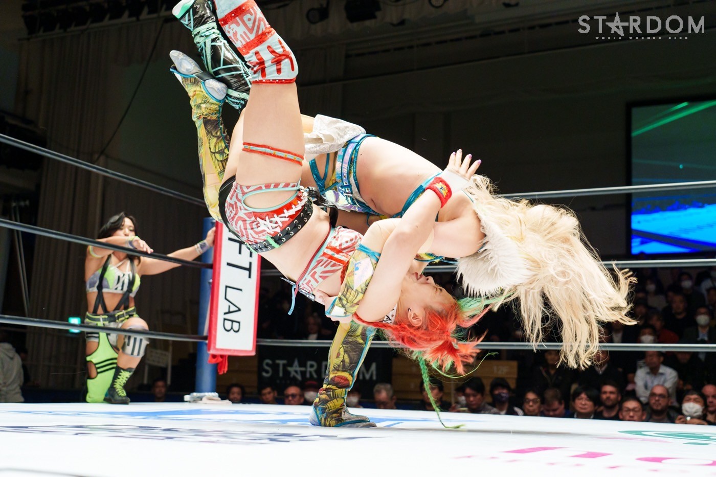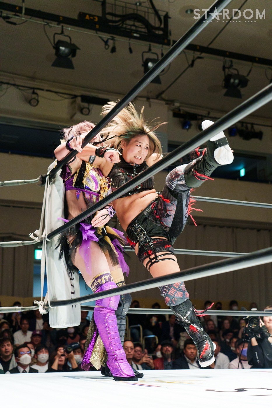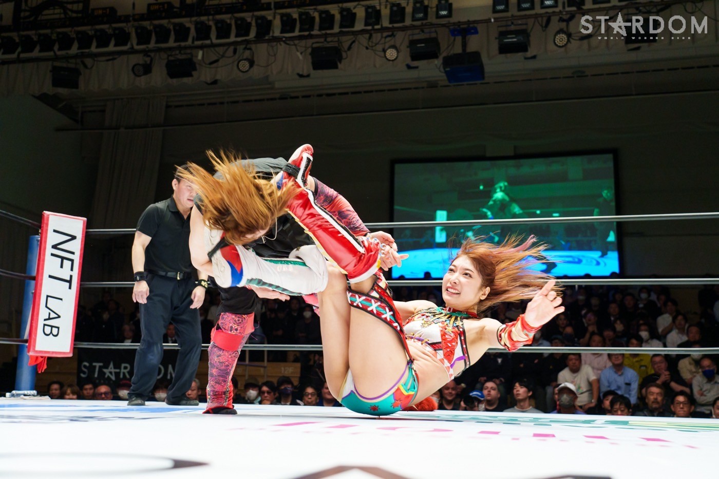 4勝1引き分けでブルーゴッデスのトップを走る、なつぽい&安納サオリ組と2連勝中の渡辺桃&テクラ組によるタッグリー グ公式戦。なつぽい&安納は元ゴッデス・オブ・スターダム王者で桃&テクラ組は現王者。タッグのベルトを意識しての闘いになることは必至。安納にはセンダイガールズで里村明衣子と対戦してのスターダム凱旋でもある。リーグ戦では上位3チームが決勝トーナメントに進出できるが、1位通過を意識しての対戦にもなりそうだ。