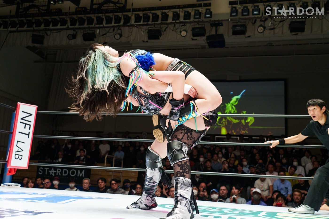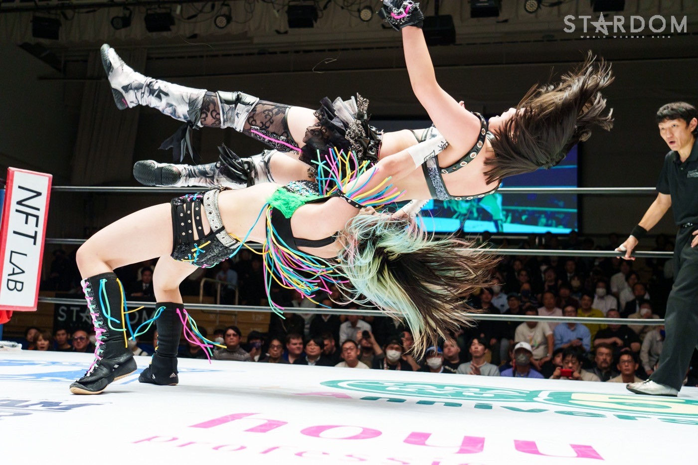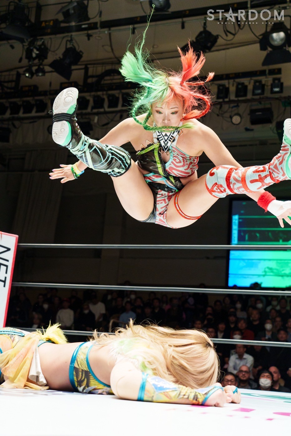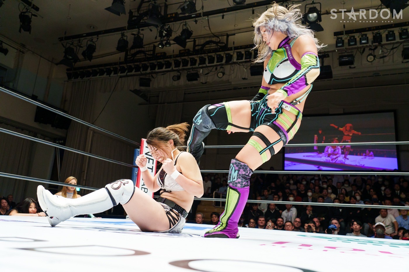 4勝1引き分けでブルーゴッデスのトップを走る、なつぽい&安納サオリ組と2連勝中の渡辺桃&テクラ組によるタッグリー グ公式戦。なつぽい&安納は元ゴッデス・オブ・スターダム王者で桃&テクラ組は現王者。タッグのベルトを意識しての闘いになることは必至。安納にはセンダイガールズで里村明衣子と対戦してのスターダム凱旋でもある。リーグ戦では上位3チームが決勝トーナメントに進出できるが、1位通過を意識しての対戦にもなりそうだ。
