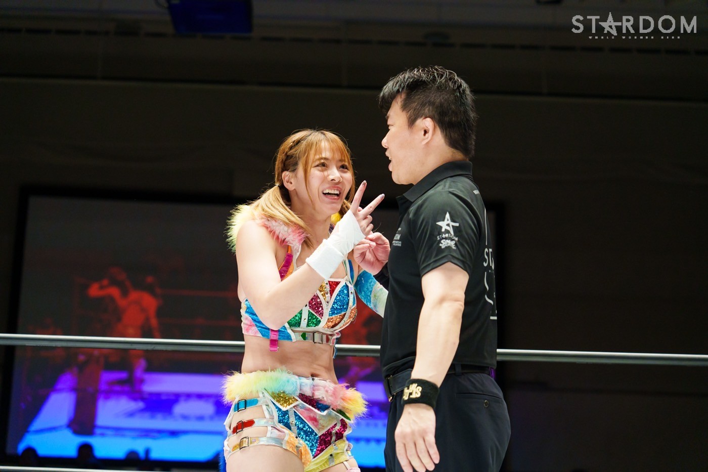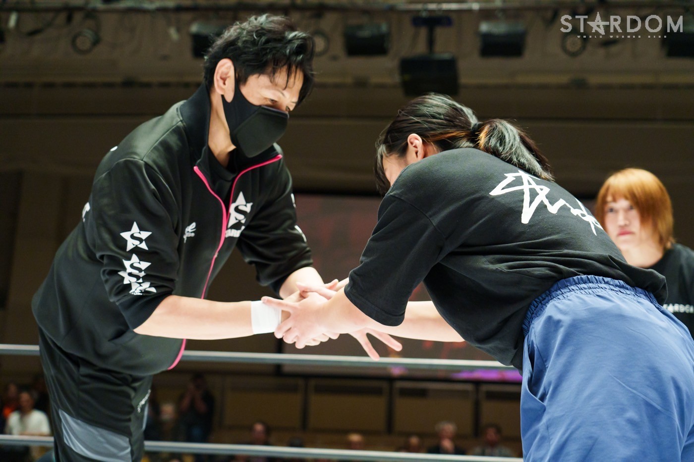 ミラノ「スターダム練習生のコーチをやってます、ミラノコレクションA.T.といいます。纏さん、きょうの相手は誰と聞いてましたか?」