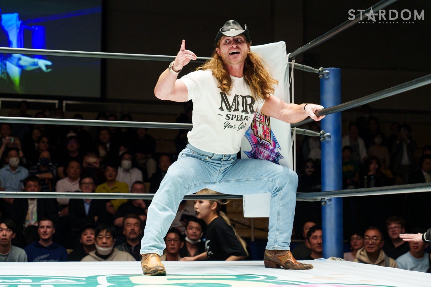 中野が握手求めて立ち上がる。上谷が中野の手を叩いてスピンキック、スタークラッシャー。小波が玖麗を攻撃。上谷は中野に黒スプレー噴射し、赤いベルトを持って挑発。