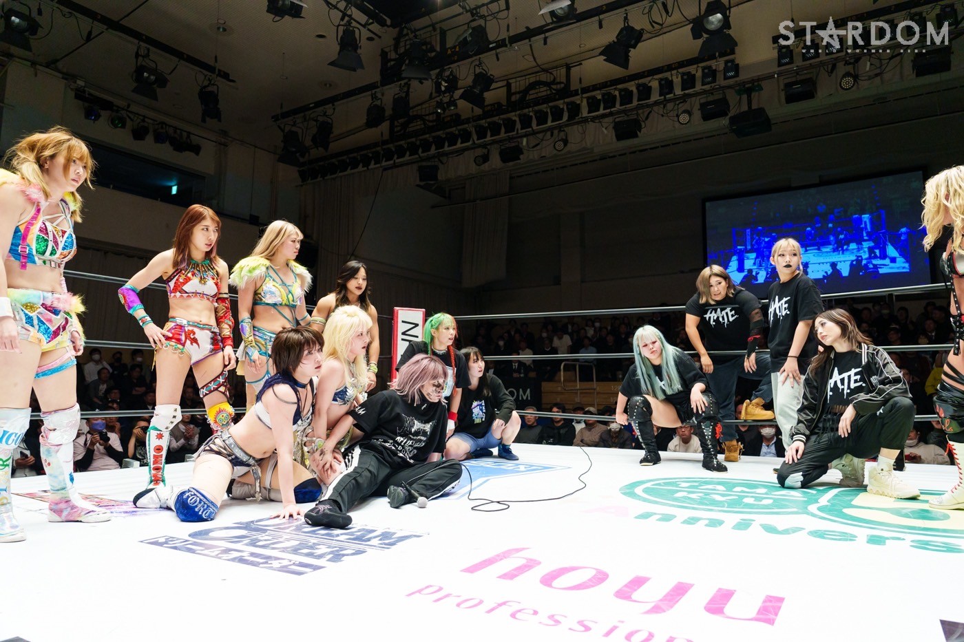 クラーク・コナーズが出現。するとH.A.T.E.が現われリング上で乱闘。コズエンが守ろうとすると、岩谷を筆頭にSTARSも駆けつけH.A.T.E.と乱闘、岩谷と桃が髪をつかみ合う。