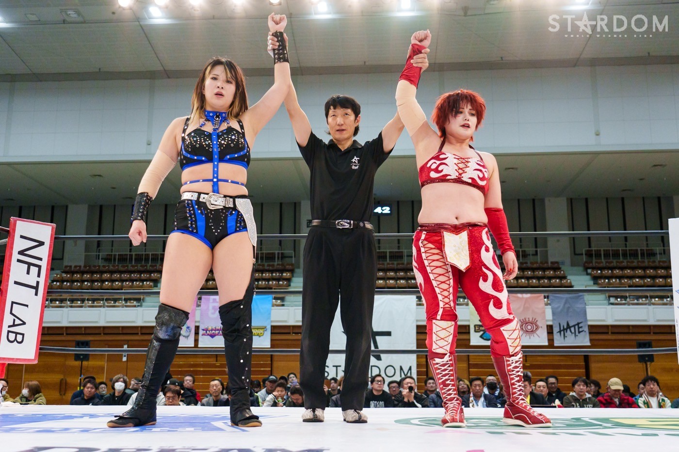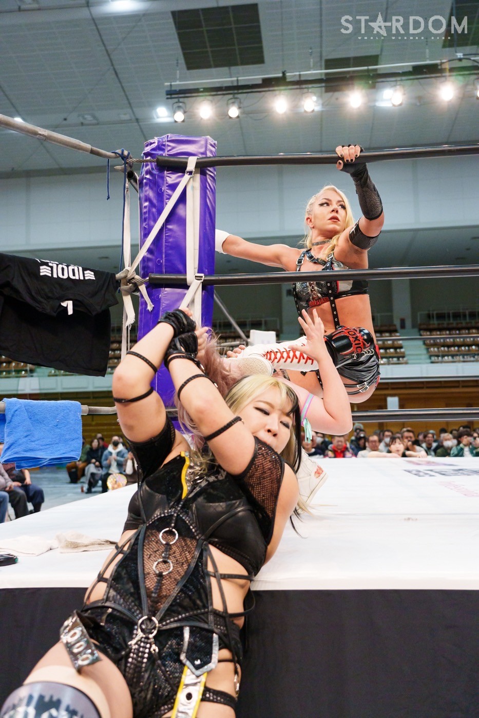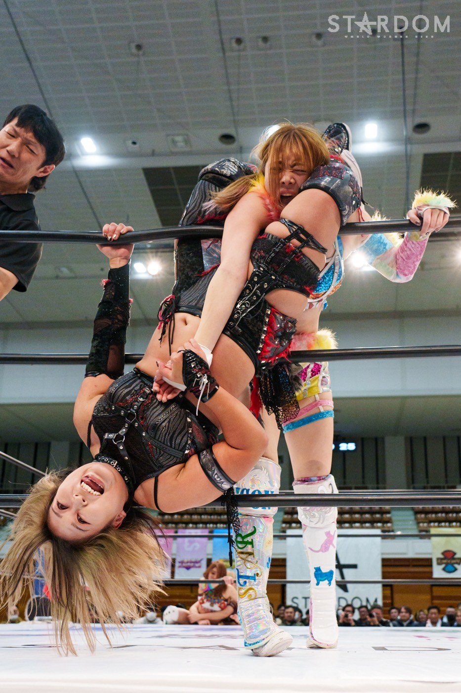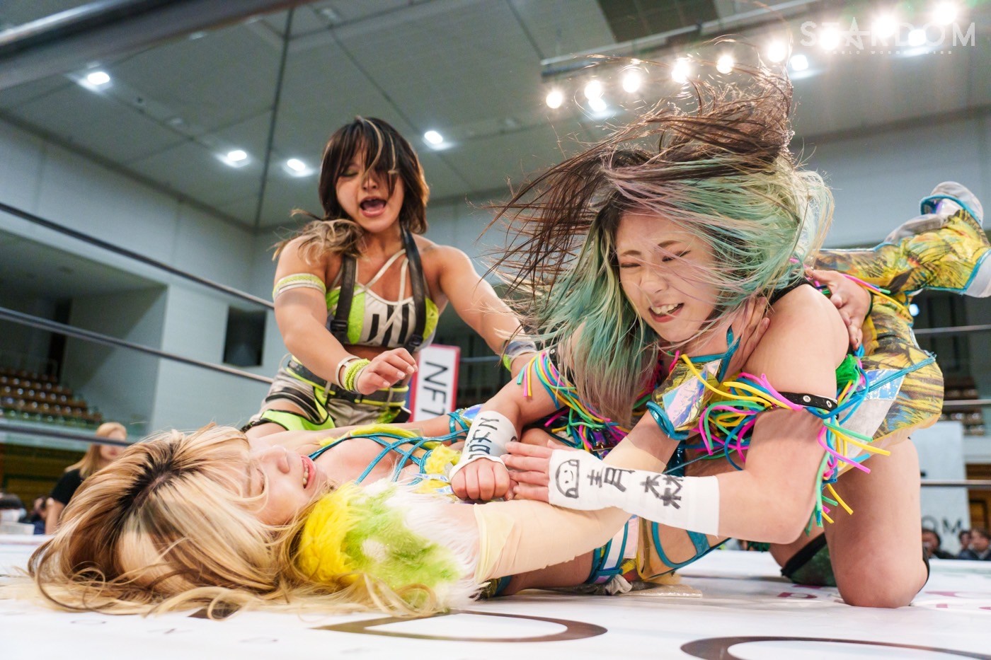 3連勝中の渡辺桃&テクラ組と2勝1敗の月山和香&梨杏組によるタッグリーグ公式戦。テクラの負傷により合流こそ遅れたものの、桃&テクラ組はさすがのゴッデス・オブ・スターダム王者チーム。3戦3勝で、今後首位戦線に入ってくる可能性が非常に高い。この試合に勝てば4連勝だ。対する月山&梨杏組は全敗の危惧さえあったものの、ふたを開ければまさかの連勝スタートを切ってみせた。しかし、11・11後楽園で敗れ連勝はストップ。ここで負ければズルズルといきかねないだけに、王者チームを止める番狂わせを起こしたい。