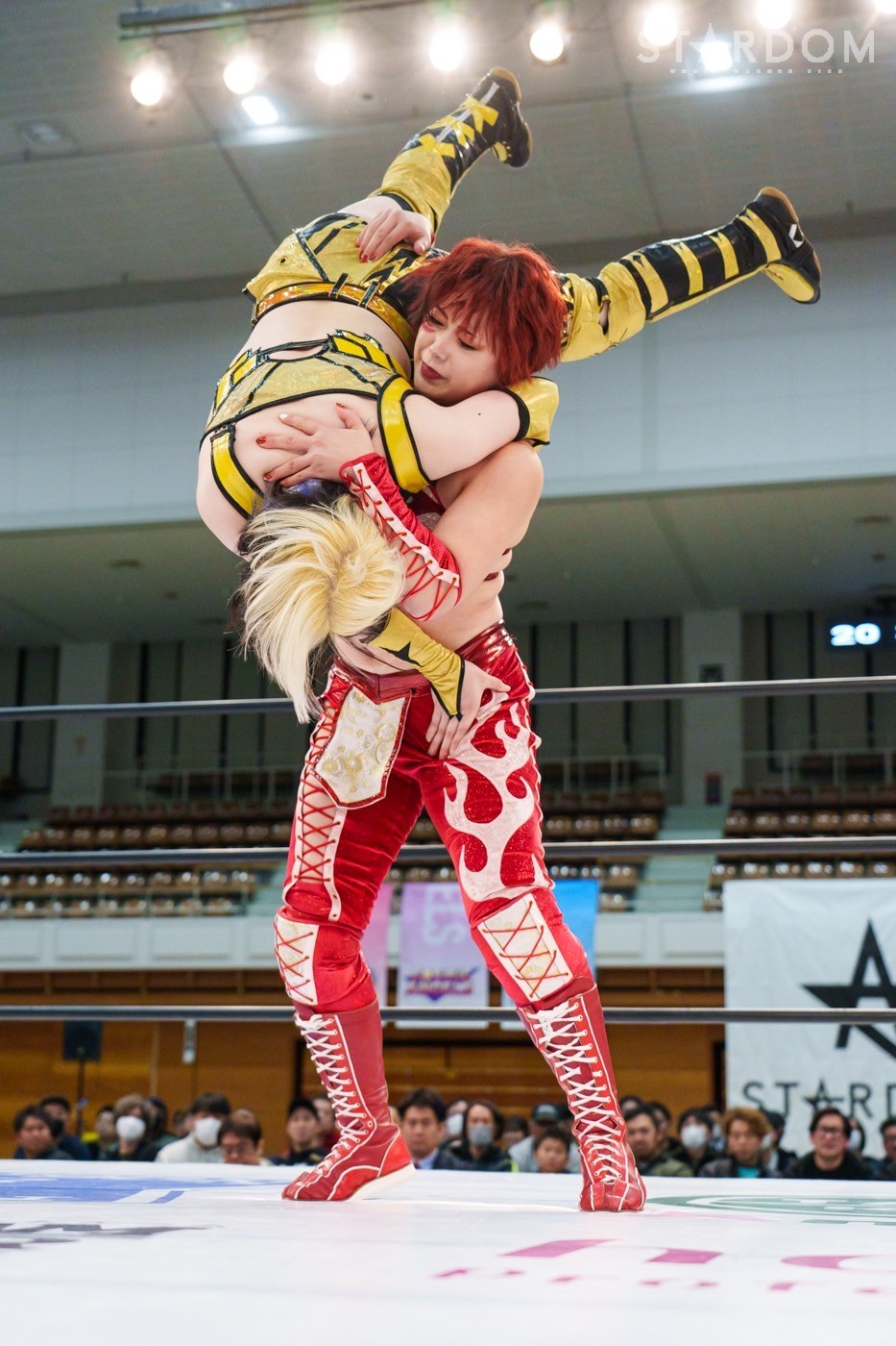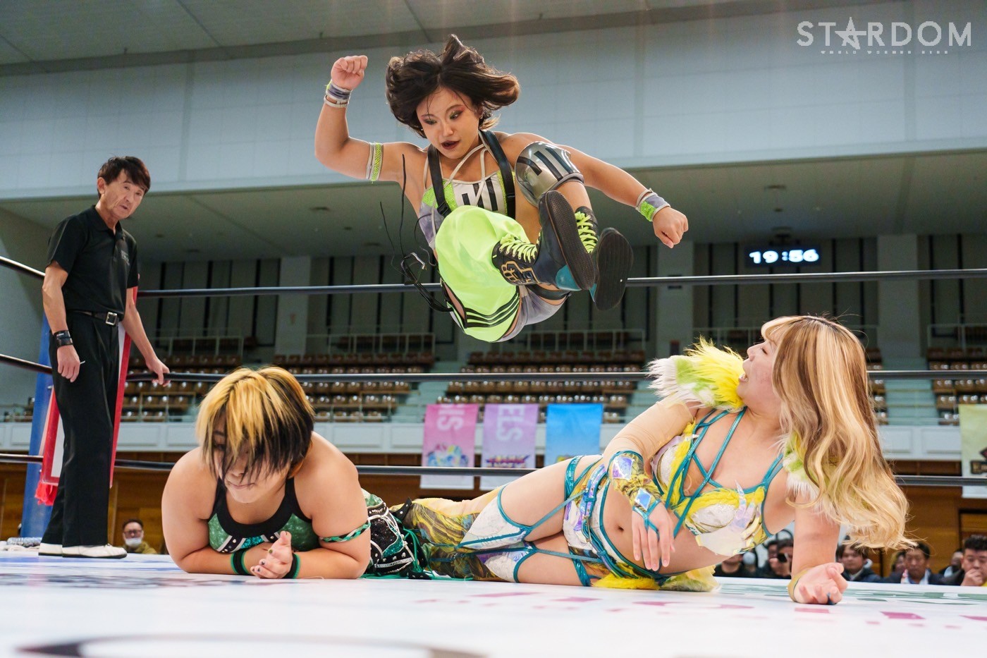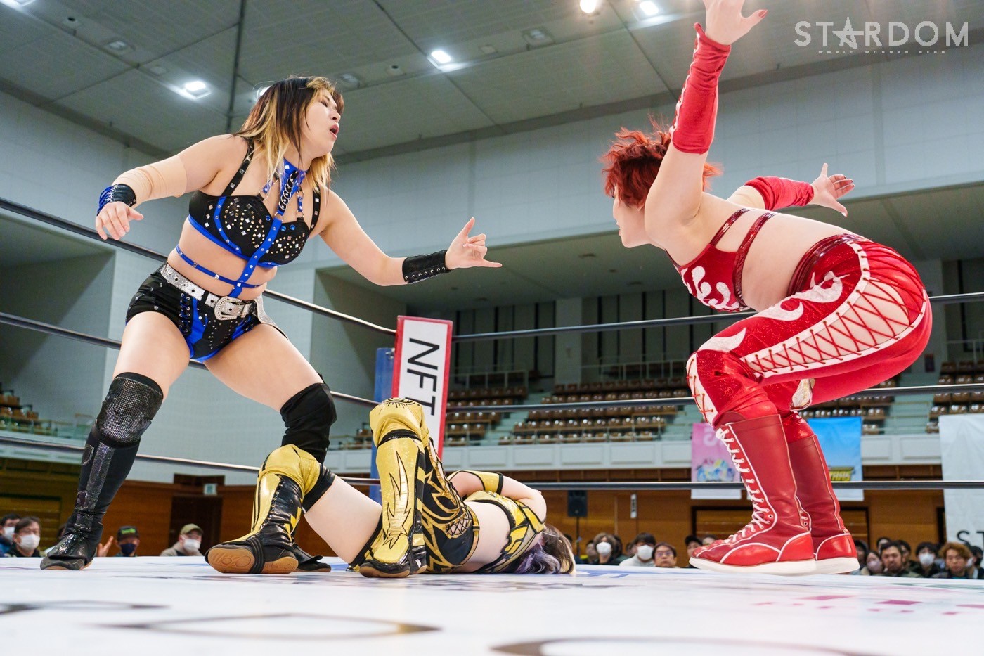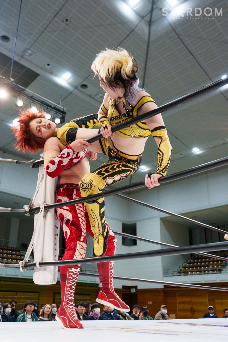 3連勝中の渡辺桃&テクラ組と2勝1敗の月山和香&梨杏組によるタッグリーグ公式戦。テクラの負傷により合流こそ遅れたものの、桃&テクラ組はさすがのゴッデス・オブ・スターダム王者チーム。3戦3勝で、今後首位戦線に入ってくる可能性が非常に高い。この試合に勝てば4連勝だ。対する月山&梨杏組は全敗の危惧さえあったものの、ふたを開ければまさかの連勝スタートを切ってみせた。しかし、11・11後楽園で敗れ連勝はストップ。ここで負ければズルズルといきかねないだけに、王者チームを止める番狂わせを起こしたい。