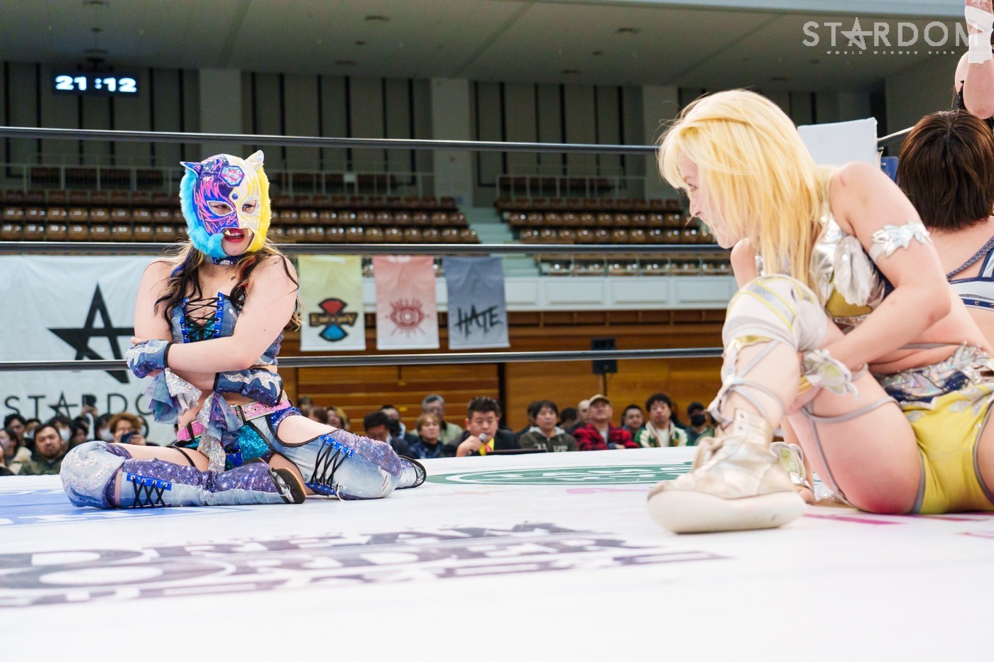 STARSの岩谷麻優&向後桃組とH.A.T.E.の小波&稲葉あずさ組がタッグで対戦。岩谷&向後はタッグリーグ出場チームで、小波&あずさ組はリーグ戦とはパートナーを代えての試合となる。