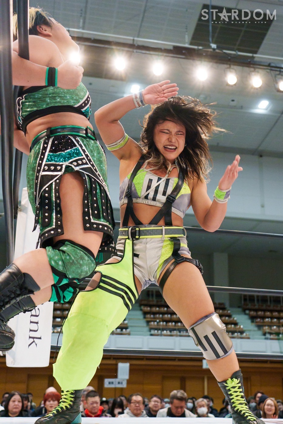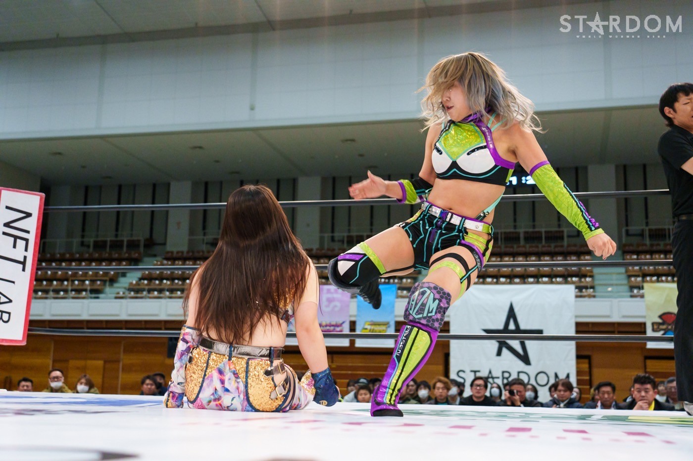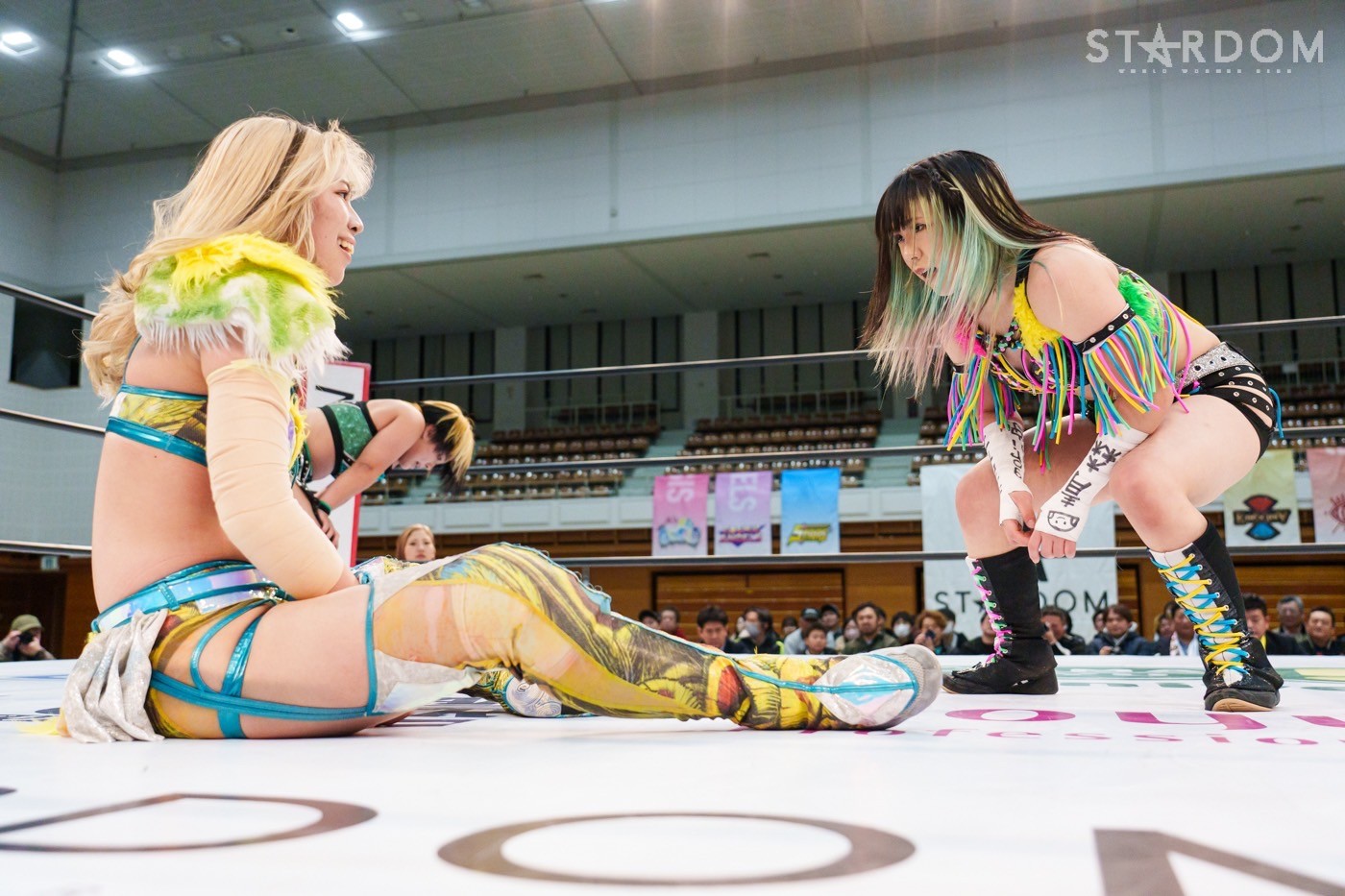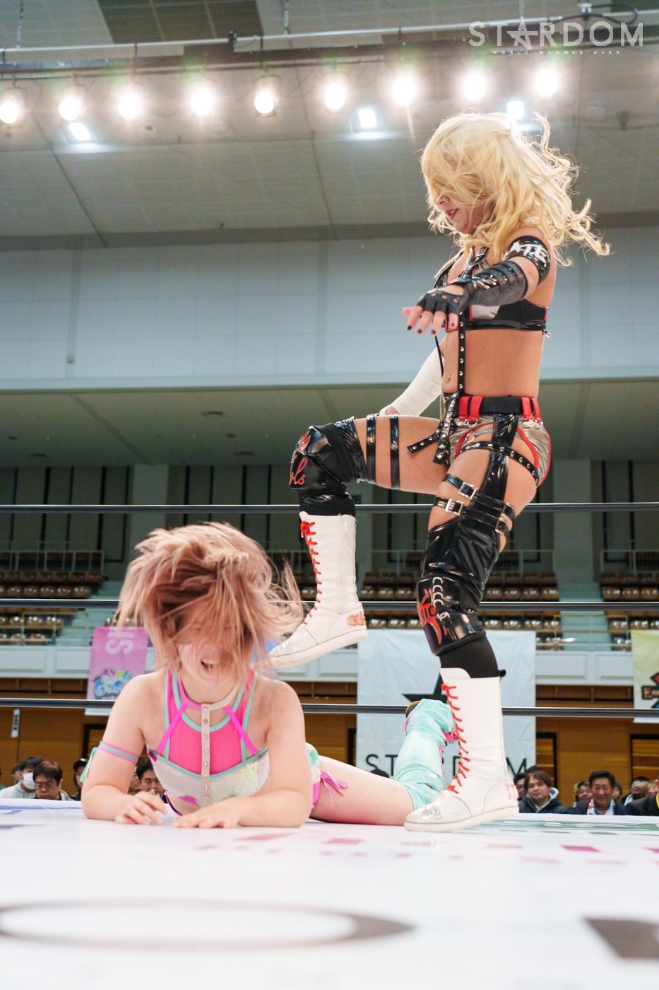 なつぽい&安納サオリ組と のスターライト・キッド&鈴季すず組によるタッグリーグ公式戦。順調に得点を重ねてきたなつぽい&安納組だが、ここ2試合は白星から遠ざかっている。ここでキッド&すず組が2点を獲得し、なつぽい&安納組の勢いを止め自分たちのチームを有利な方向にもっていきたい。また、ワンダー・オブ・スターダム王座取りを狙っているキッドにとっては、王者なつぽいとの直接対決。この試合に勝てばタイトル戦に向けての絶好のアピールとなる。