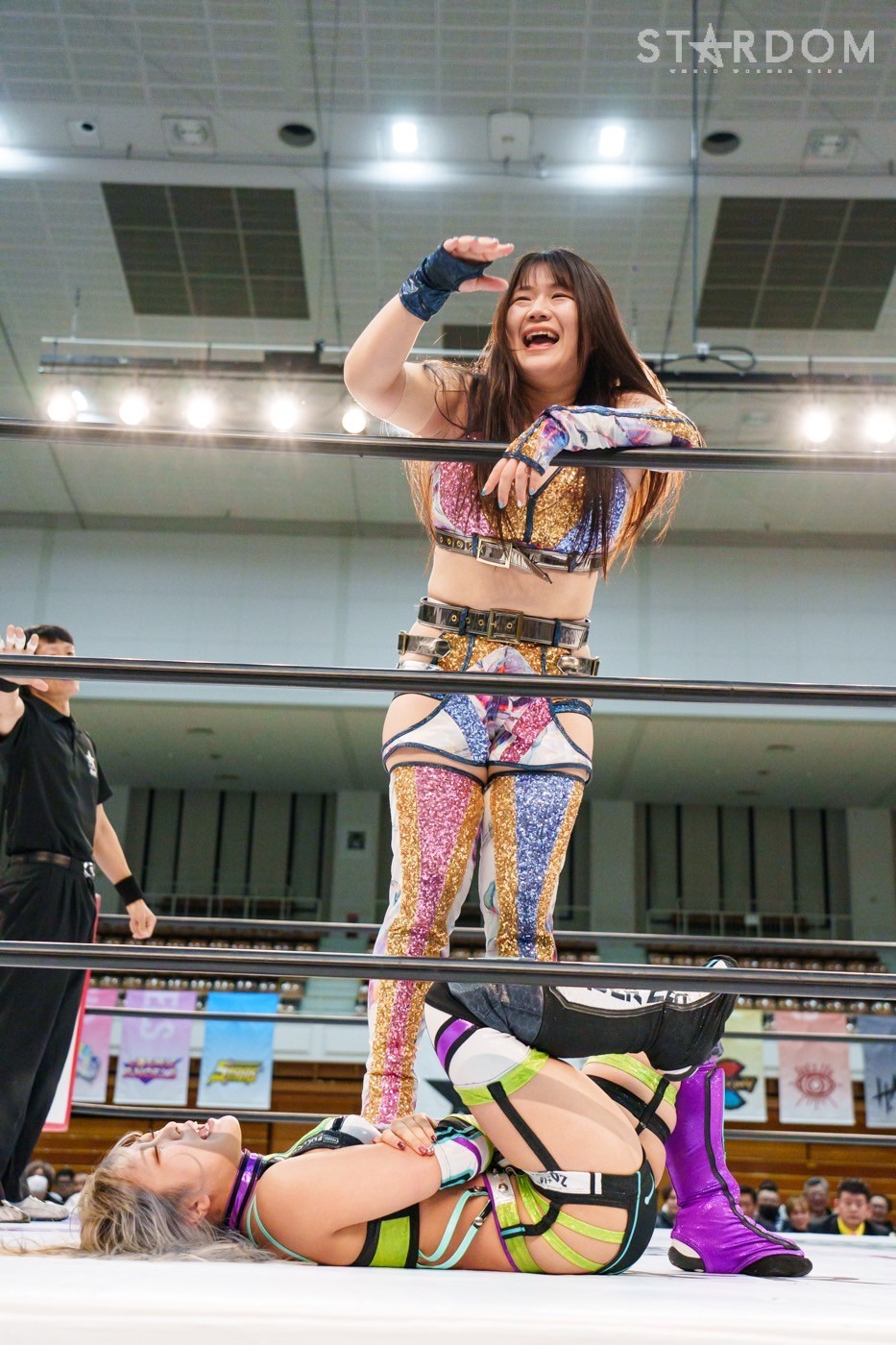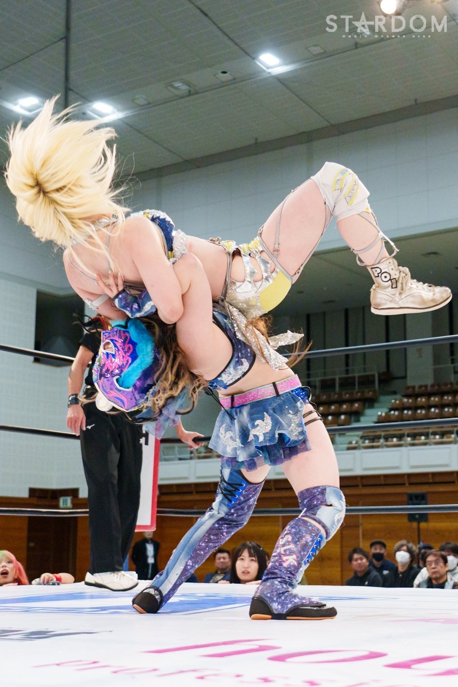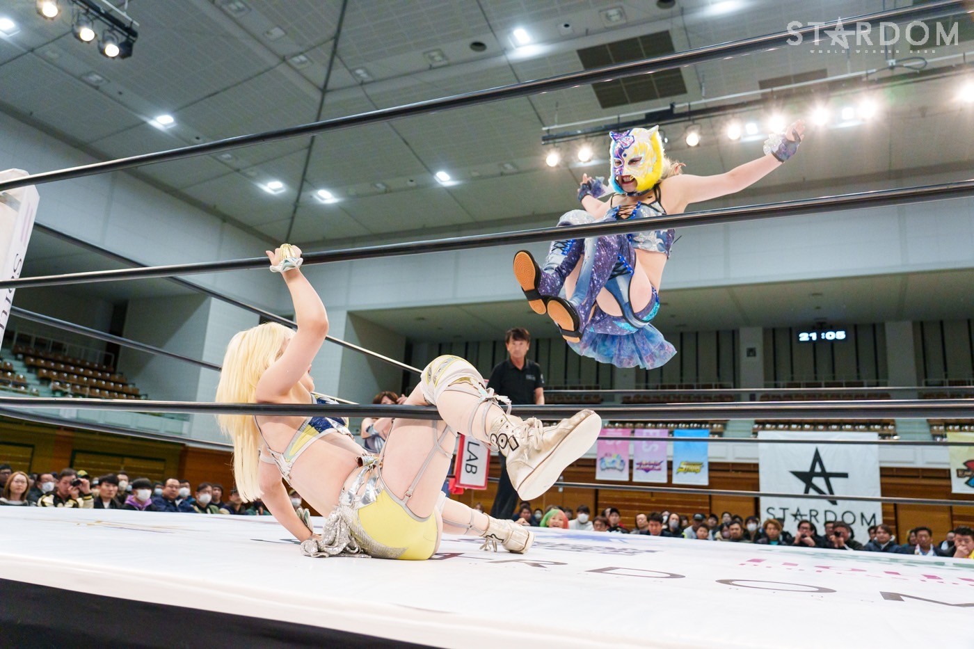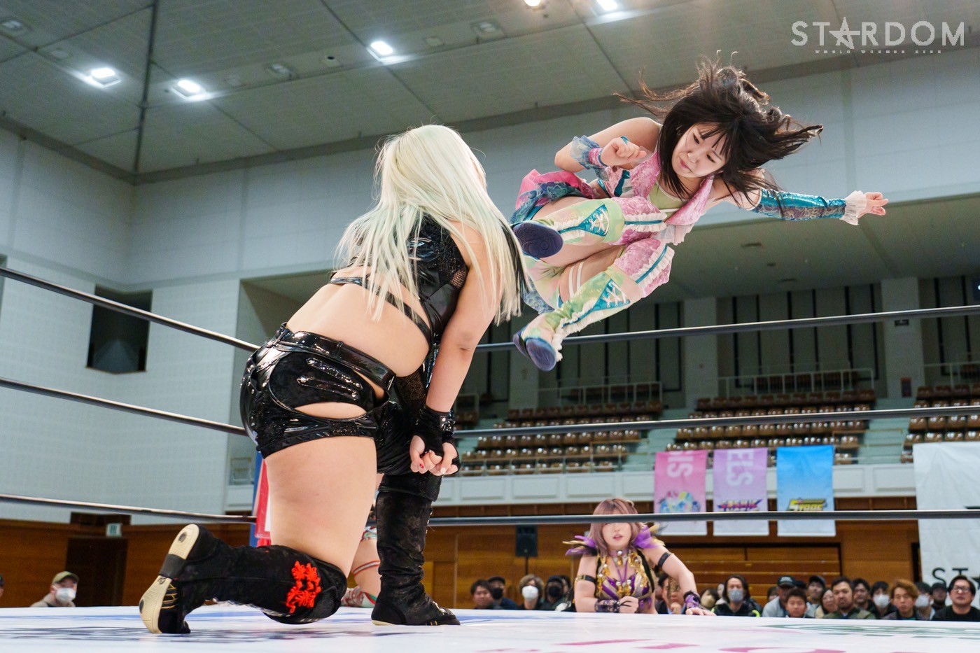 なつぽい&安納サオリ組と のスターライト・キッド&鈴季すず組によるタッグリーグ公式戦。順調に得点を重ねてきたなつぽい&安納組だが、ここ2試合は白星から遠ざかっている。ここでキッド&すず組が2点を獲得し、なつぽい&安納組の勢いを止め自分たちのチームを有利な方向にもっていきたい。また、ワンダー・オブ・スターダム王座取りを狙っているキッドにとっては、王者なつぽいとの直接対決。この試合に勝てばタイトル戦に向けての絶好のアピールとなる。