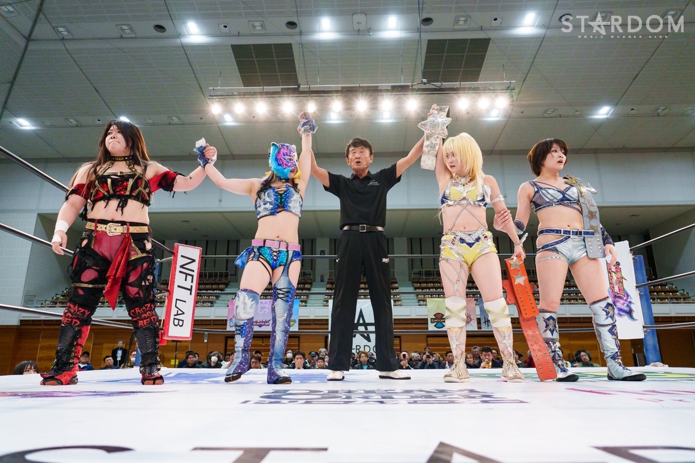 なつぽいとキッドの先発で試合がスタート。なつぽいがキッドをロープに追い込み、ブレイクしてから腕の取り合い。キッドがヘッドロックで絞り上げ、なつぽいがロープに振ってロープワークの攻防。なつぽいがドロップキック、インディアンデスロックから腕を取る。ここに安納も加勢する。なつぽいと安納がキッドの腕を取り蹴りを入れる。左右からのドロップキックはキッドがかわし、鈴季と合体。場外に落とすと、キッドがプランチャで飛ぶ。キッドが安納、鈴季がなつぽいにその場跳びムーンサルトプレス。安納が返すと、鈴季が顔面を踏みつけ、キッドが髪を引く。さらに鈴季はサッカーボールキック。安納が返すと、キッドがチョップの連打。キッドが「あんとき(ワンダー王者)のサオリはどこ行った?』と張り手。安納もやり返して、なめんなコノヤロー!」とビッグブーツ。なつぽいと鈴季がエルボーを打ち合う。なつぽいがドロップキック、鈴季がカウンターのエルボー。鈴季がバックを取るとなつぽいがこらえてロープをつかみにいくと、エプロンのキッドと鉢合わせにしてドロップキック。安納が鈴季にミサイルキック。鈴季がエルボー、安納がフィッシャーマン。安納と鈴季がエルボーの応酬。鈴季が両手を広げ受けて立つ。さらにエルボーの応酬が続き、安納が悶絶。安納が連打するが、鈴季が一発で倒す。鈴季は延髄斬りをかわしトラースキック、安納がカウンターで延髄斬り、鈴季がスピア。10分経過。キッドが控えのなつぽいを挑発してから安納にコルバタ。619を安納がかわしてフィッシャーマン、極楽固め。キッドがエスケープすると、安納はフィッシャーマンの構え。キッドがこらえてダイビングボディーアタック。キッドは安納をコーナーに激突させ、なつぽいを呼び込む。なつぽいが入るとキッドは「来てくれてありがとう」と声をかける。打撃のかわし合いから、なつぽいがネックブリーカー、腕十字。キッドがエスケープすると、なつぽいが右腕をロープにかけて蹴り上げ、右腕にドロップキック。キッドがカウンターのドロップキックからなつぽいの右ヒザをロープにかけてドロップキック。キッドはレッグブリーカーからドラゴンスクリュー。キッドのフィッシャーマン狙いをなつぽいが切り返す。15分経過。なつぽいがエルボー、キッドが右ヒザへドロップキック。キッドの突進をなつぽいがかわすが、鈴季が乱入して串刺しエルボー、ダブルで串刺しドロップキック。キッドがなつぽいにフィッシャーマン連打。なつぽいが返すと、キッドはコーナーへ。安納がカットし、なつぽいがデッドリードライブ、安納がフィッシャーマン、なつぽいがジャックナイフ。キッドが返すと、なつぽいと安納がサンドイッチ式延髄斬り。なつぽいは場外プランチャ。残り3分。キッドがリングに戻され、安納がミサイルキック、なつぽいがダイビングボディーアタック、腕十字、腕固め。鈴季がバズソーでカットするが、安納がジャーマン。キッドが安納にハイキック、なつぽいがキッドにスピンキックで全員がダウン。キッドが丸め込み、なつぽいがトラースキック、ポイ捨てジャーマン。フェアリアルギフトはキッドがかわしてニーアタック。残り1分。鈴季がなつぽいを捕らえキッドのフェースクラッシャーと合体。キッドがムーンサルトプレスもあたりが浅い。キッドはなつぽいにタイガースープレックス。しかし1カウントが入ったところでタイムアップとなった。