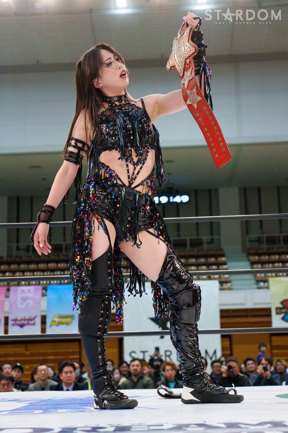 中野がコールを受けようとロープに上ったところで上谷が襲いかかる。場外戦となり、中野と上谷がやり合う。ナツコが玖麗をリングに入れてH.A.T.E.が3人で攻撃。上谷がフットスタンプ、琉悪夏、ナツコがセントーン。ナツコは玖麗をロープに固定し、H.A.T.E.で攻撃。琉悪夏が玖麗にヘアーホイップの連続。玖麗が琉悪夏の突進をかわしてドロップキック連打。水森が入り、琉悪夏にラリアット。2発目狙いはナツコがカット、しかし水森が鉢合わせにしてクロスボディー。するとH.A.T.E.がキャッチ。水森が逃れ、まとめてダイビングボディーアタック。水森の突進に「お返しじゃ、ボケ!」と琉悪夏がクロスボディー。水森と琉悪夏がショルダータックルをぶつけ合う。琉悪夏が打ち勝つが、水森もカウンターでショルダータックル。中野と上谷が蹴りをかわし合う。上谷が腹部へのパンチから回し蹴り。上谷は「おい、チャンピオン!」と挑発し、中野の打撃をかわしてアッカンベー。中野が張り手からバックドロップ。上谷が返すと、中野がタイガーの構え。上谷が切り返してスピンキック、中野がバックドロップ。上谷が立ち上がり二段蹴り、スタークラッシャー狙いを中野がかわしてスピンキック。両者ダウン。玖麗が上谷にドロップキック連打、ボディースラムで叩きつける。上谷が返すと玖麗がスリーパー。H.A.T.E.がカットし玖麗に次々と串刺し攻撃、上谷がカバーすると中野がカット。中野がナツコ、玖麗が上谷、水森が琉悪夏にサブミッションを仕掛ける。中野と玖麗が2方向でダイブ。玖麗がカバーも上谷が返す。玖麗は上谷にスリーパー。上谷がエスケープしてロープワークで翻弄しニールキック。スタークラッシャー狙いを玖麗が切り返して丸め込む。返された玖麗だがスピアを決める。上谷が返すと、玖麗はエルボー連打。玖麗の突進に琉悪夏がボックスで殴打しナツコがキャノンボール、上谷がスタークラッシャー。3カウントが入り上谷が玖麗をフォールした。試合後、ベルトを持とうとする中野の手を上谷が踏みつけベルトを強奪。上谷はベルトを中野に誇示。中野はヘッドバットを打ち込みベルトを取り戻す。上谷は中野に蹴りを入れてから退場した。