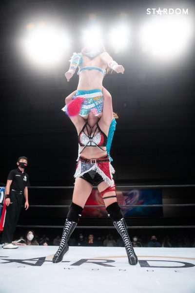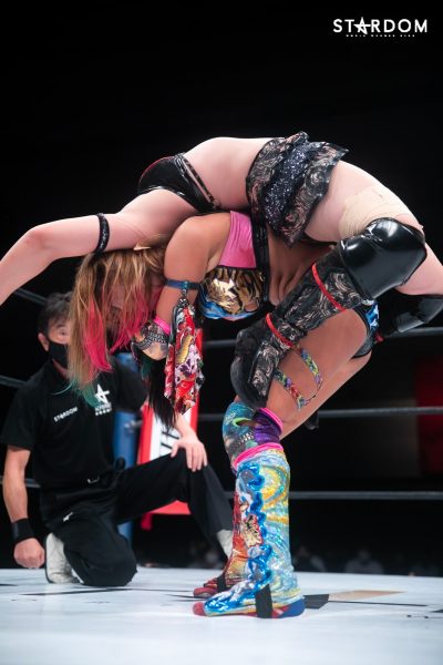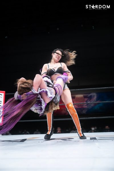 中野たむと並びブルースターズトップの舞華がウナギ・サヤカと公式戦。このカードは6・12大田区におけるシンデレラ・トーナメント準決勝以来の実現となる。準決勝では舞華が勝利し決勝戦に駒を進めた。一方のウナギは準決勝敗退も、下馬評を覆すまさかの4強入り。同時進行のフューチャー・オブ・スターダム王座決定トーナメントではCOSMIC ANGELS同門の白川未奈に敗れるも、その白川からベルトを奪い現王者となっている。ウナギはここまで2勝2敗の五分と5★STAR GPでも健闘。舞華との対戦で白星を挙げれば、優勝への道も開けてくるだろう。また、翌日の汐留では吏南を迎えてのフューチャー王座防衛戦。シングルリーグ戦とベルト、この同時進行がウナギに相乗効果をもたらすか。舞華が勝てば単独首位、ウナギが勝てば五分の星。リーグ戦のターニングポイントとなり得るカードである。