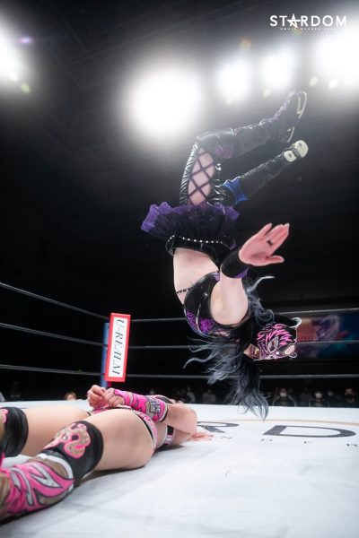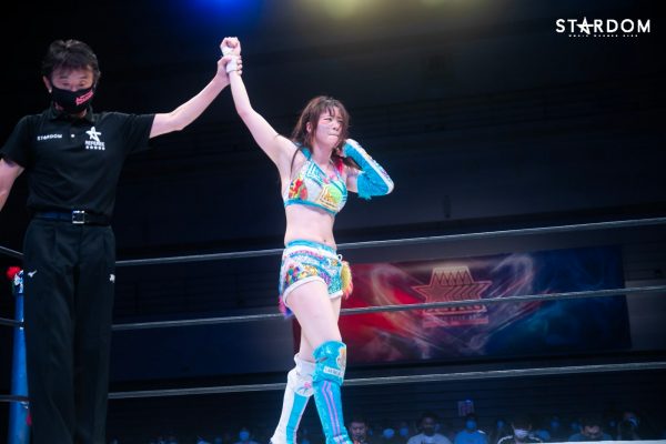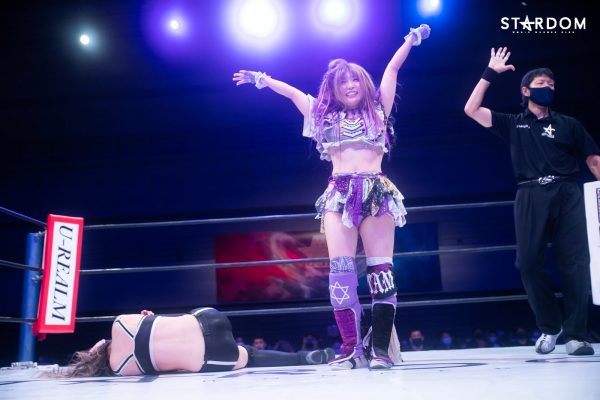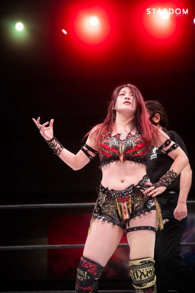 「琉悪夏とまた名古屋でシングルマッチ、今回は5★STAR GPだったけど、あいつ仲間なだけあって、全部私のやりたいこと見透かしてくるな。だが、まだまだあんな若造に3カウント取らせませんよ。琉悪夏、ジ・エンド!」