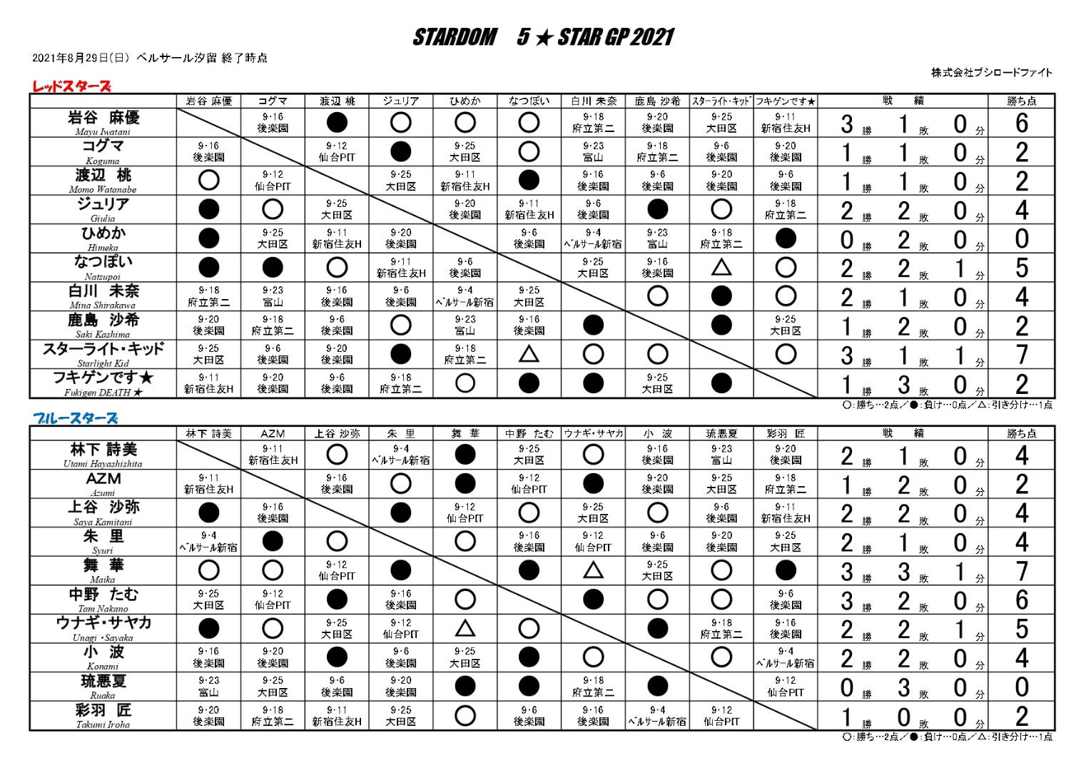 Takumi Iroha von Marvelous kehrt in den Ring ihrer ehemaligen Heimatliga Stardom zurück und nimmt nach sieben Jahren erstmals wieder am 5★STAR GP teil. Ihr Einstieg mitten in der Liga bedeutet einen vollen Terminkalender, doch Iroha ist nach langer Abwesenheit zurück und hat sich fest vorgenommen, bei Stardom anzutreten. Daher sind die Erwartungen an dieses Liga-Match so hoch. Ihre erste Gegnerin ist Maika von Donna del Mondo, die ebenfalls zum ersten Mal gegen sie antritt. Maikas vorheriges Match gegen Unagi Sayaka endete unentschieden nach Zeitablauf, doch sie ist weiterhin die unangefochtene Anführerin der Blue Stars. Dieses Match ist völlig unvorhersehbar und wird daher mit Spannung erwartet