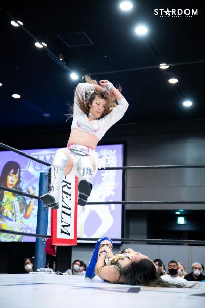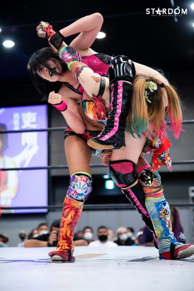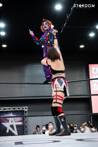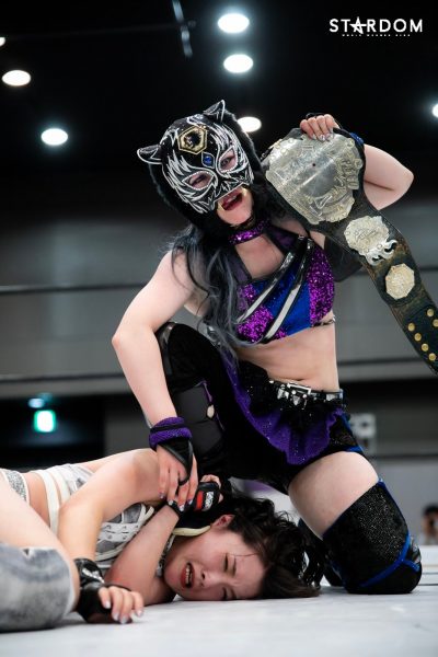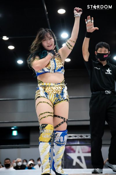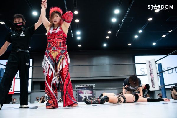 „Nein, das ist kein Problem. Ich habe schon seit meiner Zeit bei Stardom viele Einzelkämpfe bestritten und war immer eine Zuschauermagnetin. Ogawa-san nannte mich oft die Zuschauermagnetin. Das konnte ich als Neuling überwinden, daher habe ich jetzt andere Erfahrungen gesammelt. Egal wie viele Einzelkämpfe ich habe, solange ich sie schnell gewinnen kann, ist alles gut. Wenn es nach einem harten Kampf aussieht, hatte ich heute einfach zu viel Spaß. Ich will von nun an immer alles geben.“