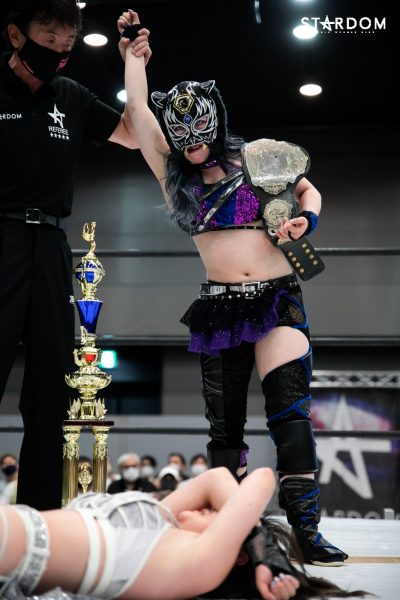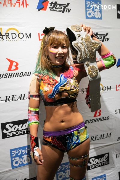„Es war hart, aber für mich ist sie die furchteinflößendste Wrestlerin bei Stardom. Ich finde es großartig, dass sie alles hört, was gesagt wird, selbst die negativen Dinge. Egal, was man ihr sagt, wenn sie zu Oedo Tai wechselt, sie stellt sich ihnen immer wieder mutig entgegen. Das ist eine großartige Eigenschaft von ihr, sowohl als professionelle Wrestlerin als auch als Mensch. Ich werde diesen Titel definitiv die regulären drei Jahre bis zum 4. Januar (nächstes Jahr) verteidigen, aber ich denke, danach wird sie ihn noch mehr wollen. Ich hoffe also, dass die drei Schwestern einen erbitterten Kampf darum liefern werden.“