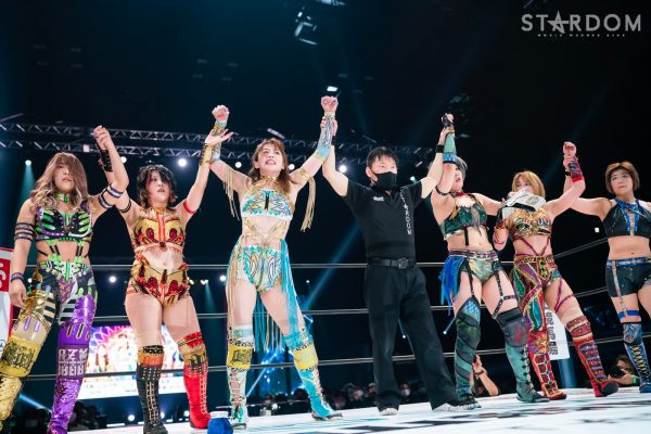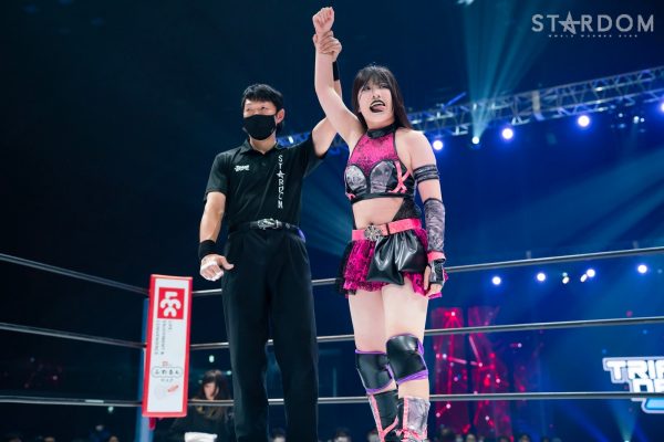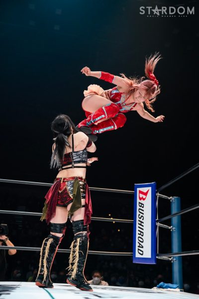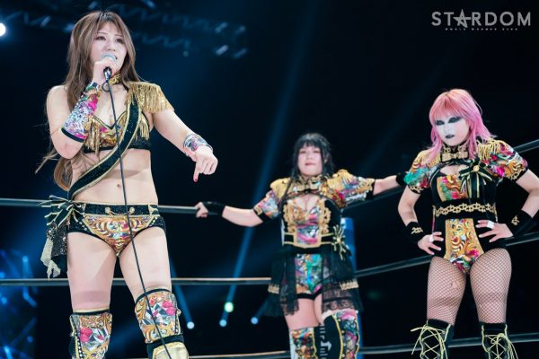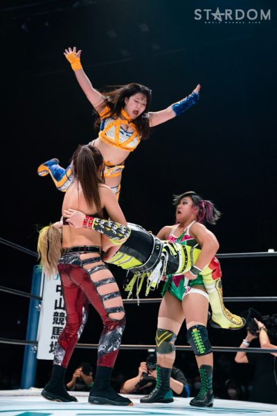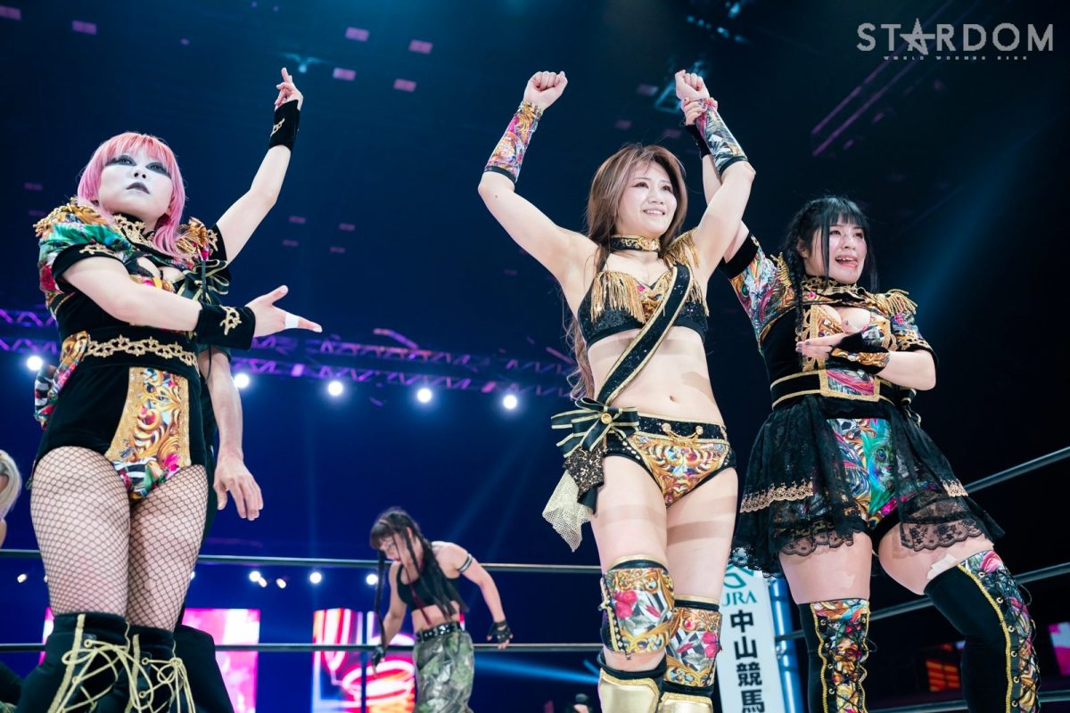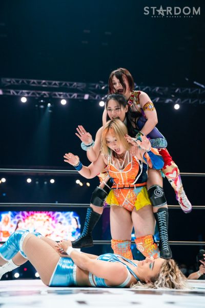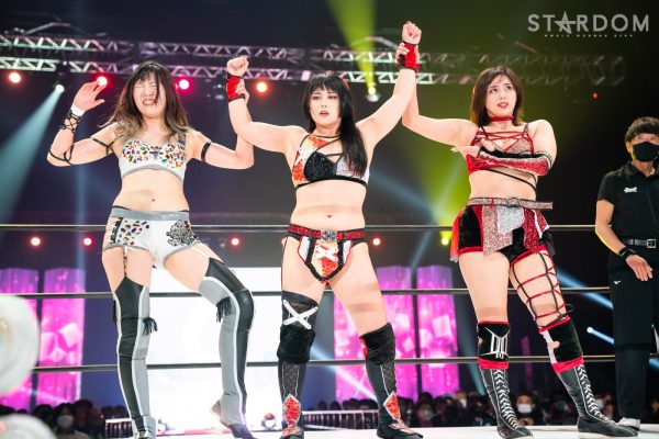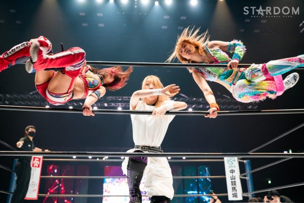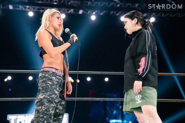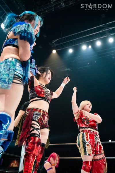 12・29両国で大江戸隊の鹿島沙希&スターライト・キッド&渡辺桃組を破りアーティスト・オブ・スターダム王座を奪取したプロミネンスの世羅りさ&鈴季すず&柊くるみ組がそのままトライアングルダービーに殴り込み。対するはキッド&琉悪夏&梅咲遥組で、キッドにはベルトを奪われた雪辱戦。キッドは大江戸隊の琉悪夏とKARMAではない梅咲とのトリオでリーグ戦に臨む。