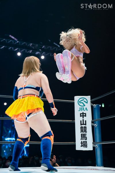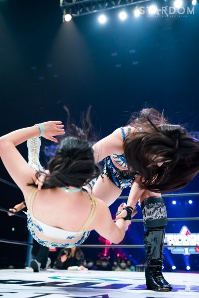 岩谷麻優&羽南&向後桃組のSTARSと刀羅ナツコ&鹿島沙希&渡辺桃組による公式戦の初戦。岩谷組は12・29両国におけるSTARSとの同門対決を制し、このリーグ戦をスタートさせる。一方の大江戸隊は鹿島と桃がプロミネンスにアーティスト・オブ・スターダムのベルトを奪われたため、出直しとなる一戦から巻き返しを図る。