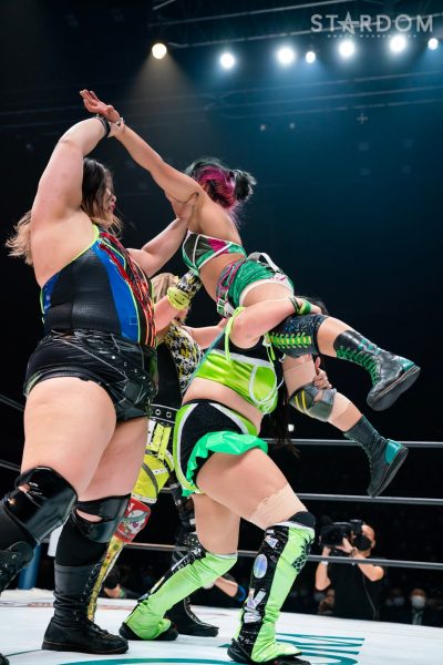 林下詩美&上谷沙弥&AZM組と朱里&MIRAI&壮麗亜美組による6人タッグリーグ公式戦は、クイーンズクエストとゴッズアイのベストチームが激突する闘いとなる。12・29両国では上谷がワンダー・オブ・スターダム王座、AZMがハイスピード王座を防衛。対するゴッズアイでは朱里がジュリアに敗れワールド・オブ・スターダム王座から転落、MIRAI&壮麗もゴッデス・オブ・スターダム王座への挑戦権をつかむことに失敗した。ある意味で対照的なチームのぶつかり合い。制するのはどちらのユニットか? また、上谷の指名から、上谷と壮麗には白いベルト戦に向けての前哨戦だ。