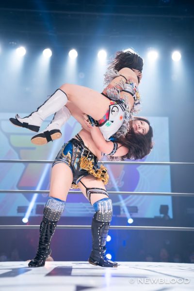 ゴングが打ち鳴らされても両者コーナーから動かず。ゆっくりと歩を進め月山がグラウンドでヘッドロック。ネックロックを吏南が切り返すと、すぐに月山も切り返す。腕の取り合いで吏南がバックにまわると月山が切り返しヘッドロック。吏南が振ろうとするが月山は離さずに締め続ける。吏南がロープに振ると月山がドロップキック、ニーアタック。吏南が返すと髪を持ってマットに叩きつける。吏南はボディースラムからカバー、返されるとワキ固め。月山がエスケープすると、吏南が仁王立ちで挑発。月山のエルボーに吏南はビッグブーツ、ロープに右腕を懸けて蹴り上げる。吏南はコーナーから右腕にダイビングニードロップ。月山が返すと、吏南は「こんなもんかオマエよ!」と挑発。月山がドロップキックから極楽固め。極楽ドンの構えは吏南がこらえる。月山はエルボー連打から突進も払い腰で叩きつけられる。吏南は串刺しダブルニーアタック。卍固め。丸め込みを月山が返す。吏南は月山の突進をかわしフィッシャーマン。月山が返すと、吏南はコーナーからダイブ。月山がかわし、変型の極楽ドン。両者ダウン状態からエルボーの打ち合いに。月山がフェースバスター、ミサイルキック。吏南が返すと、月山は極楽ドンを決める。吏南が返すと、月山はスープレックス狙い。吏南がこらえると月山がエルボー連打、吏南が突進をかわしビッグブーツ。吏南がリバースブレーンバスター。月山が返すと、吏南はダイビングダブルニードロップを放つ。しかし月山が返してみせる。10分経過。吏南はもう一発と予告。すると月山が追いつき下からエルボー。吏南もエルボーをやり返す。月山がエルボー連打、コーナーに上がるとエルボーの打ち合い。月山がコーナーの吏南をマットに叩きつけるが2カウントどまり。月山はコーナーから極楽ドン、しかし吏南が返してみせる。残り3分。月山がスープレックスを狙うが吏南がロープへ。月山が戻して決めるが2カウント。吏南が月山を叩きつけるが2カウント。吏南がハイドレンジアで絞り上げる。残り2分。月山の足がロープに届く。吏南が卍固めを狙うと月山がオースイスープレックス。吏南が返すと右腕を蹴り上げハイドレンジア。月山がギブアップし、吏南の防衛となった。