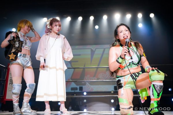 星来「芽依はハイスピード、鹿島沙希さんには断られ続けられてますけど、いつかはゴッデスも芽依はやりたいことがいっぱいある、 挑戦したい。ただ、もっともっともっとも~っとプロレスを楽しみたい。何年か前に奈七永さんとシングルマッチ、メチャクチャ楽しかったです。ボロボロに負けましたけど、あのときの自分を少し取り戻したい。だから芽依とパッションお願いします」