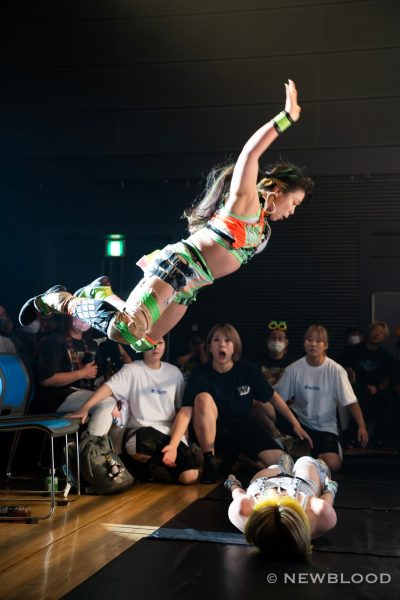 壮麗と田中が先発、バックの取り合いから田中がラリアットをかいくぐりドロップキック連打を続ける。壮麗が払い除けカバーすると田中が返してドロップキック。ボディースラムは反対に投げられる。壮麗が逆水平の連打を浴びせコーナーに追い込む。美蘭とななみが次々と串刺し攻撃。ななみがカバーすると田中が返してワキ固め。クロスボディーアタックを浴びせると炎華に託す。炎華はななみにエルボー連打。壮麗が介入するが炎華が2人をコーナーに追い込み側転エルボー。ななみが返すと炎華はクロスフェースでギブアップを迫る。ななみがエスケープすると炎華がドロップキック。HANAKOがななみにショルダータックル、ななみが受けて立ち壮麗と合体のショルダータックルで打ち倒す。美蘭がHANAKOにドロップキック、HANAKOがコーナーに振ると飛んできた美蘭をキャッチ。しかし美蘭がHANAKOを倒してカバーする。壮麗がHANAKOを担いでサイドに落とすとななみがボディープレス。美蘭がライオンサルト。美蘭がコーナーに上がるとHANAKOがカットしてアルゼンチン。美蘭が切り返し丸め込みの連続。田中と炎華がダブルのドロップキックを美蘭に浴びせHANAKOがブレーンバスター。ギリギリで美蘭が肩を上げるとHANAKOがアルゼンチンバックブリーカー。こらえた美蘭だが遂にタップ。HANAKOの勝利となった。
