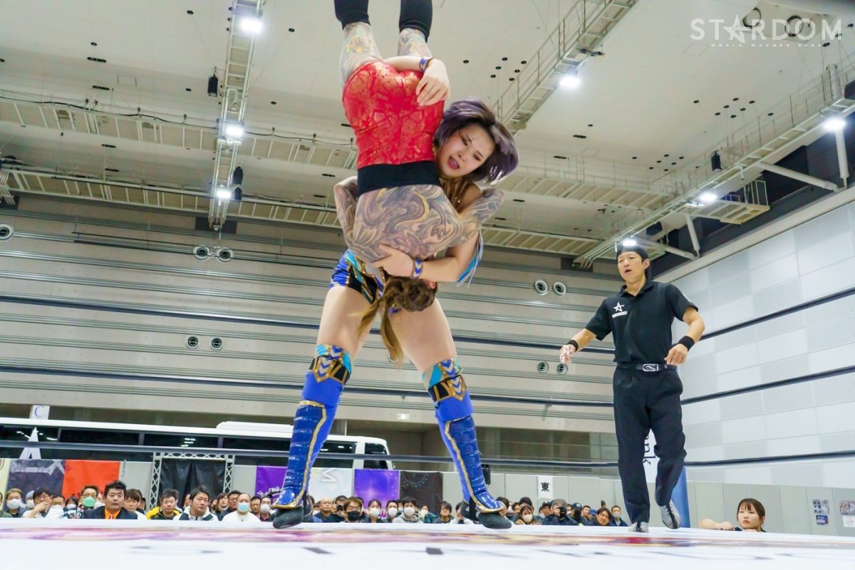 スターズのwing☆gori羽南&飯田沙耶組が連日のタッグ結成でドンナ・デル・モンドの舞華&桜井まい組と対戦。成長著しいwing☆goriとドンナ・デル・モンドの正面激突となる。