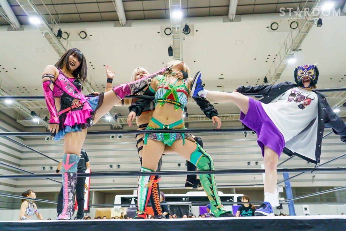 朱里&MIRAI&壮麗亜美組のゴッズアイと刀羅ナツコ&琉悪夏&吏南組の大江戸隊が6人タッグマッチで全面対決。ゴッズアイのベストメンバーにフューチャー・オブ・スターダム王者の吏南がどう向かっていくかが闘いのカギを握りそうだ。