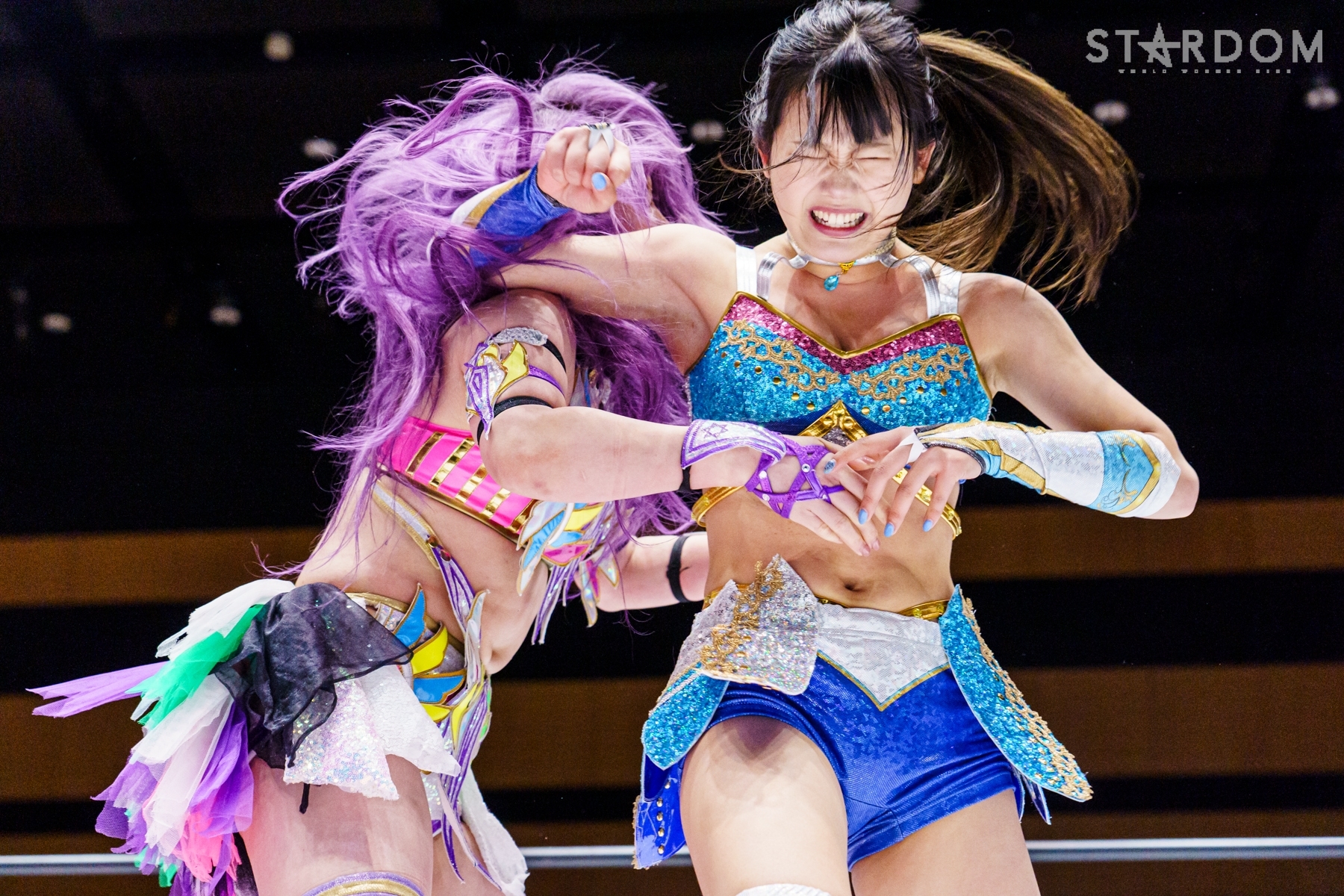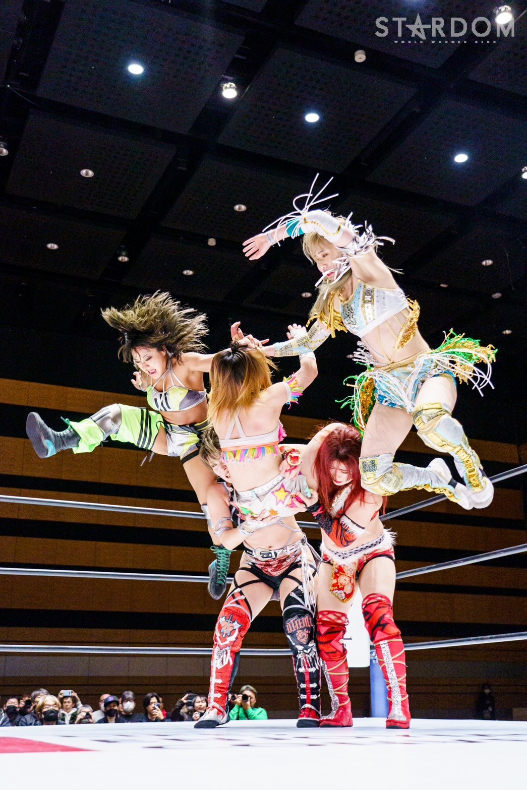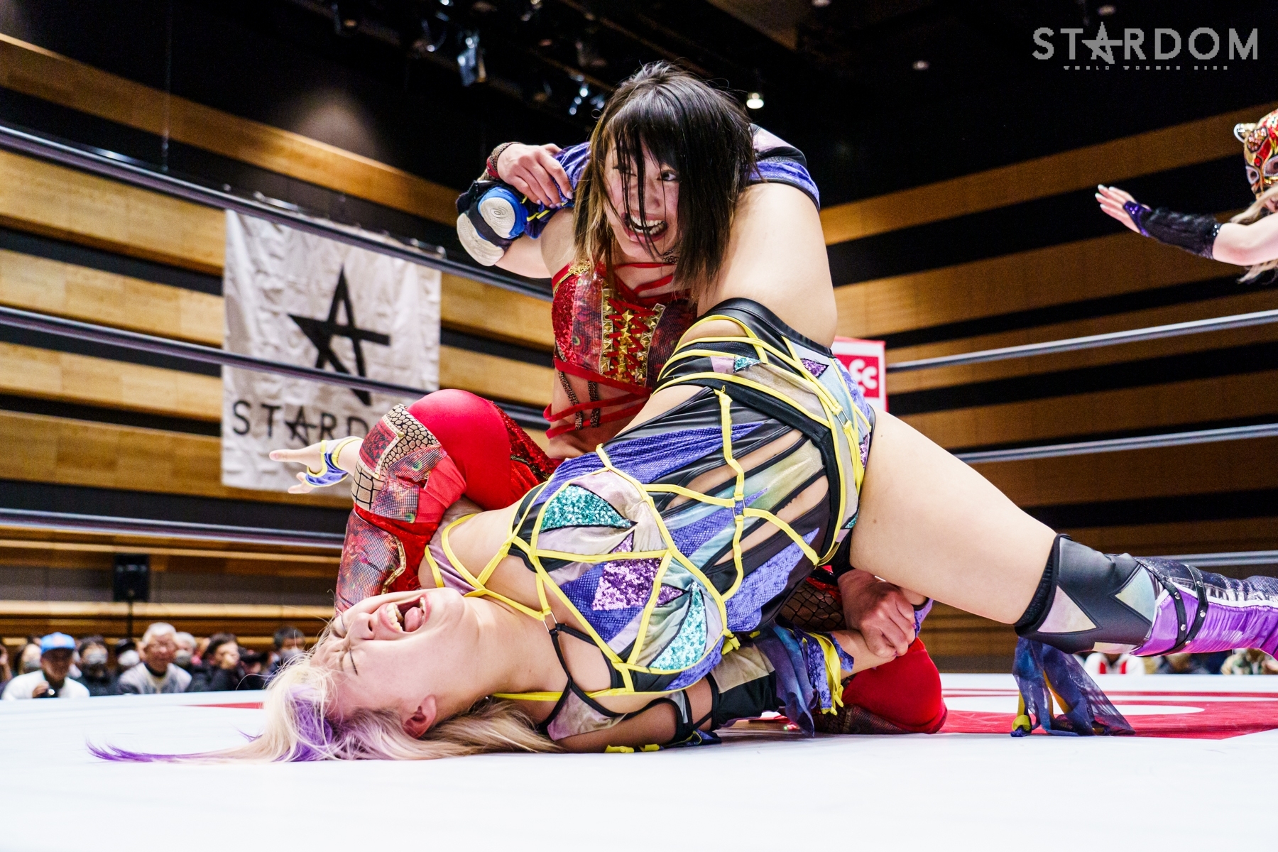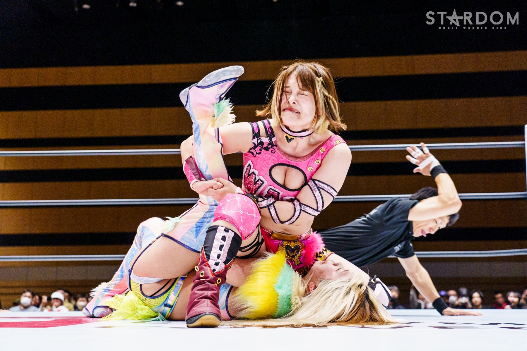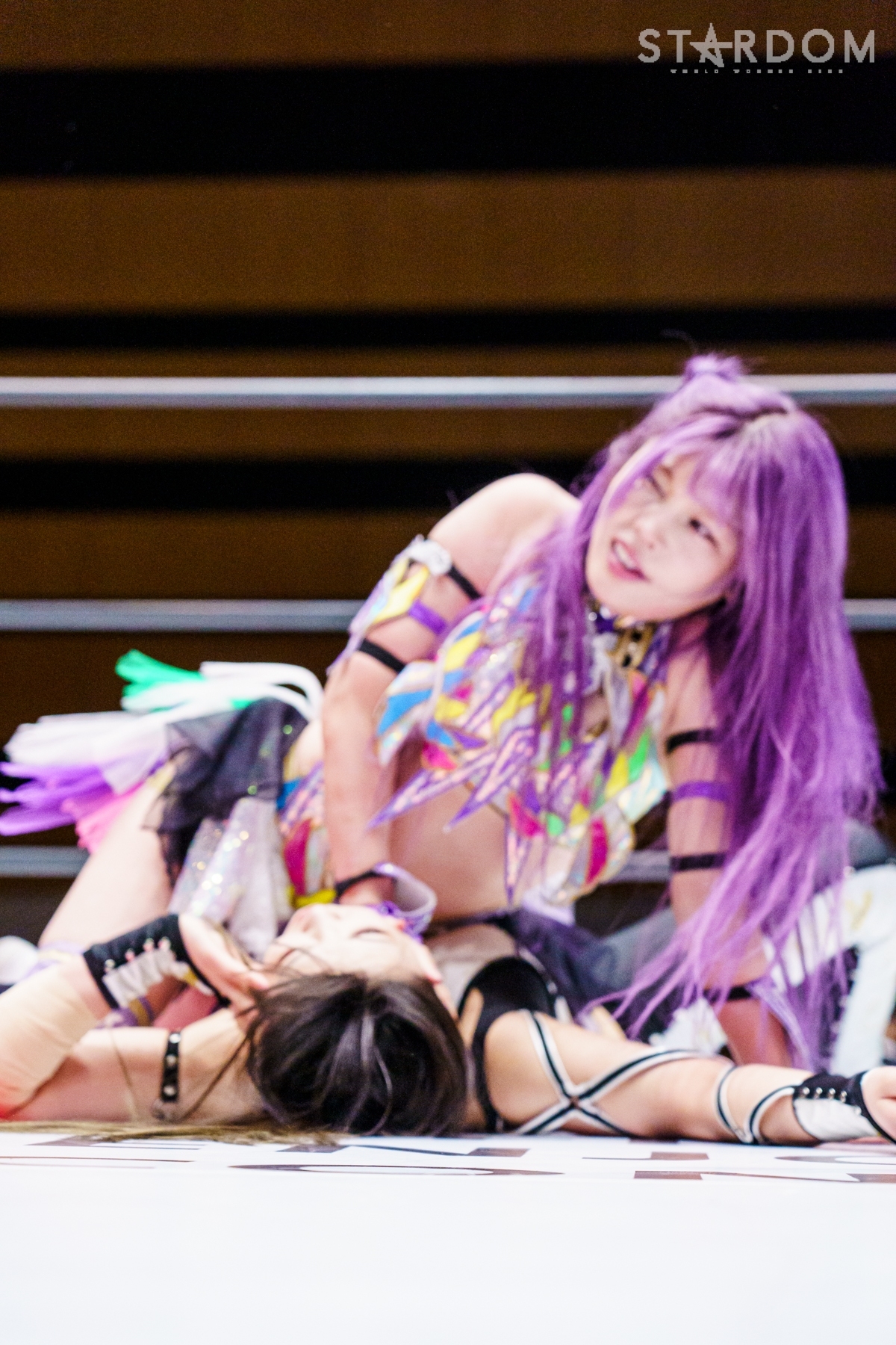 ゴッズアイの朱里&MIRAI&壮麗亜美&鹿島沙希&八神蘭奈組と大江戸隊の刀羅ナツコ&渡辺桃&スターライト・キッド&琉悪夏&吏南組が10人タッグマッチで全面対決。前日、MIRAIのスターダム退団が明らかになった。それはすなわちゴッズアイからの脱退も意味している。ユニット総力戦でMIRAIが何を見せるのか。