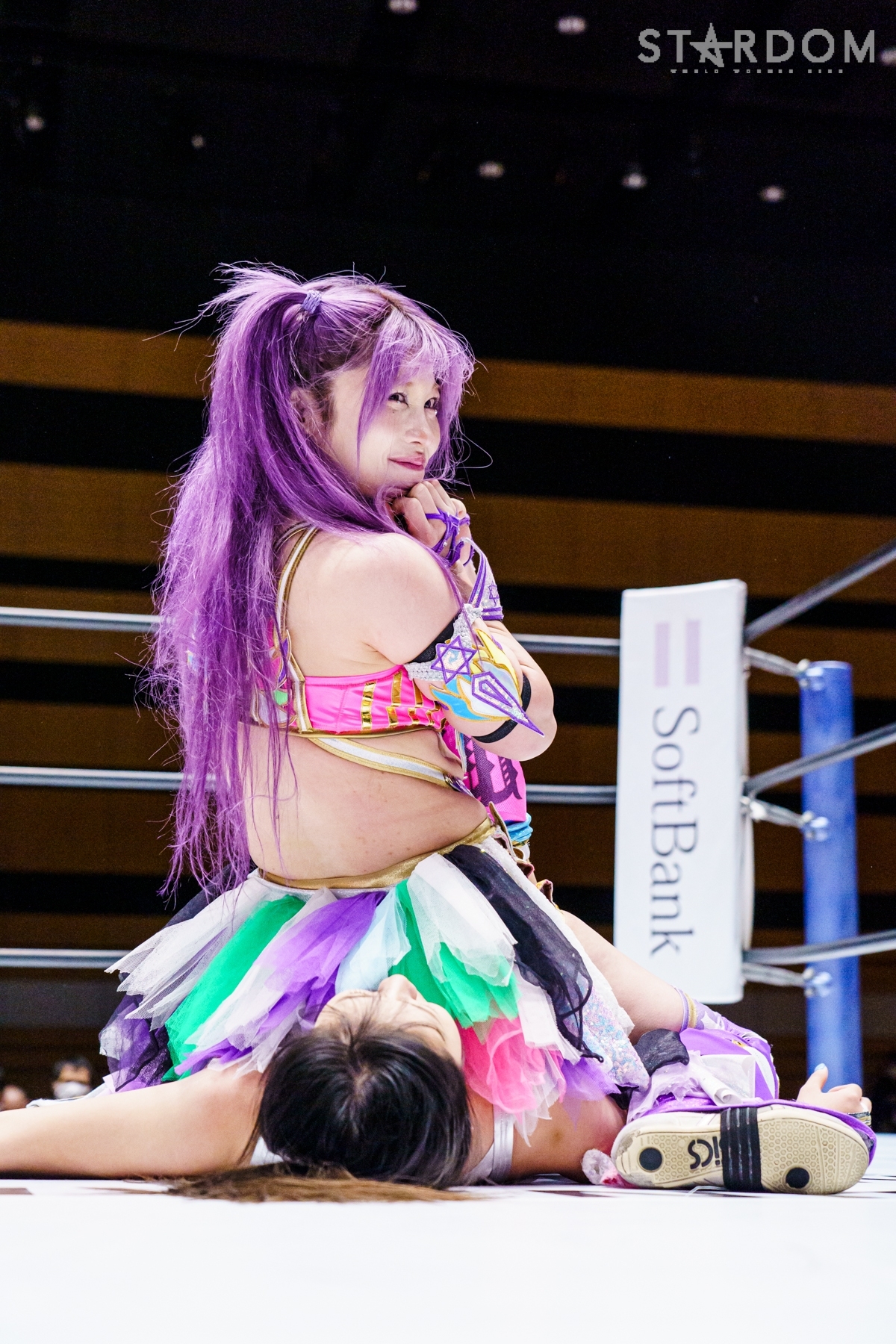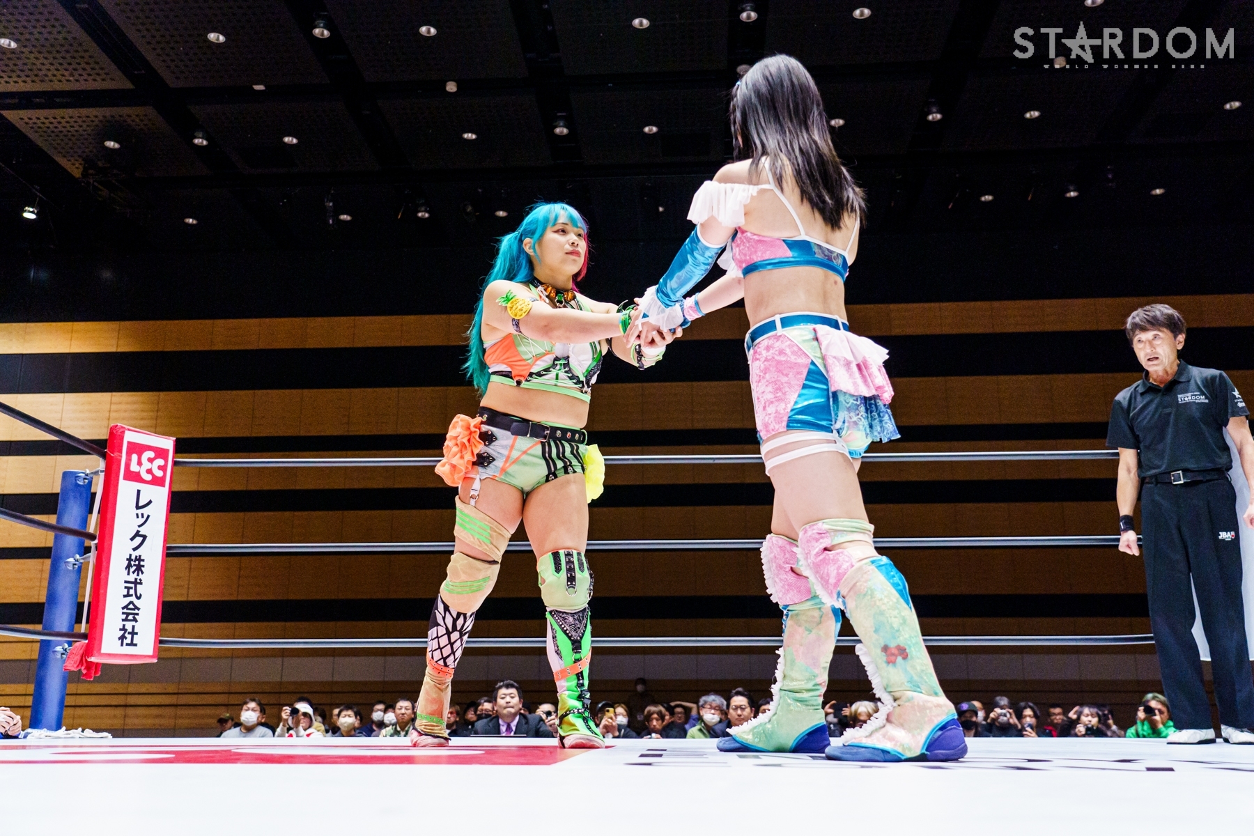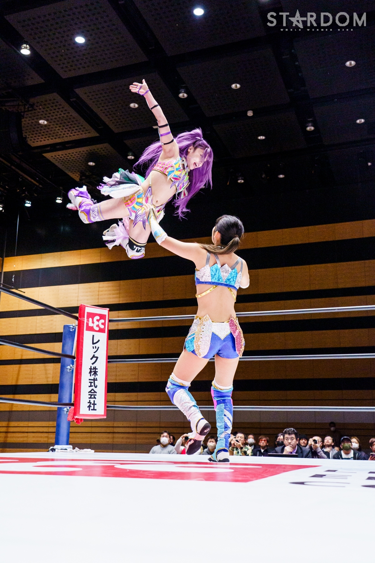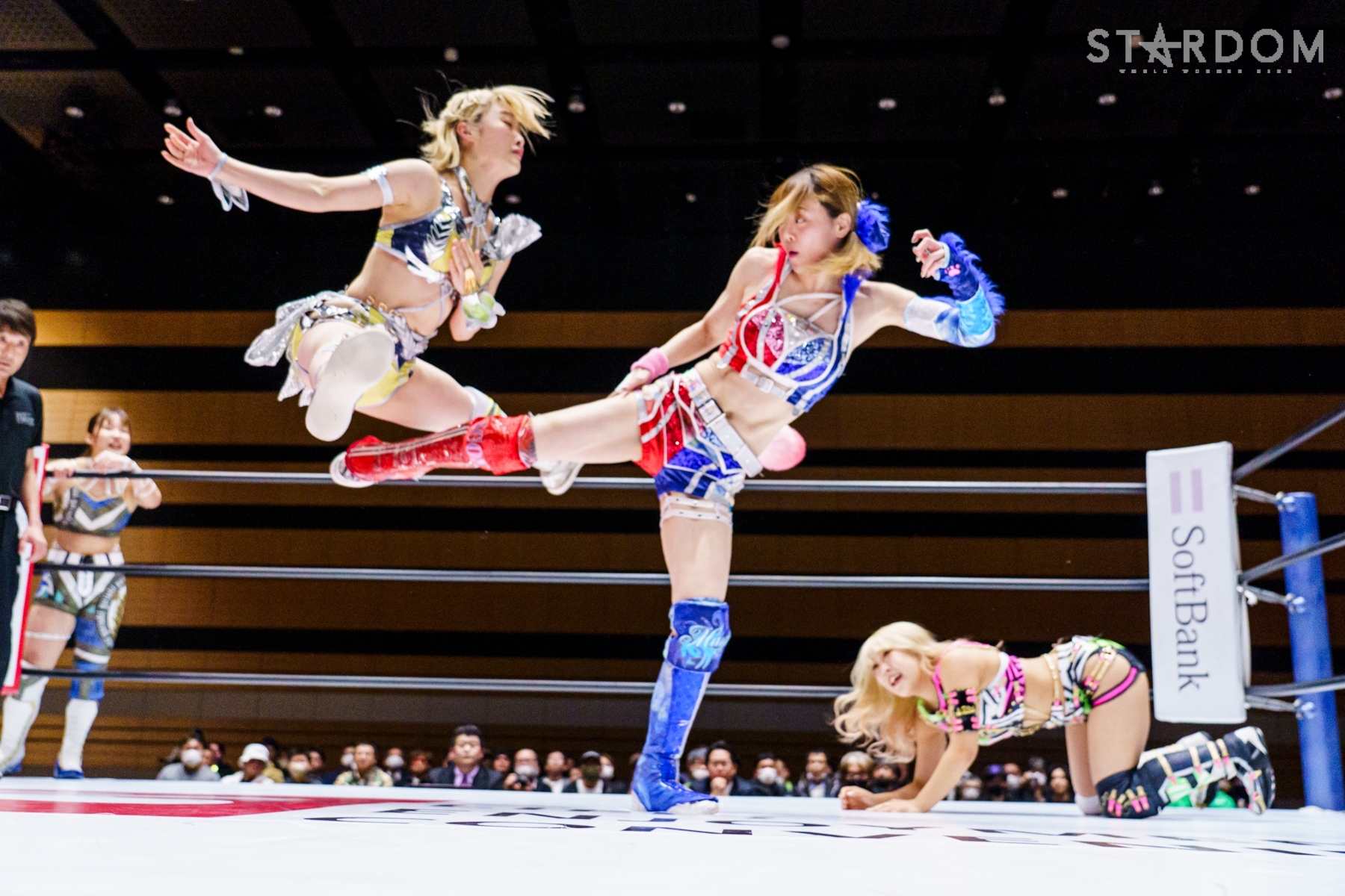 ゴッズアイの朱里&MIRAI&壮麗亜美&鹿島沙希&八神蘭奈組と大江戸隊の刀羅ナツコ&渡辺桃&スターライト・キッド&琉悪夏&吏南組が10人タッグマッチで全面対決。前日、MIRAIのスターダム退団が明らかになった。それはすなわちゴッズアイからの脱退も意味している。ユニット総力戦でMIRAIが何を見せるのか。