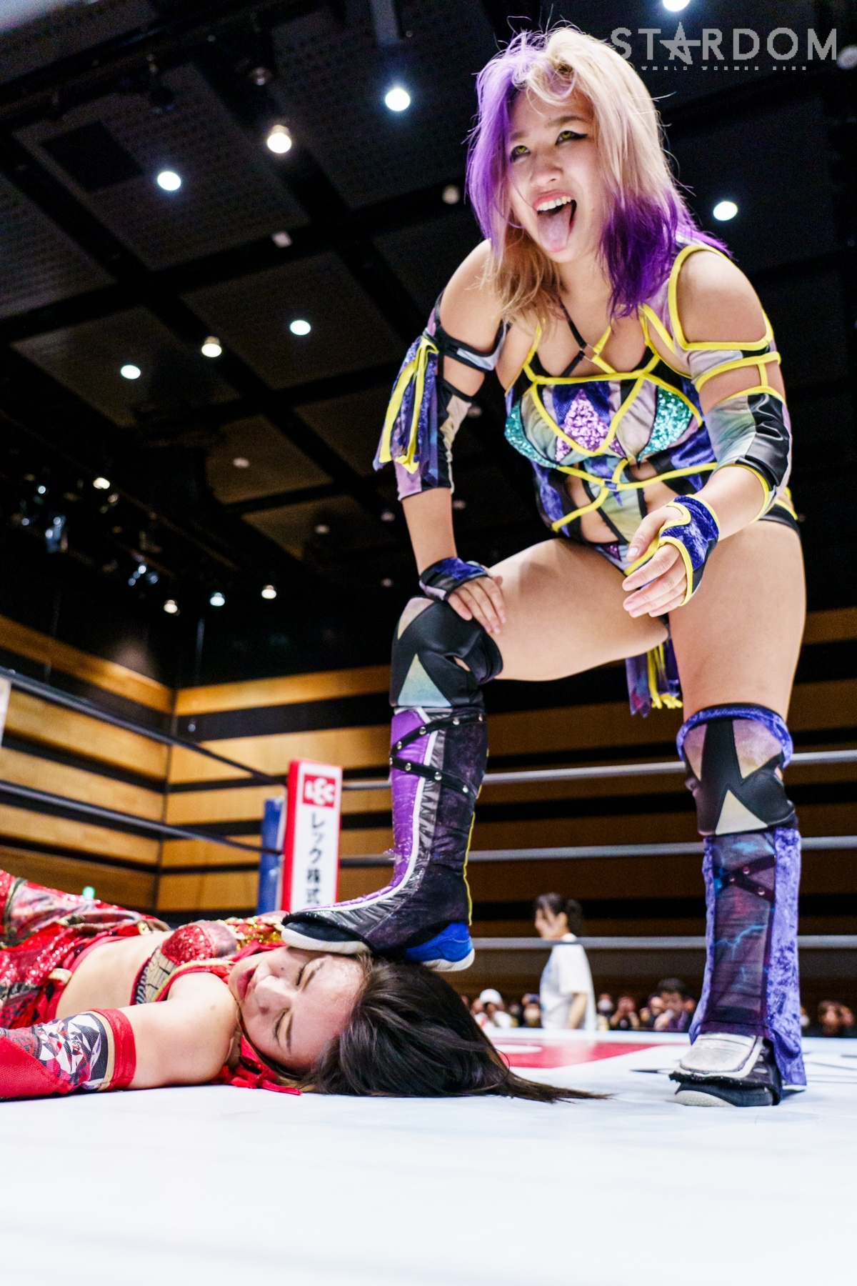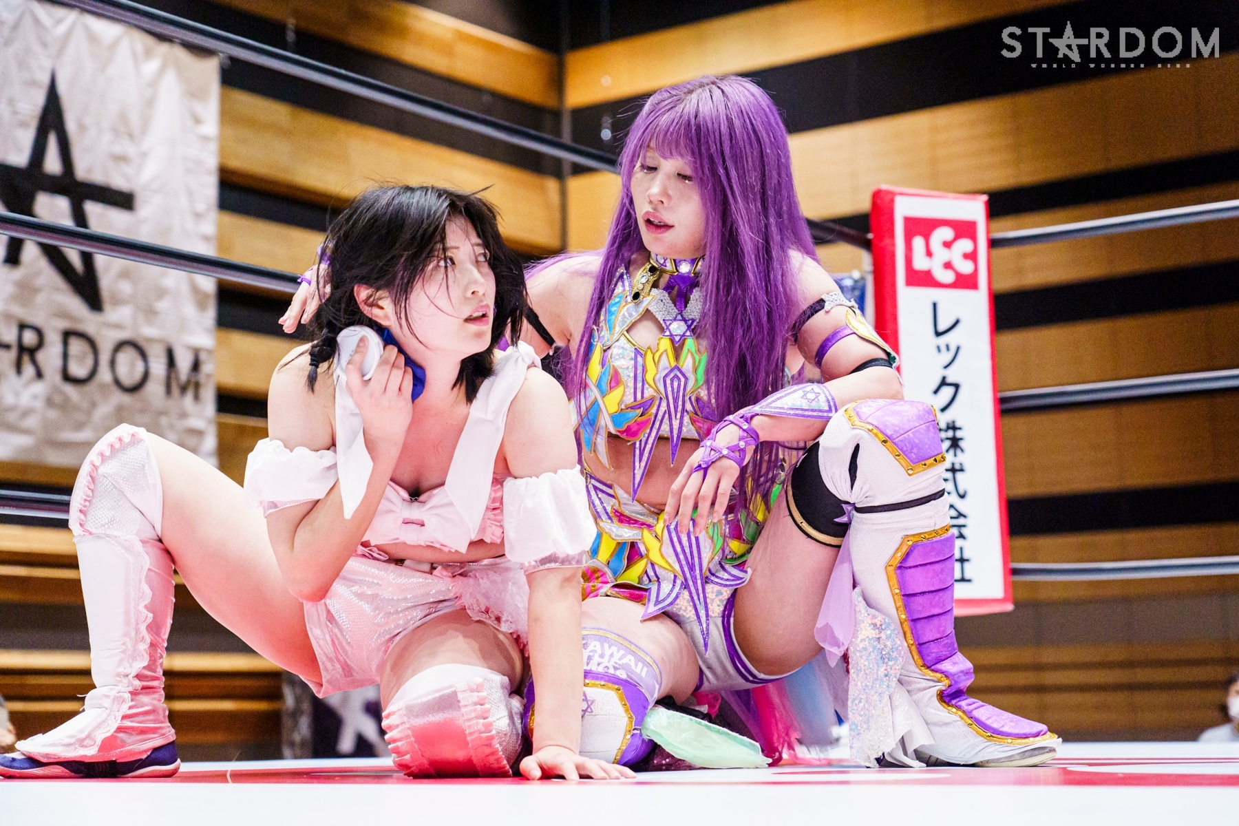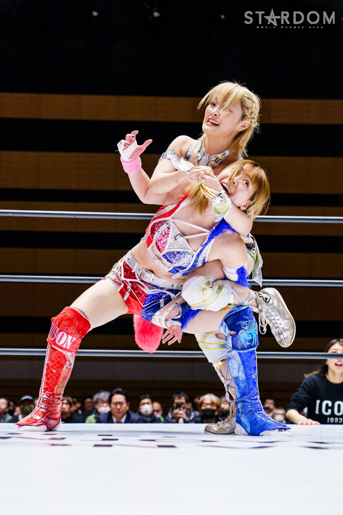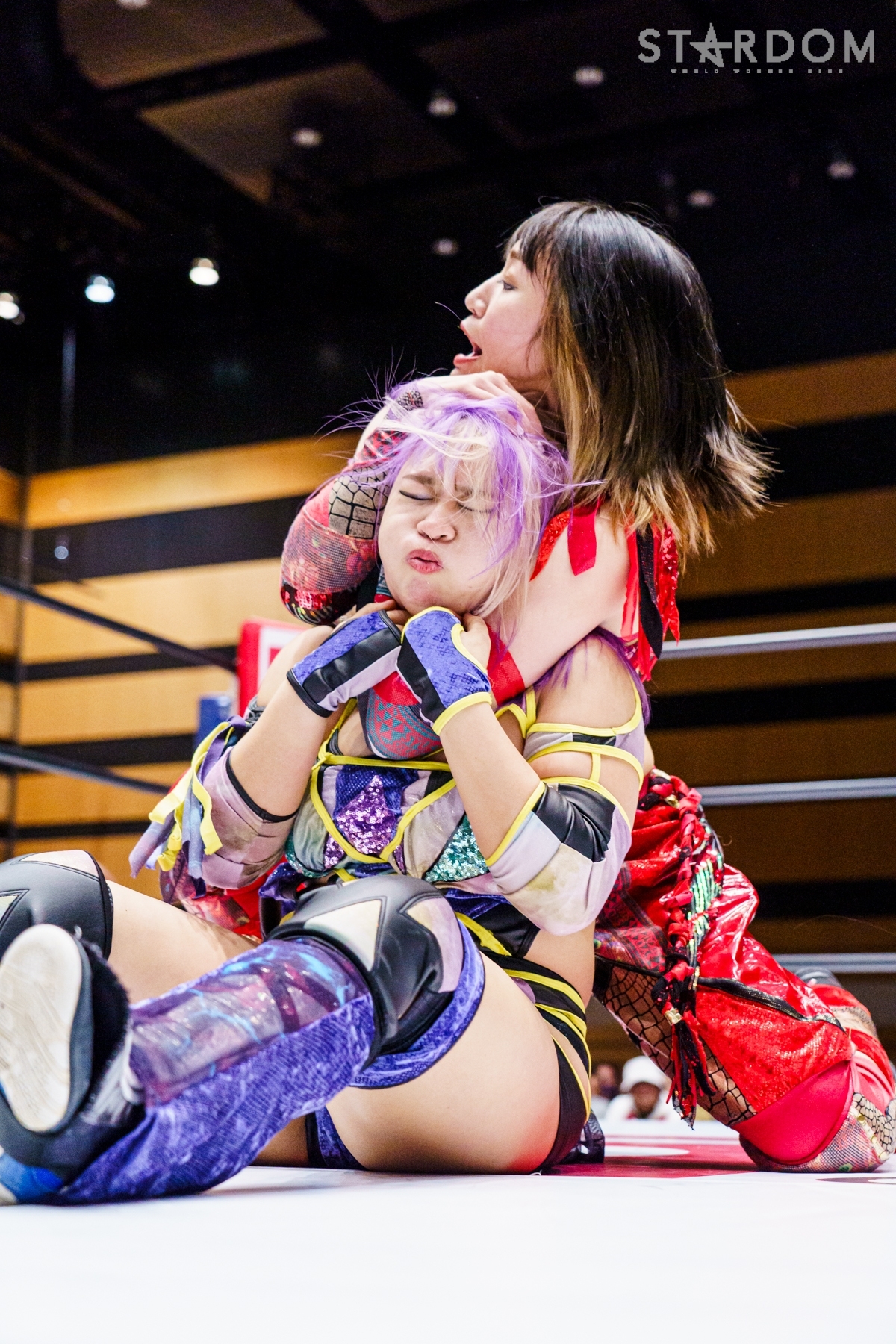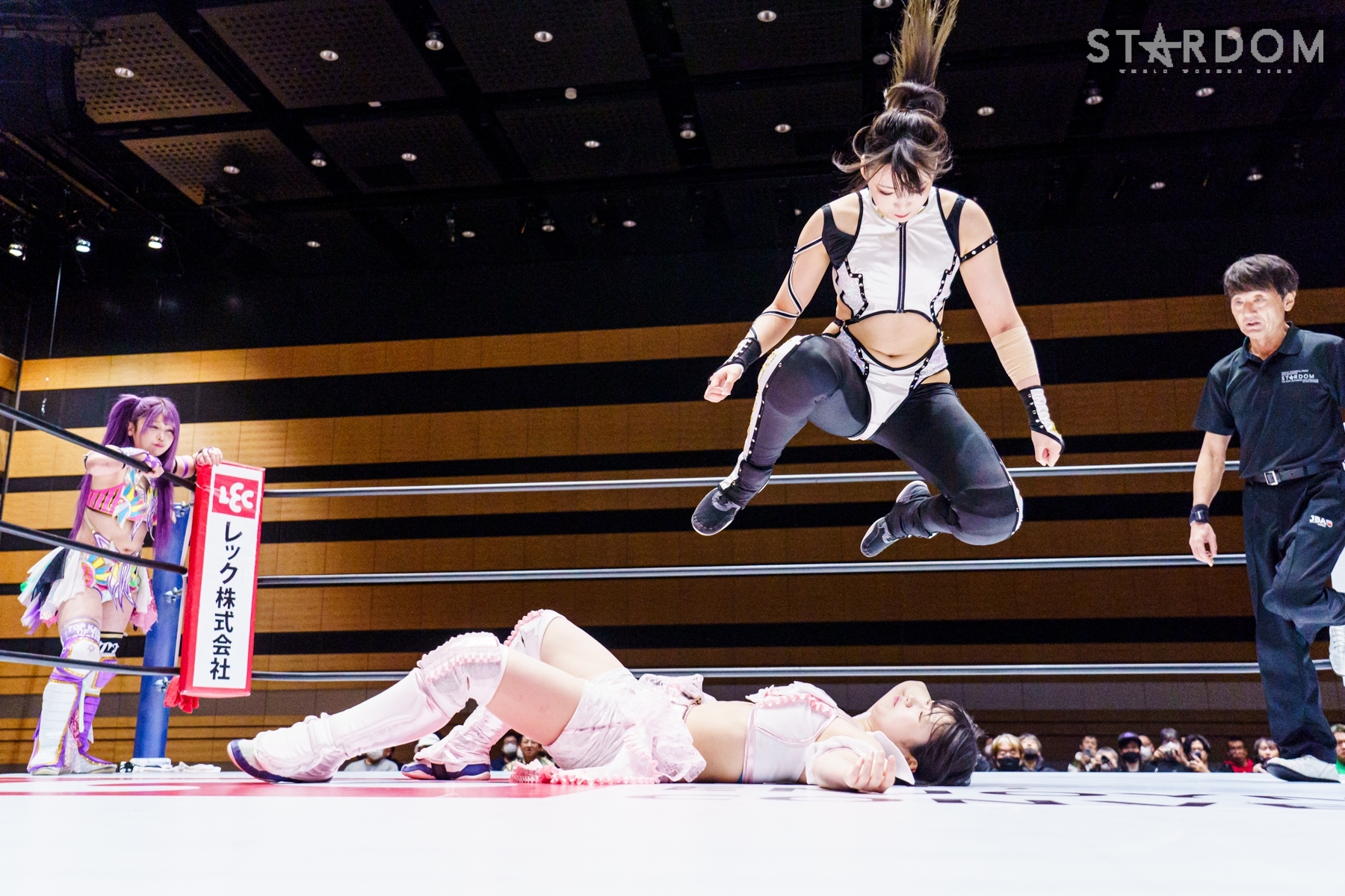 ゴッズアイの朱里&MIRAI&壮麗亜美&鹿島沙希&八神蘭奈組と大江戸隊の刀羅ナツコ&渡辺桃&スターライト・キッド&琉悪夏&吏南組が10人タッグマッチで全面対決。前日、MIRAIのスターダム退団が明らかになった。それはすなわちゴッズアイからの脱退も意味している。ユニット総力戦でMIRAIが何を見せるのか。