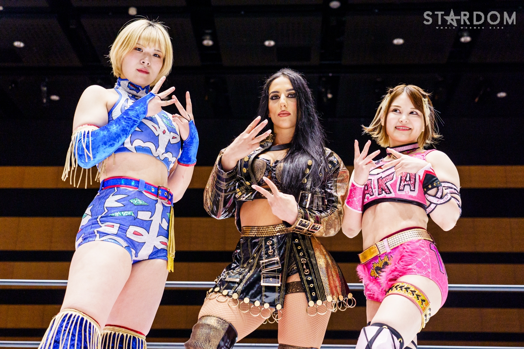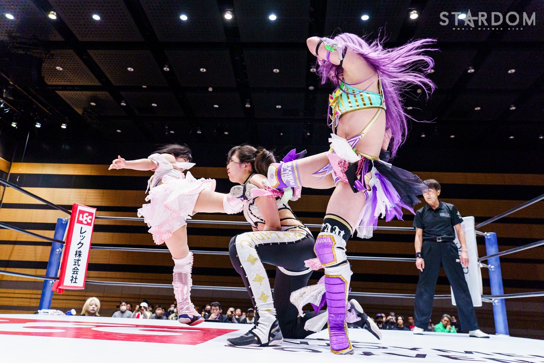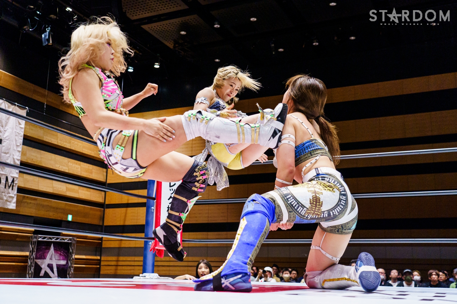 レディが昨日誕生日だった中野に「何歳?」と問うと、中野は「1083歳」と実年齢を正直に答える。先発はさくらとレディ。レディがヘッドロックで締め上げ、脱出を許さず。レディが締め続け「どうした?」と挑発。さくらがロープに振ろうとするがレディがグラウンドにもっていく。立ち上げるとコーナーに追い込みストンピング連打、逆水平チョップ、ニードロップ。さくらが返すと、天咲が串刺し側転エルボー、背中にドロップキック。さくらが返すと、天咲とエルボーを打ち合う。天咲の突進にさくらがミドルキック。替わった中野が天咲へダイビングボディーアタック。レディが乱入するが、中野は交互に串刺しエルボー、まとめてDDT。天咲が返すと中野にDDT。レディが中野に串刺しビッグブーツ、ショルダータックル。中野が返すと、レディのラリアットをかわしドロップキック、ニーアタック。さくらがタッチを申し出てレディにドロップキック、エルボー連打、ハイキック、ドロップキック。レディが返すと、さくらにカウンターでショルダータックル。ボディースラムをさくらが切り返す。さらに切り返したレディが三角絞め。さくらがエスケープし中野と合体、レディにキックの挟み撃ち。さくらがキックのコンビネーションでレディを倒すが、天咲がカット。さくらはレディを引き起こしエルボー連打。レディと天咲が合体でさくらの突進を止めてマットに叩きつけ、ドロップキックで競演。レディのチョークスラム狙いをさくらが丸め込み。丸め込みの連続にいくがレディがしのぐ。さくらの突進にレディがビッグブーツ、チョークスラム。3カウントが入り、レディがさくらをフォールした。