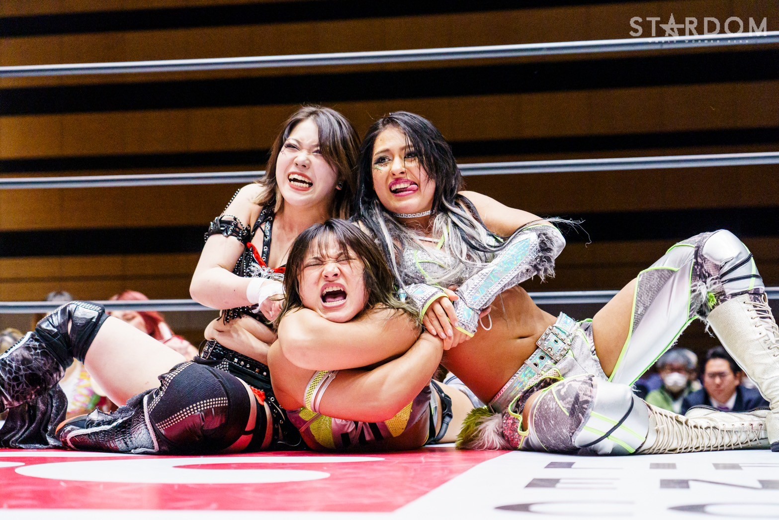 STARSの岩谷麻優&弓月組、コズミックエンジェルズの安納サオリ&なつぽい組、そして、白川未奈とAZMがユニットの枠を越えてタッグを結成。この3チームが一度に激突する3WAYマッチ。3月いっぱいでの退団が明らかになった弓月があこがれの岩谷とタッグを組む。3・20名古屋では第1試合で一騎打ちをおこない、次の試合ではタッグを組むものの状況が一変。タッグを通じ岩谷が何を弓月に伝え、弓月が岩谷に向けて何を表すのか。混戦必至の闘いで生まれるものとは?