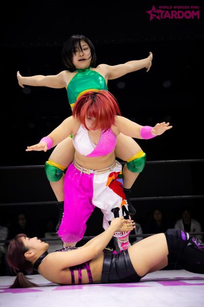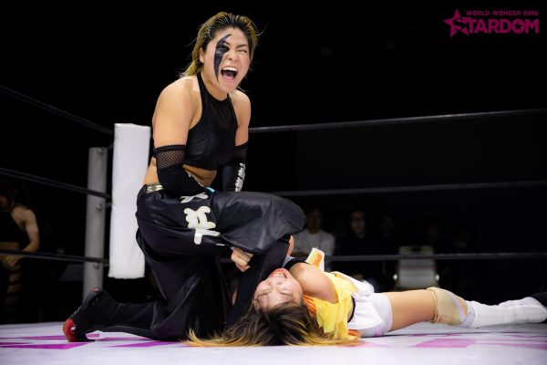 大阪昼夜大会のトリを務めるのは、ゴッデス・オブ・スターダム選手権試合。渡辺桃&林下詩美のクイーンズクエストに大江戸隊の夏すみれ&アンドラス宮城が挑戦する。夏&宮城組のポテンシャルが未知数なだけに、王者としては細心の注意が求められるだろう。桃はかつて夏から丸め込みで3カウントを奪われているだけに油断はできない。しかも3・24後楽園では白いベルトをかけてアンドラスの挑戦を受ける。ワンダー・オブ・スターダム王座の前哨戦でもあり、負けられない闘いが桃にはつづくことになりそうだ。これをアシストするのが詩美だが、やはり夏&アンドラス組のチーム力は不気味。桃&詩美組のV4か、それとも大江戸隊がタッグのベルトを手にし、夏&アンドラスがスターダム初戴冠、アンドラスが白いベルト戦への確かな足がかりをつかむのか。