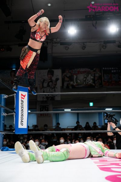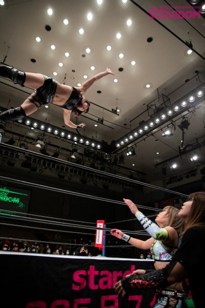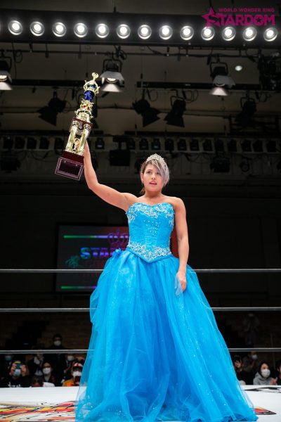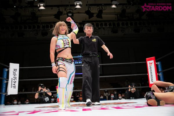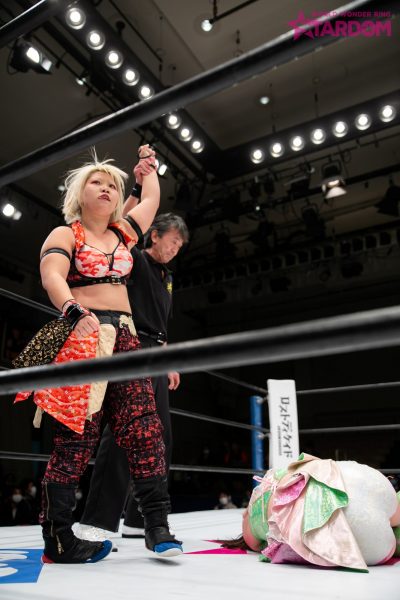 「さっきリング上でも言ったんだけど、私はスターダムに来て半年で、最初はドン底からのスタートだったけど、やってるうちにコイツとだったらなんかできるんじゃないかな、すごいものが生まれるんじゃないかなと思った相手、星輝ありさがいないんですよね。だから、白いベルトに私は挑戦したいので。星輝と初めて(新日本1・4)東京ドームで当たったときに、あのときの私には荷が重い相手だったけど、このトーナメントをきっかけに、優勝すればアイツに胸張って挑戦できるかなと思ったけど、いないんでね。なんとも言えないんですけど。ただ言いたいのは、私は待ってる、星輝ありさ。ダメだったらしょうがない。私が白いベルトはいただこうかなと思ってます。とにかく4・29大田区総合体育館で星輝ありさと私は一騎打ちがしたい。できないんだったら、私が白いベルトをいただきます。アリベデルチ。またな」