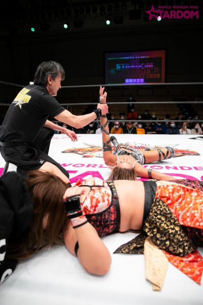 場外でナツコが先手を取りリングではチェーンを使用。ジュリアがコーナーからミサイルキック。ナツコが返すと、鹿島がチェーンをリングに入れる。ジュリアがそれを取って構えるが、手放してしまう。ナツコも腕に巻く振りをして手放す。エルボーの打ち合いからナツコが連打でコーナーに追い込む。ナツコは止めに入る村山レフェリーをはねのける。ジュリアも村山レフェリーを突き飛ばす。コーナー際での乱闘でジュリアは再度レフェリーを投げてしまう。ジュリアがブレーンバスターを狙うがナツコが回避。ナツコが突進するがジュリアがビッグブーツ、ナツコはスピア。両者ダウン。ヒザを着いた状態でエルボーを打ち合い、立ち上がってもエルボー合戦が続く。ジュリアがニーからDDT。ナツコが返すと、ジュリアはSTFへ。ジュリアの突進にナツコはチェーンで殴打。昇天狙いはジュリアが切り返してサブミッション。ナツコはその状態でバックフリップ気味に叩きつける。ナツコがコーナーからダイビングボディープレス。ジュリアがかわしてグロリアスドライバー狙い。ナツコがこらえて昇天で叩きつける。ジュリアが返すと、ナツコはフロッグスプラッシュ。引き起こしてボディースラムで叩きつけるとフィニッシュを宣言してダイビングギロチン投下。決まったと思われたがジュリアの肩が上がる。10分経過。場内はジュリアコールに。ナツコが顔面を蹴りとばすとジュリアが張り手連打からヘッドバットも連打。ジュリアがみちのくドライバーからグロリアスドライバー。しかしナツコが返して2カウント止まり。ジュリアが押さえ込もうとするとナツコが丸め込む。返したジュリアがビッグブーツからステルスバイパー。反転して締め上げるとついにギブアップ。ジュリアが2020年のシンデレラ・トーナメントを制してみせた。