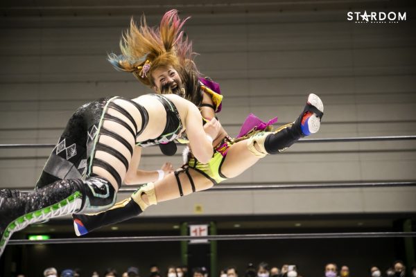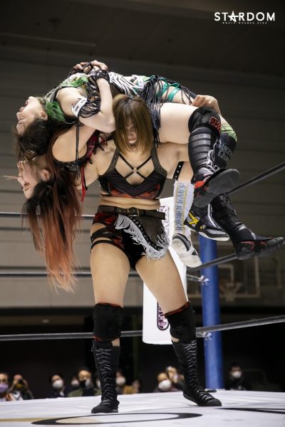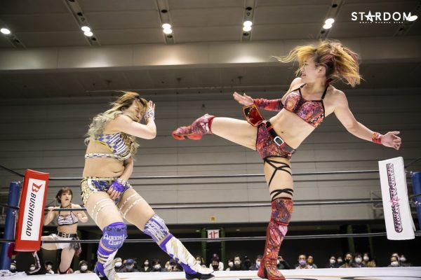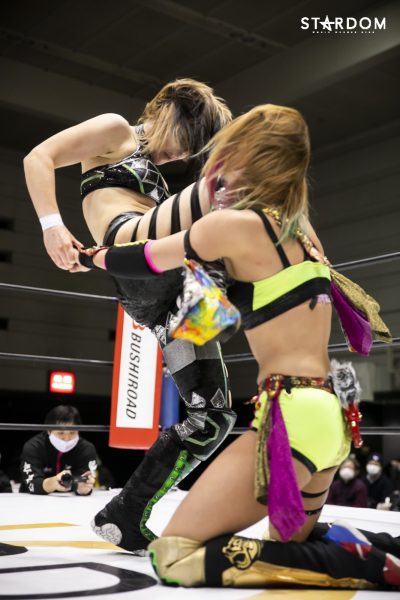 クイーンズクエストの林下詩美&上谷沙弥は元ゴッデス・オブ・スターダム王者チーム。対する舞華&ひめかは3・3武道館で大江戸隊の挑戦を受ける現ゴッデス王者チームだ。現王者としては刀羅ナツコ&鹿島沙希組との対戦を前に、前王者には是非とも勝って勢いをつけたいところ。詩美と上谷は3・3武道館で赤いベルトを争うが、決戦が近づくなか、闘う相手とのタッグは巧く機能するのか。さまざまな思惑が交差するタッグ戦だ。