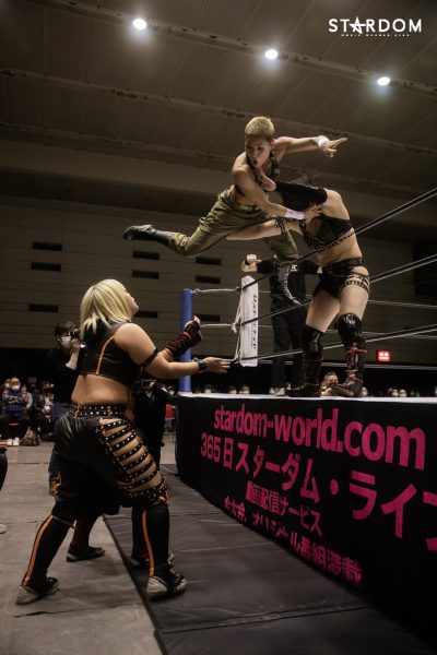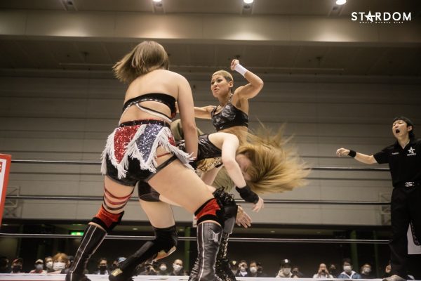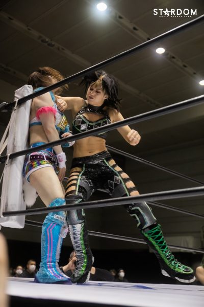 STARSの岩谷麻優&飯田沙耶組と大江戸隊の小波&ビー・プレストリー組がタッグで対戦。2日前の後楽園大会でフューチャー・オブ・スターダム王座を守った飯田と前タッグ王者チームの激突でもあり、もちろん、4・4横浜での全面戦争イリミネーションマッチを見据えての前哨戦でもある。プレストリーは横浜で林下詩美の赤いベルトに挑戦するが、イリミネーションマッチにはセコンドとして加勢してくることも考えられる。このところ劣勢を強いられている岩谷組としては前哨戦で勝って勢いをつけたいところ。最後に敗れた選手が強制的に敵対ユニットに加入させられる条件マッチを前に、白星を得るのはどちらのユニットか?