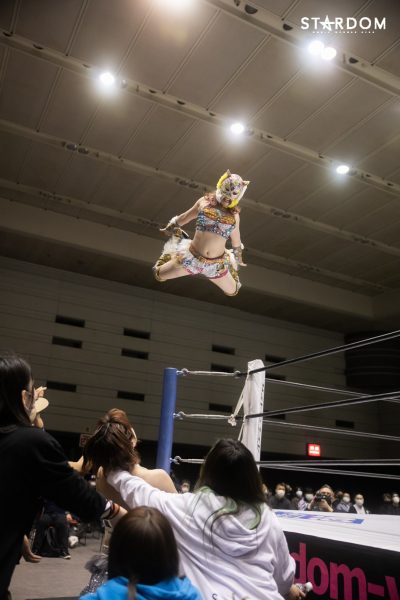 キッドが握手を求めるとなつぽいもゆっくりと応じる。ゴングが鳴ると両者突進、ハイスピードなロープワークが展開され、両者睨み合い。探り合いからキッドがヘアーホイップ、なつぽいがかわしてドロップキック。なつぽいがエルボー連打、ドロップキック。キッドが返すとなつぽいは鎌固め。キッドがクロスボディーアタックからその場跳びムーンサルトプレス。なつぽいが返すと、キッドがボディースラムを狙う。なつぽいが切り返してコーナーへ。キッドが突っ込むとなつぽいがかわしてヒザへのドロップキック、低空ドロップキック。なつぽいが場外弾を狙ってコーナーに上がるがキッドが上がってマットにたたき落とす。キッドが低空ドロップキックのお返しからロープ越しにDDT、場外プランチャ。15カウントでキッドがなつぽいをリグに戻してフィッシャーマン。なつぽいが返すとキッドは旋回式フロッグスプラッシュ。なつぽいがかわしてバックキック、フィッシャーマンのかわし合いからキッドがタイガー狙い。なつぽいがこらえるとカウンターでドロップキック、トラースキック。キッドが後方からニーアタック。両者ダウン。9カウントで立ち上がり、エルボーの打ち合い。ラリアットのかわし合いからキッドがフライングクロスアタック、DDT、スイングネックブリーカー。フィニッシュを宣言してコーナーに上がるとムーンサルトプレスを決める。しかし、なつぽいが肩を上げる。キッドはなつぽいを引き起こし、タイガーの構え。なつぽいが丸め込むとキッドが反転。丸め込みの応酬からなつぽいが連続マヒストラル。返されたなつぽいが投げっぱなしジャーマン、スイングネックブリーカー。踏みつけてからコーナーに上がろうとするとキッドが足を引っ張る。なつぽいが顔面を蹴り上げコーナーへ。トップから側転してプレスするフェアリアルギフト。しかしキッドが返してみせる。なつぽいがトラースキックからジャーマン。これもキッドがクリアーに成功。なつぽいが突進しバックラッシュからジャーマン、フェアリーストレイン(クロスアーム式ジャーマン)。3カウントが入り、なつぽいが初防衛となった。