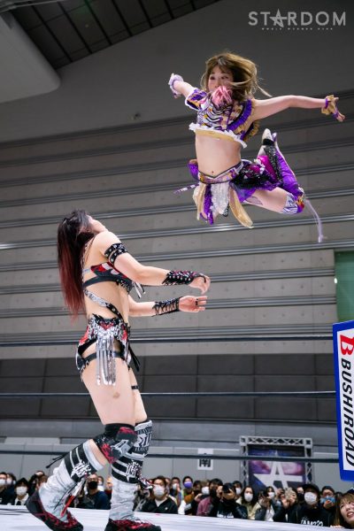 メインは朱里&舞華&ひめか&なつぽい組のドンナ・デル・モンドと岩谷麻優&葉月&コグマ&羽南組のSTARSが8人タッグマッチで全面対決。葉月はSTARSに加入以来、岩谷とのチームでは負け知らずで、この編成は初めてとなる。この試合でも勝利し連勝キープを狙う。とはいえ、相手はアーティスト王者の舞ひめぽいに赤いベルト次期挑戦者&SWA世界王者の朱里が加わる最強の布陣だ。となれば、大混戦は必至。フューチャー・オブ・スターダム次期挑戦者の羽南の頑張りにも期待がかかる。