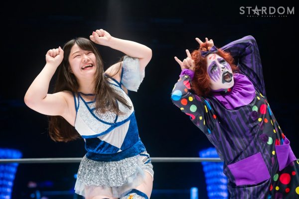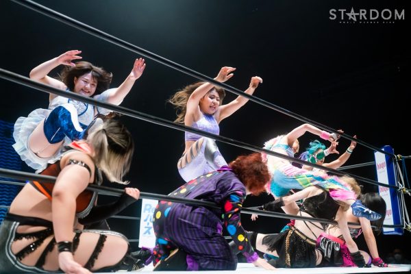 STARSの岩谷麻優&葉月&コグマ&飯田沙耶組と大江戸隊の鹿島沙希&琉悪夏&吏南&フキゲンです★組が8人タッグマッチで対戦。SWA世界王座を争った岩谷と“宇宙人”フキゲンが再び遭遇。STARSはゴッデス・オブ・スターダム王者の葉月&コグマを擁しており、タッグ戦線も意識しての闘いになりそうだ。