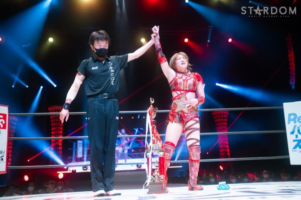 朱里「今日、来てくれたみなさん、そして、ペイパービューご覧のみなさん、本当にありがとうございました! いろんなことがあるこの世の中、こうやってスターダムを見て、あしたの元気とか何かパワーになってもらえたらなと思ってます。私も皆さんからものすごくパワーをもらってます! これからも、一緒に、スターダムを盛り上げてください! それでは皆さん、またお会いしましょう。みんなサラマポ! ありがとうございました!」
