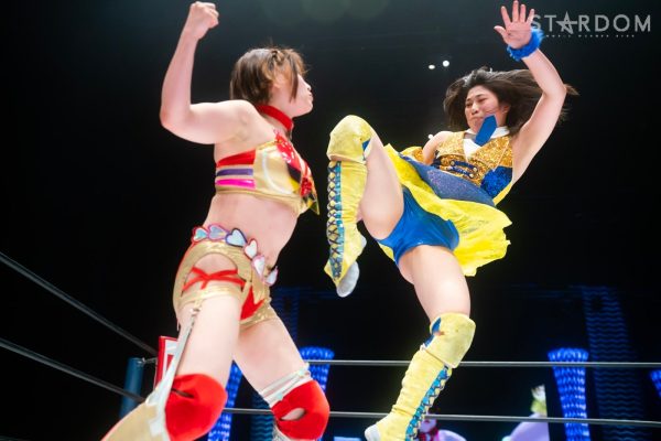 前日の7・8品川「NEW BLOOD3」でジュリアの胸を借り五番勝負をスタートさせた天咲光由が、3・11「NEW BLOOD1」におけるデビュー戦で対戦した林下詩美とタッグを結成、ゴッズアイのMIRAI&壮麗亜美組と対戦する。MIRAI&壮麗はアーティスト・オブ・スターダム王座、ゴッデス・オブ・スターダム王座取りに失敗も、ゴッデスに関しては再戦も決定、ユニットでの勢いはストップしておらず、個人でも5★STAR GPに向けて意識が高まっている。それだけに、天咲にとっては大きな壁になるだろう。とくに天咲と壮麗は5★STAR GP予選リーグ開幕戦で対戦、壮麗が勝利し4連勝へのきっかけとなった。天咲としては五番勝負残り4戦のためにも、詩美のアシストを得て爪跡を残しておきたい。